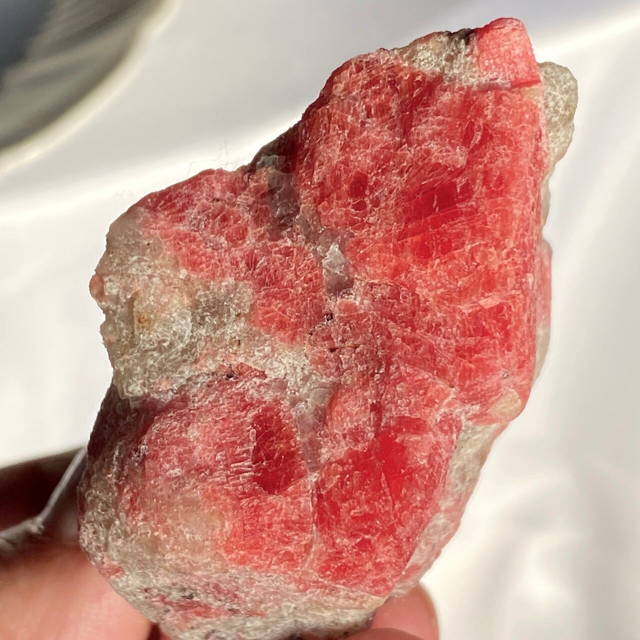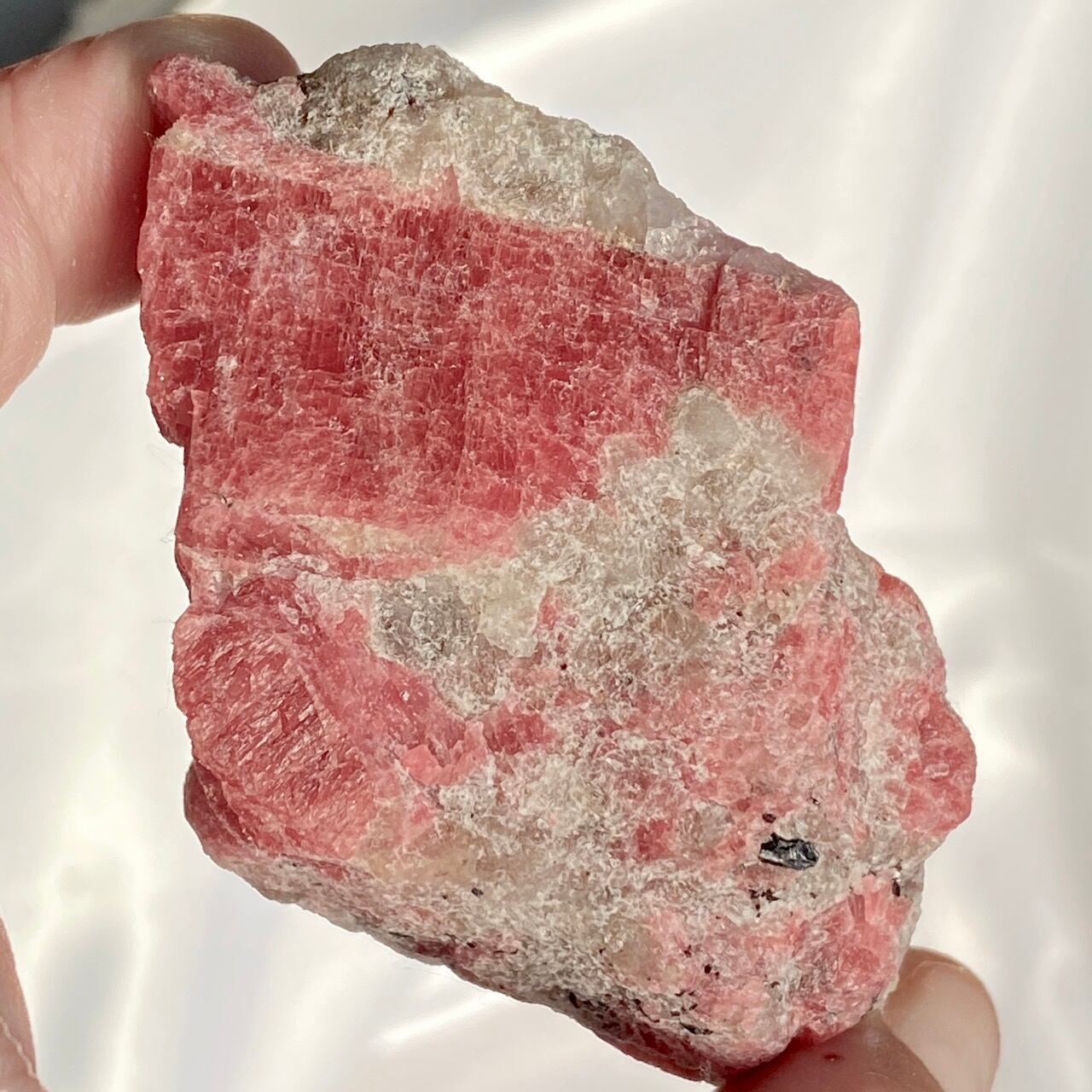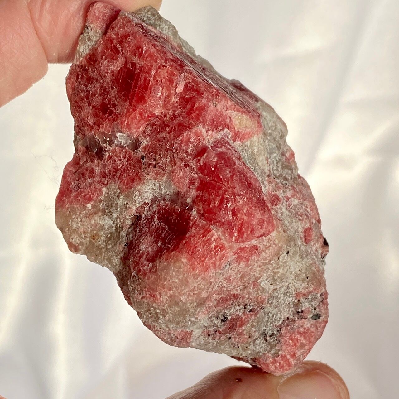 アメリカ産マトリックス付きロードナイトの原石になります。サプライヤーの新在庫の中でも、良質の証である色鮮やかで紅色が沢山入った子達を選びました。