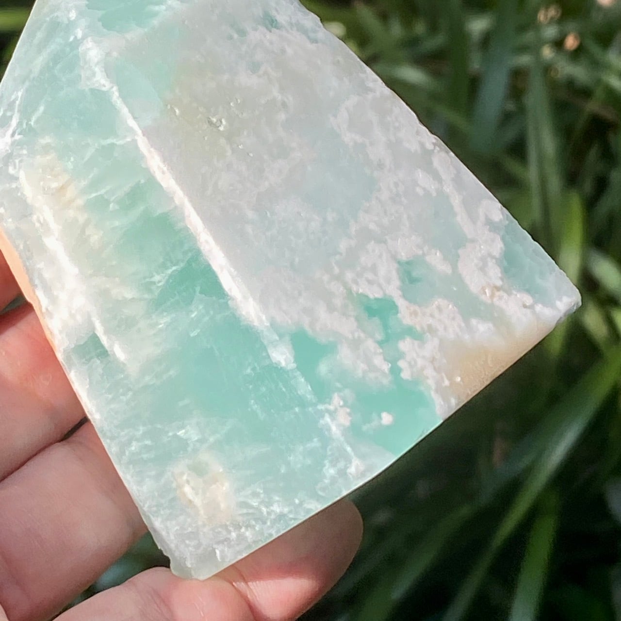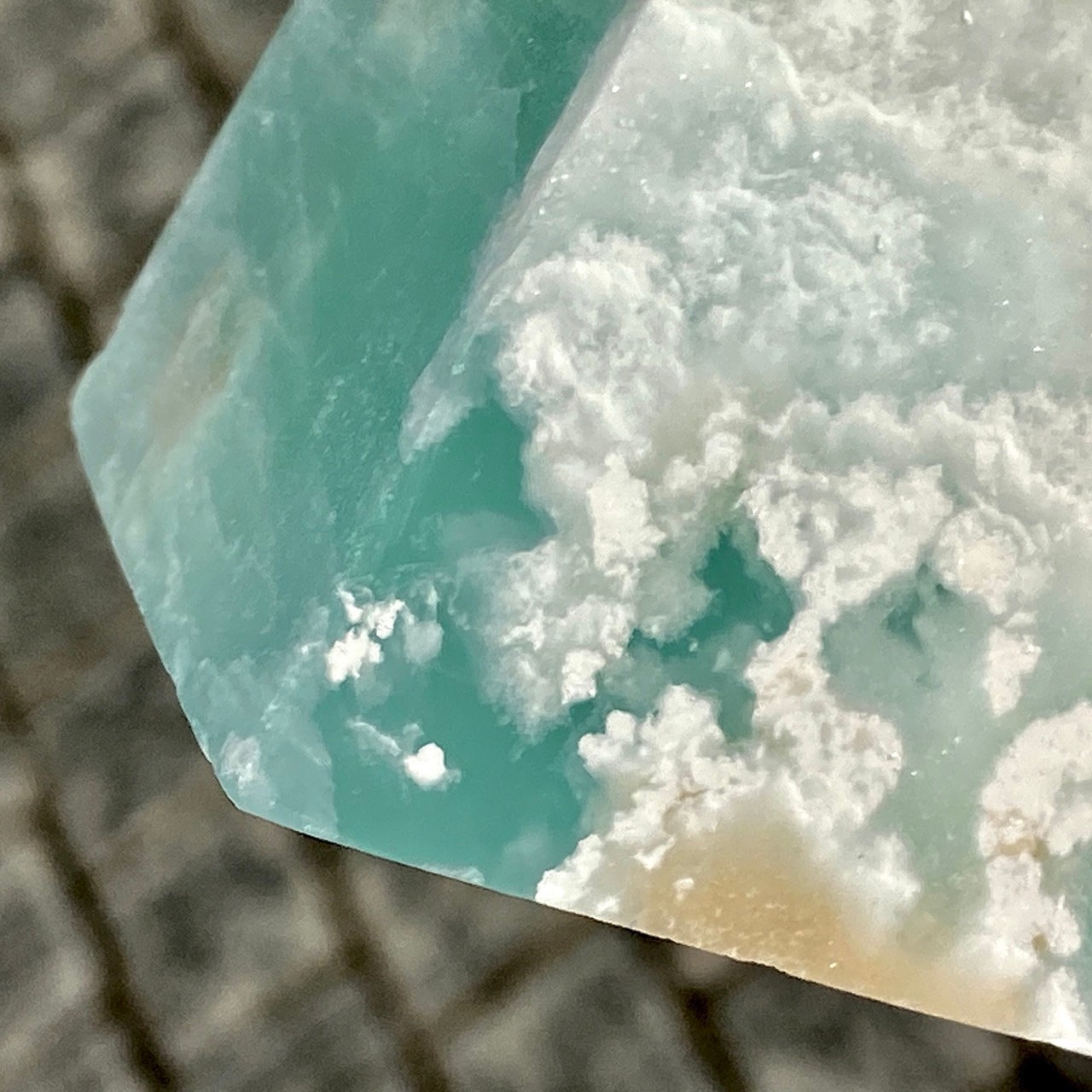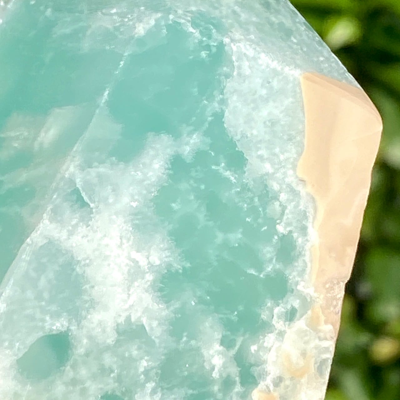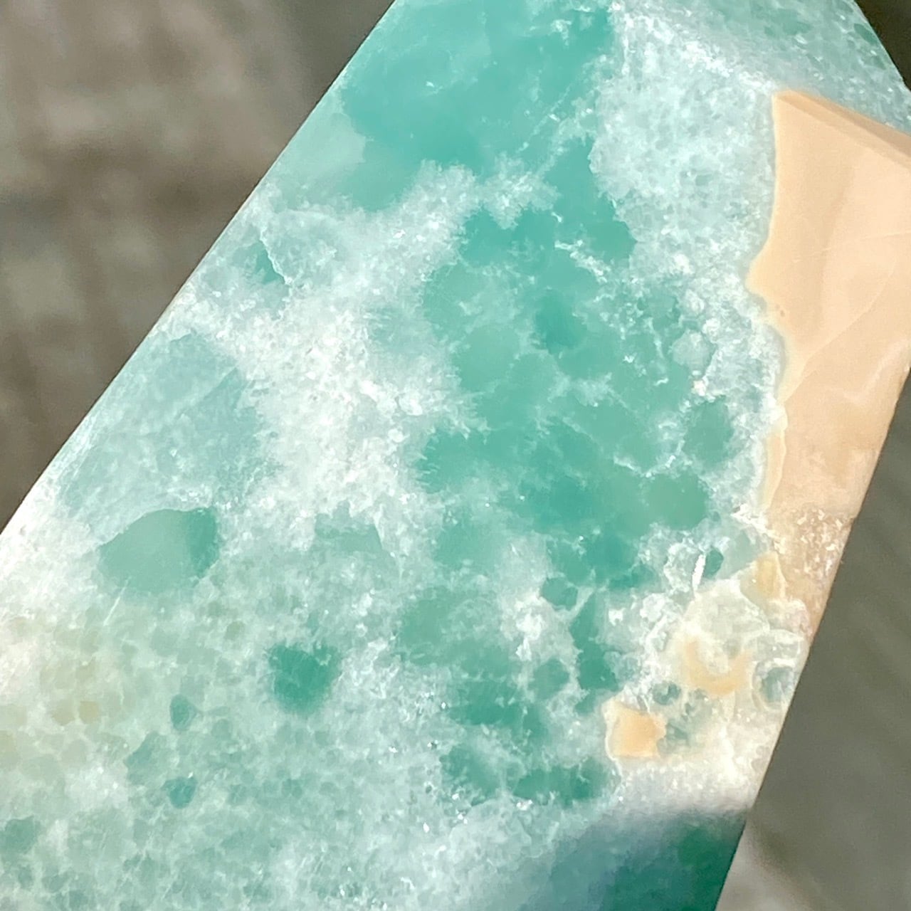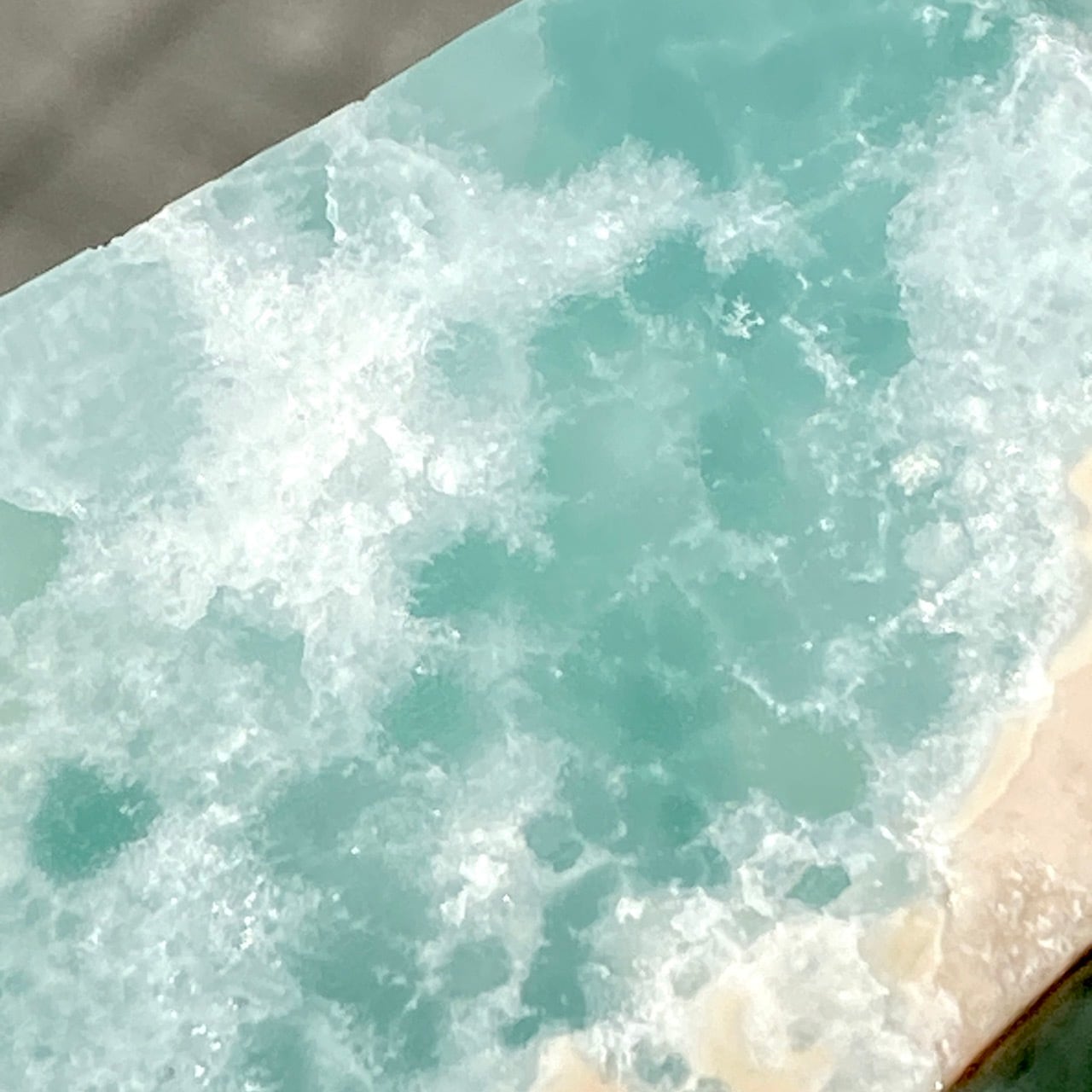 カリビアン(ブルー)カルサイトは、その名の通り、カリブ海の海岸を思わせる様な石です。2019年にパキスタンで発見されこの石は、楽園カリブ海の優しいブルーやグリーン、そして砂浜のようなベージュ系の色味から成り、この癒し系のカラーパレットとその絵画の様な美しさが大変魅力的です。