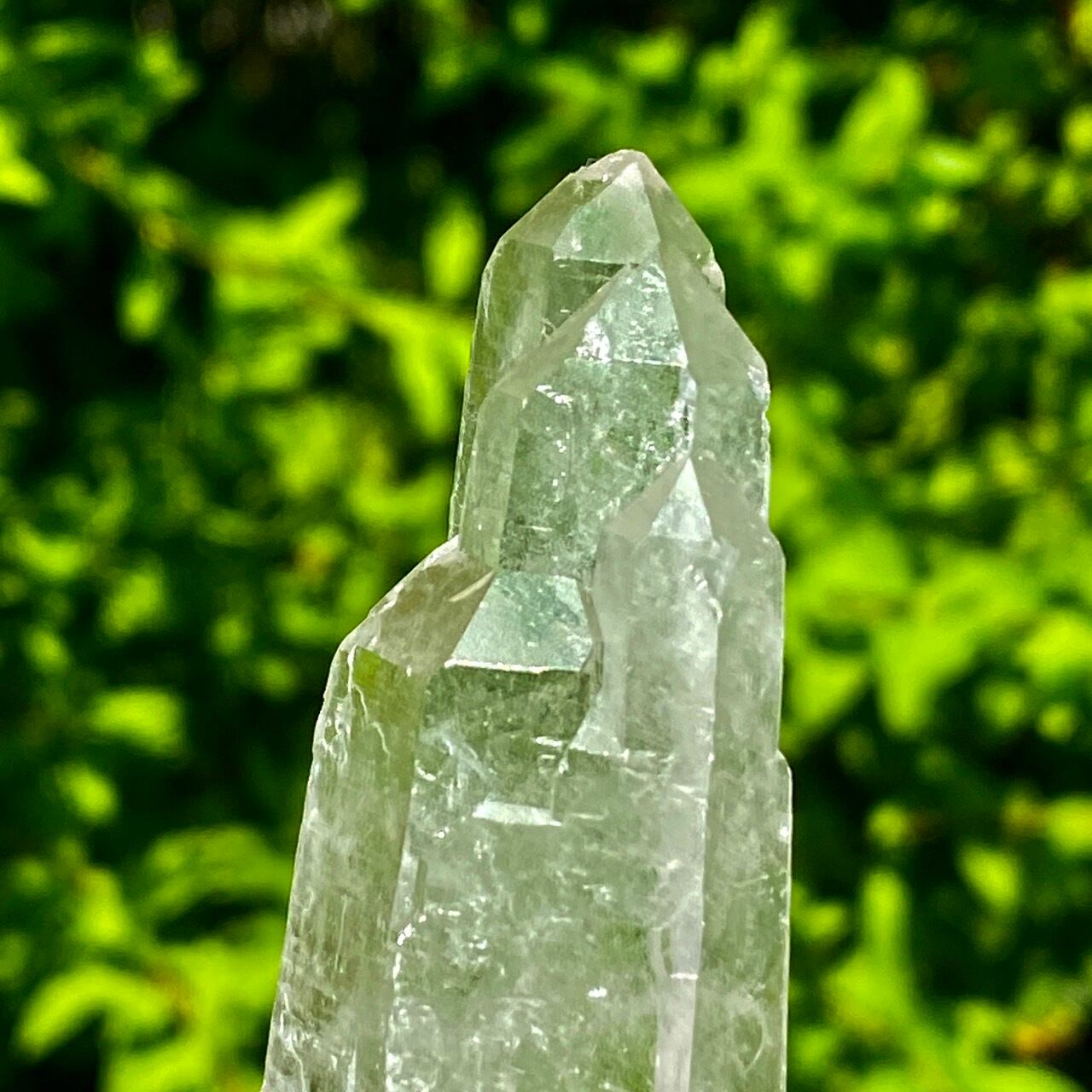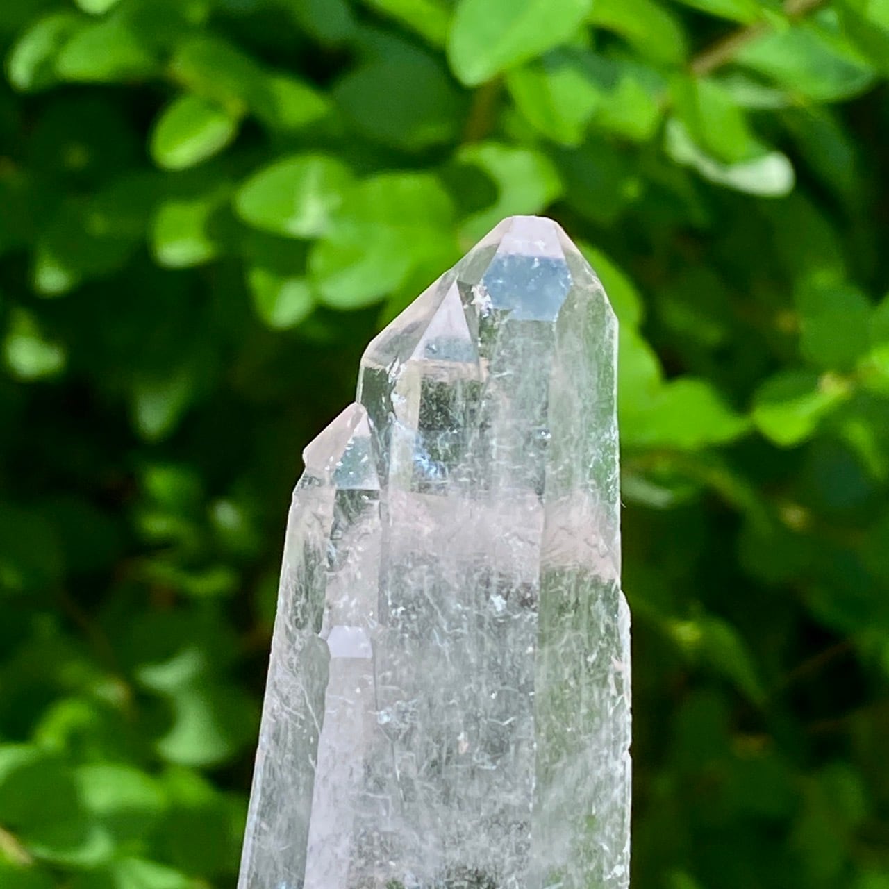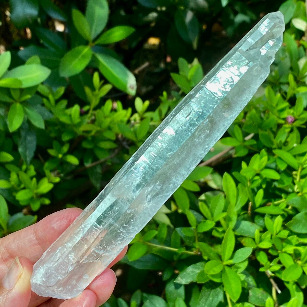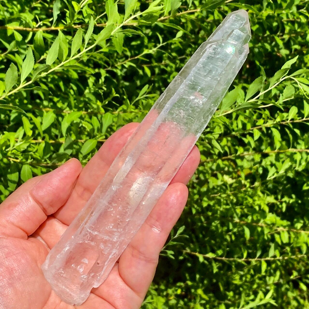 レーザー水晶とは先端に向かって細長く長柱状に伸びた形をしている水晶で、先端部(ファセット、錐面)も通常のものと比べて小さいのが特徴です。 先端から強力なエネルギーを発するといわれているスペシャルな水晶です。