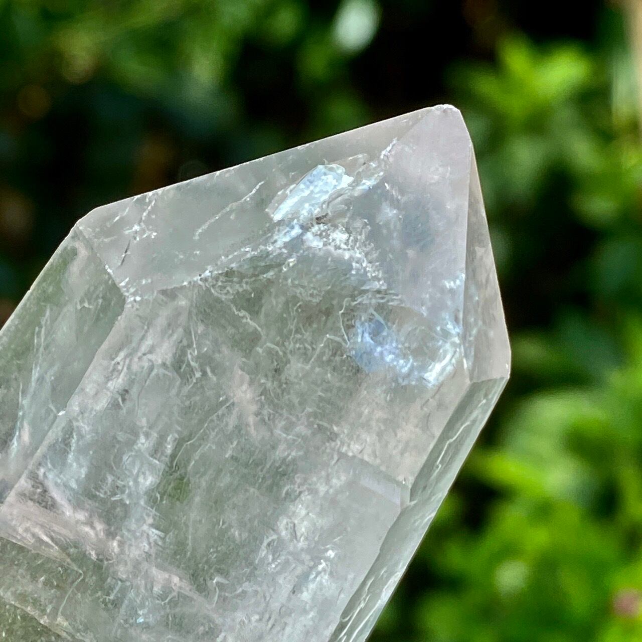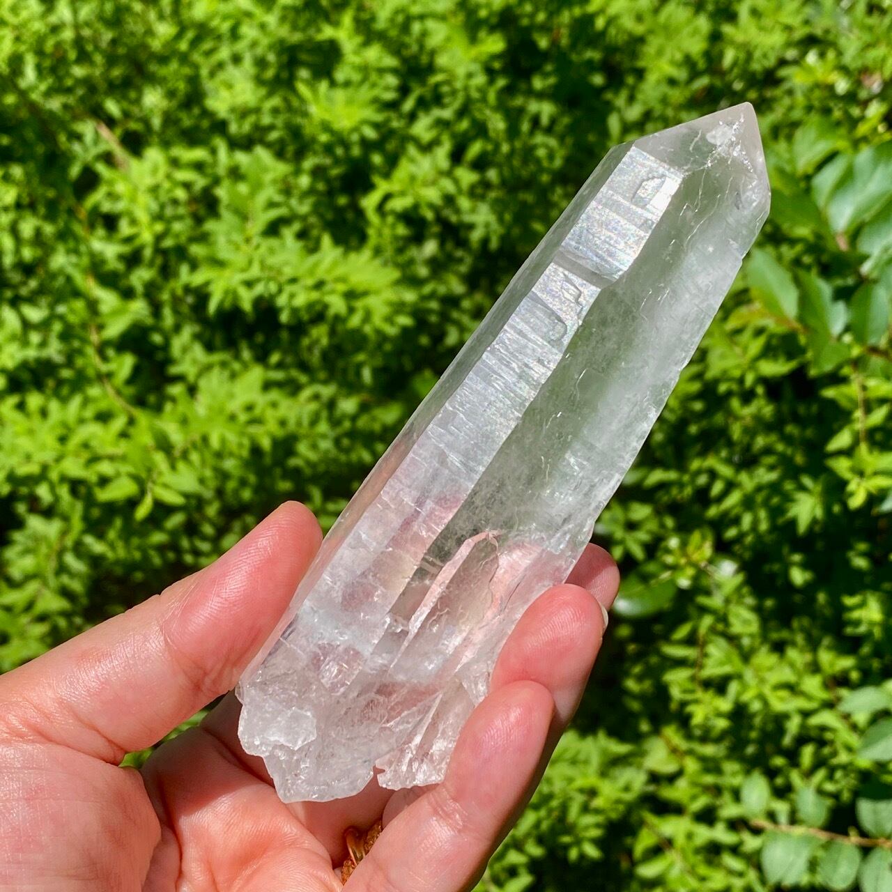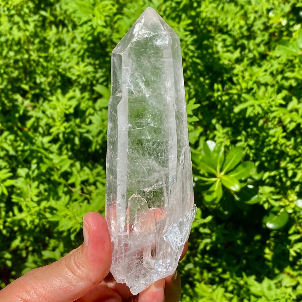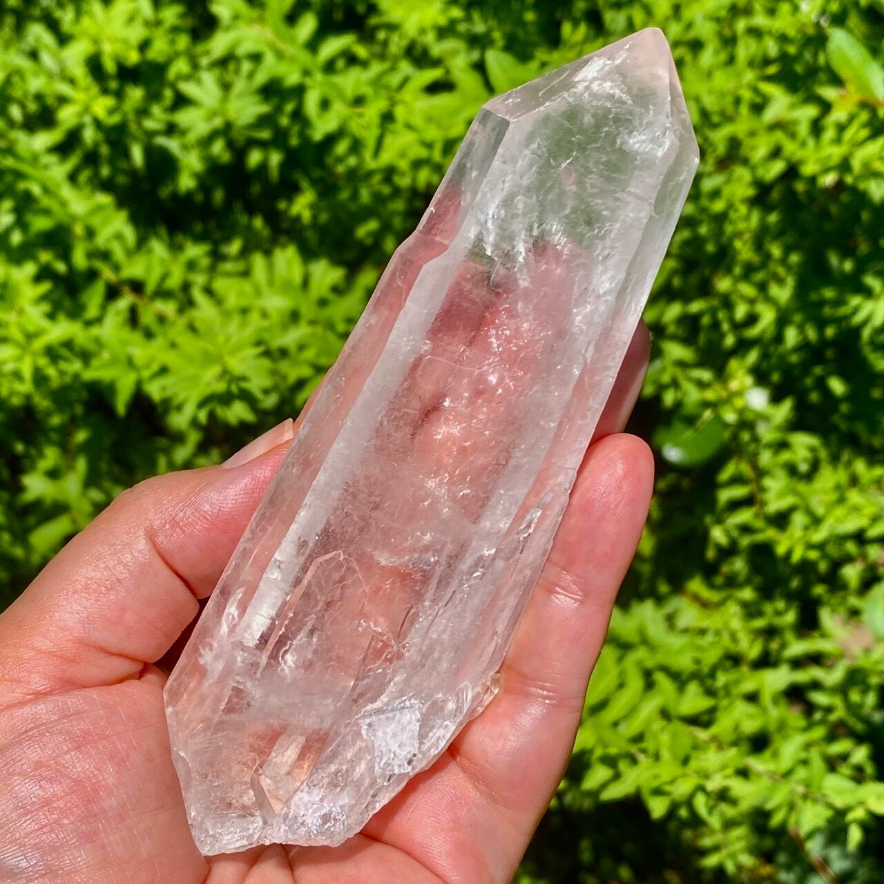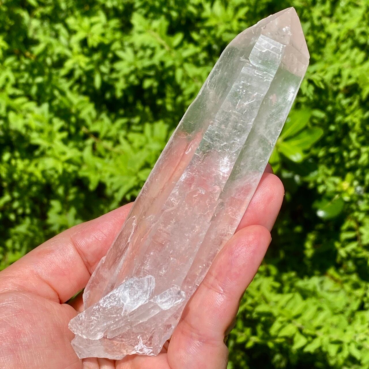 レーザー水晶とは先端に向かって細長く長柱状に伸びた形をしている水晶で、先端部(ファセット、錐面))も通常のものと比べて小さいのが特徴です。 先端から強力なエネルギーを発するといわれているスペシャルな水晶です。