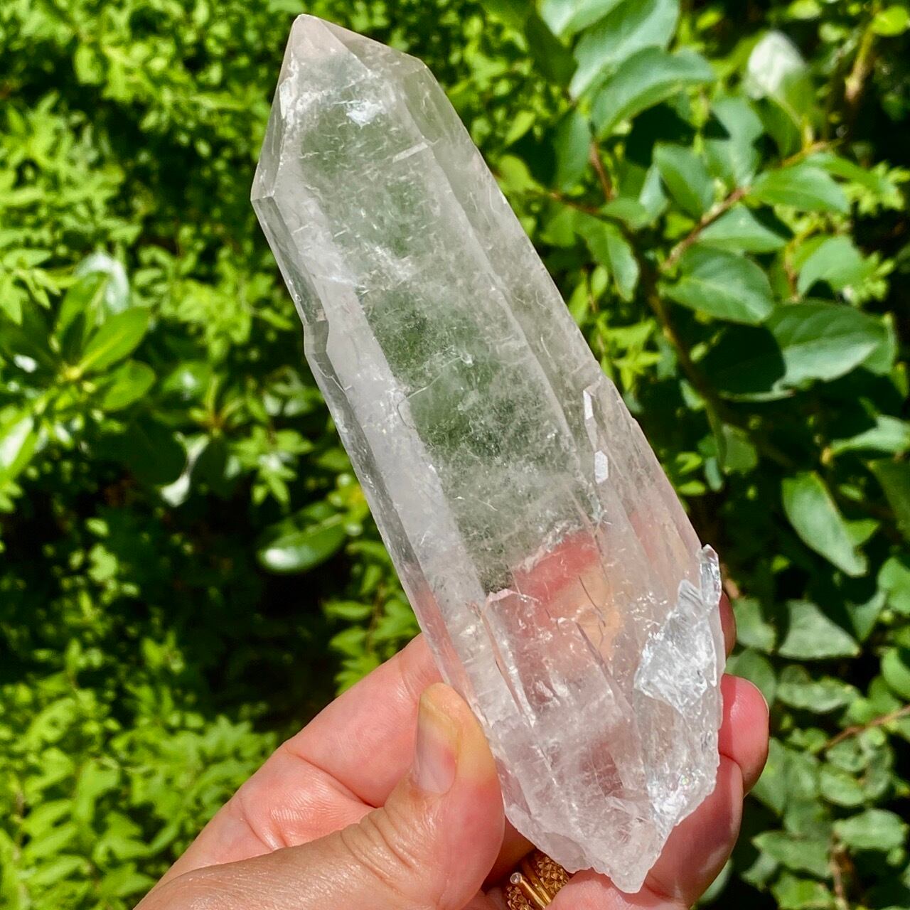 チャンキーなフォルムが特徴的で、手のひらに収めた時の存在感を感じて頂きたい、レーザクォーツになります。素敵な水晶の剣やワンドに早変わり♡場の浄化やご自分のチャクラやオーラのヒーリング等、多目的にご利用いただけます。
