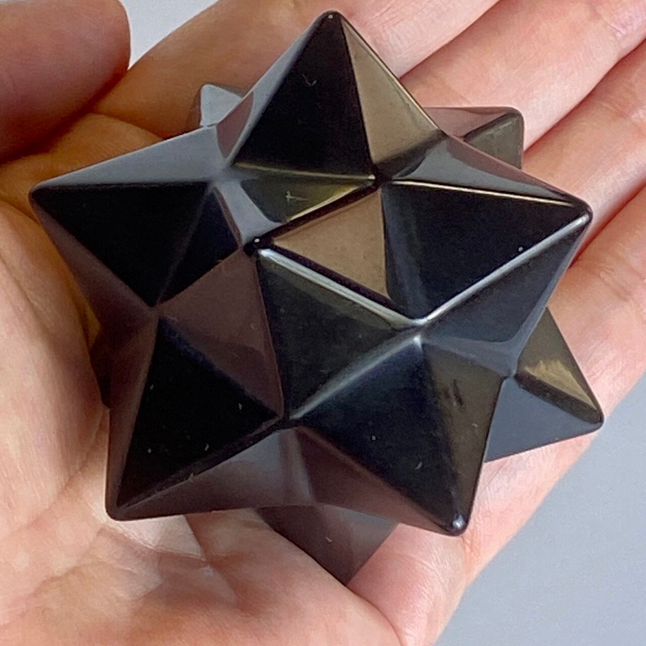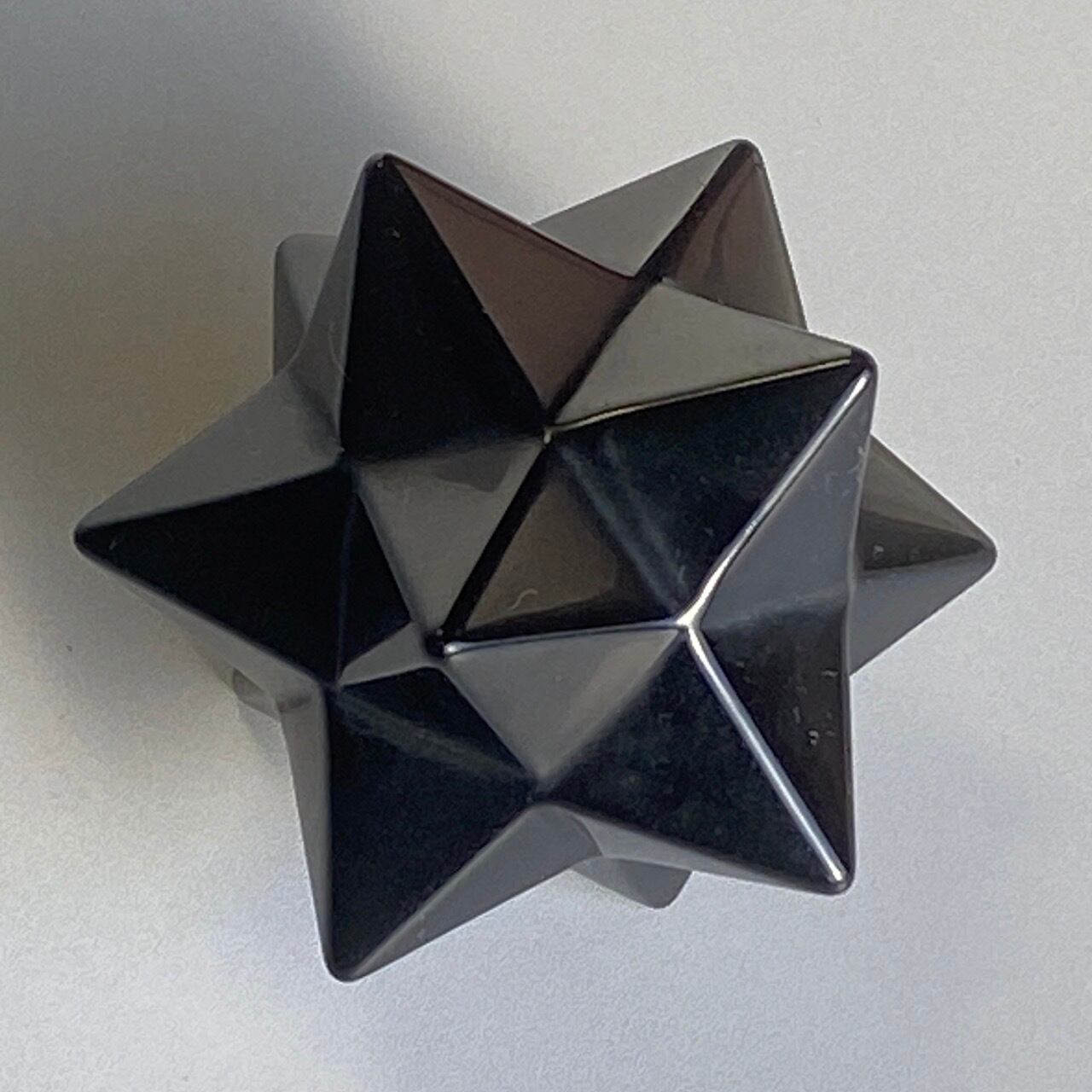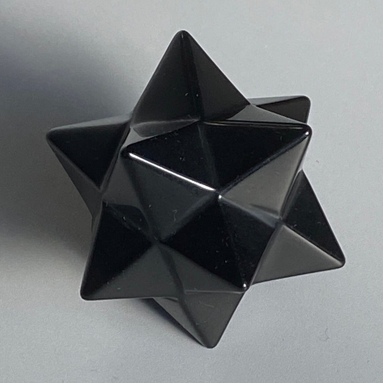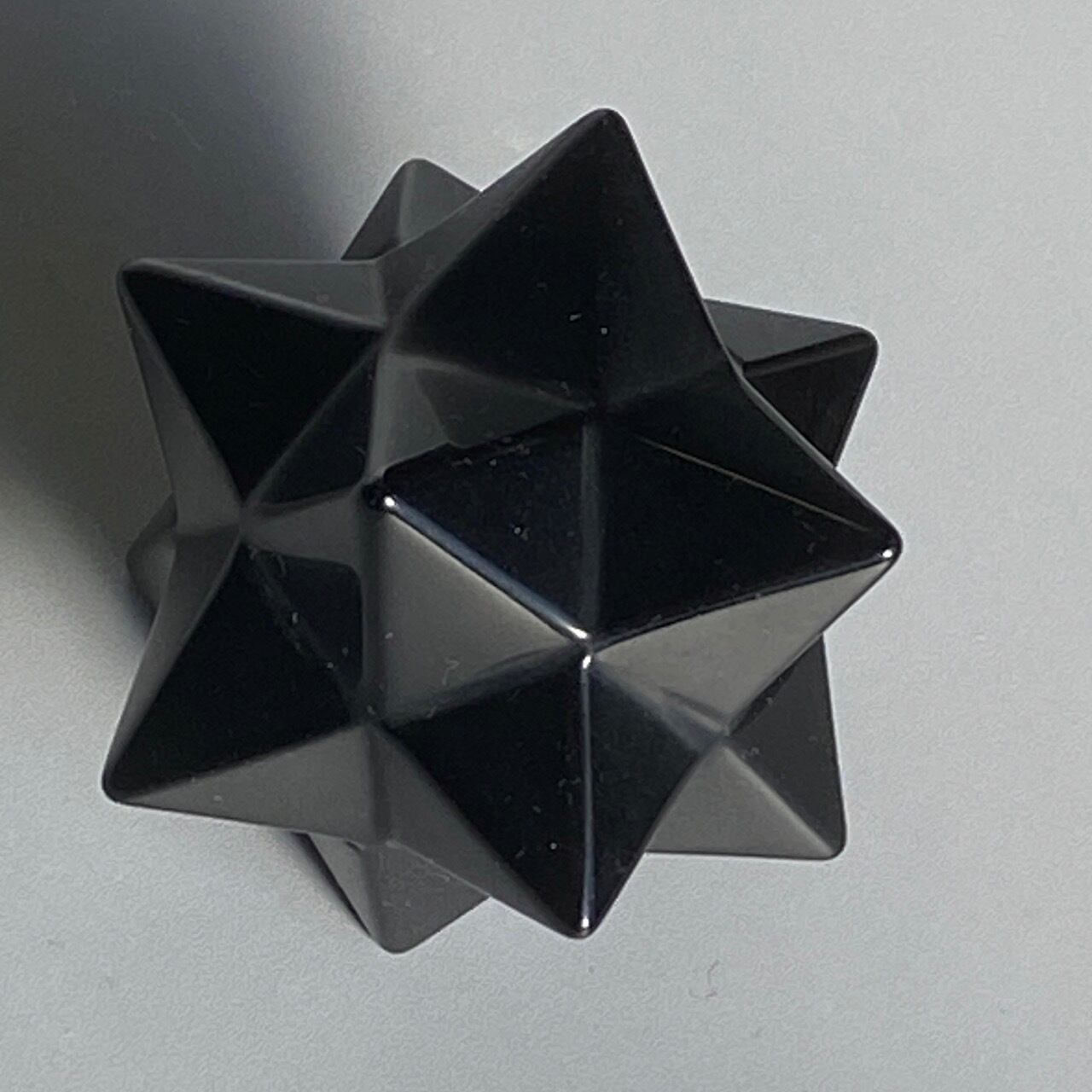 アステロイドは小星型12面体と呼ばれ、五芒星(ペンダグラム)と六芒星(ヘキサグラム)が合体した12個の頂点を持つ形状です。六芒星のもつ大宇宙の調和と安定、そして五芒星の持つ神の力による護符、この2つの要素を融合させたものです。