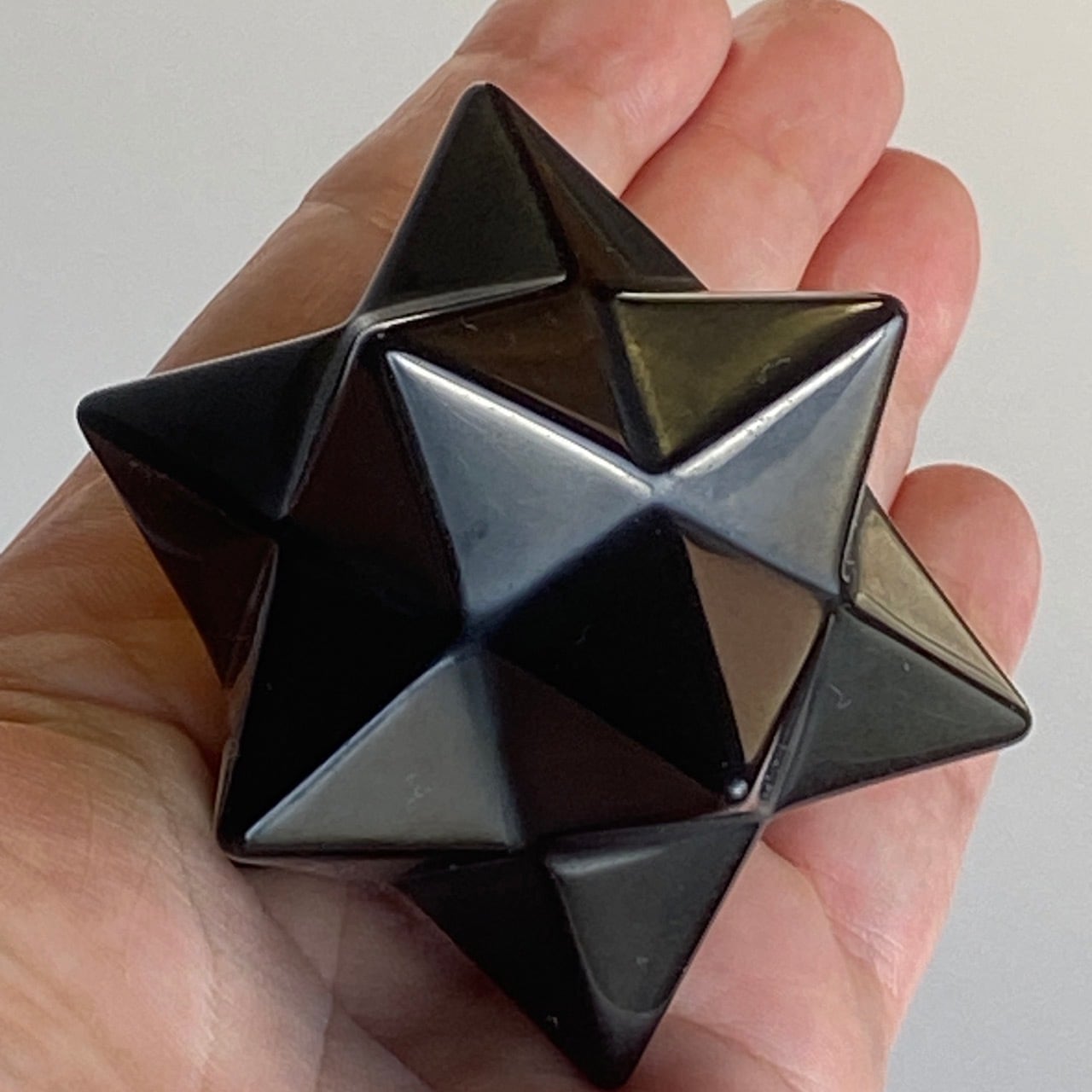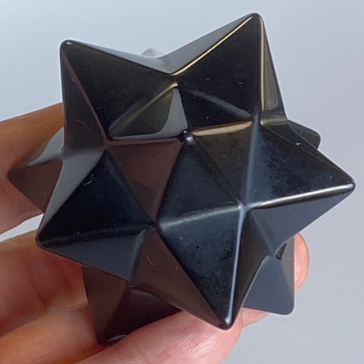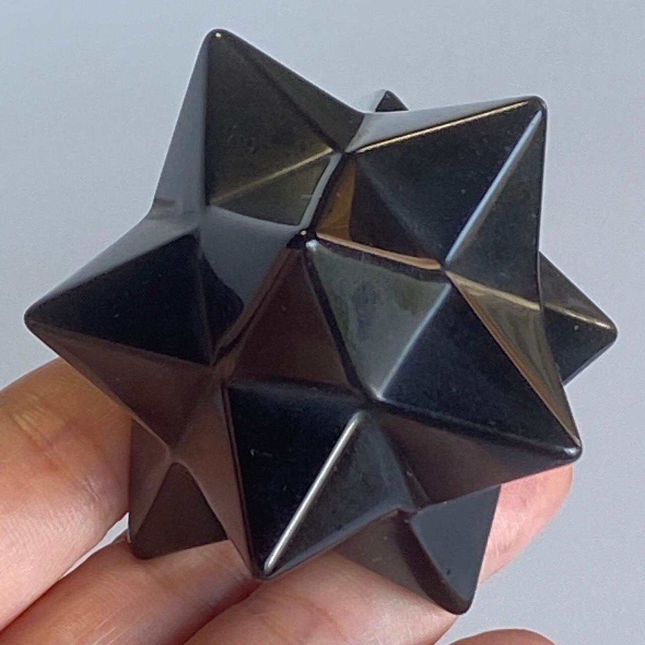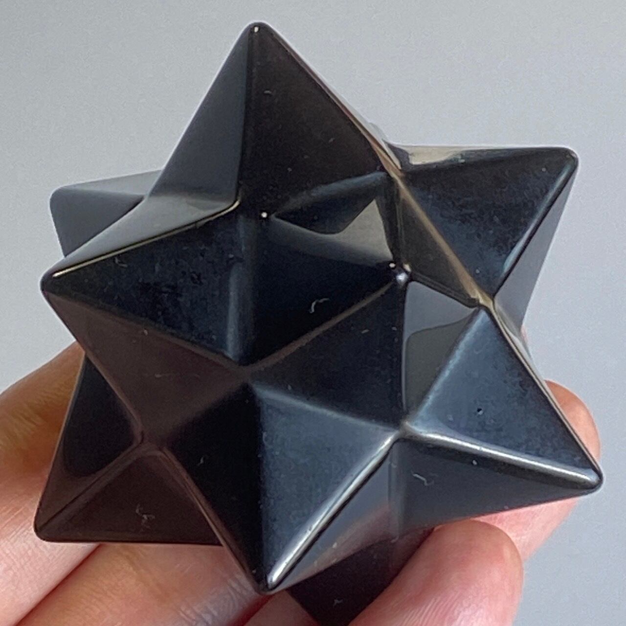 アステロイドは小星型12面体と呼ばれ、五芒星(ペンダグラム)と六芒星(ヘキサグラム)が合体した12個の頂点を持つ形状です。六芒星のもつ大宇宙の調和と安定、そして五芒星の持つ神の力による護符、この2つの要素を融合させたものです。