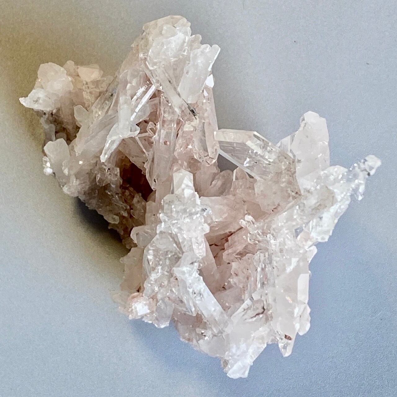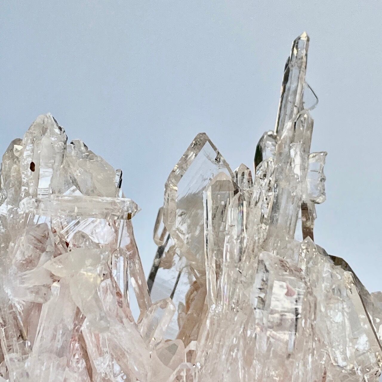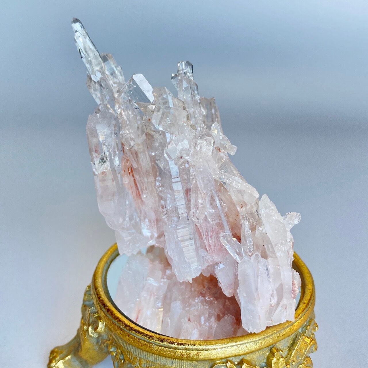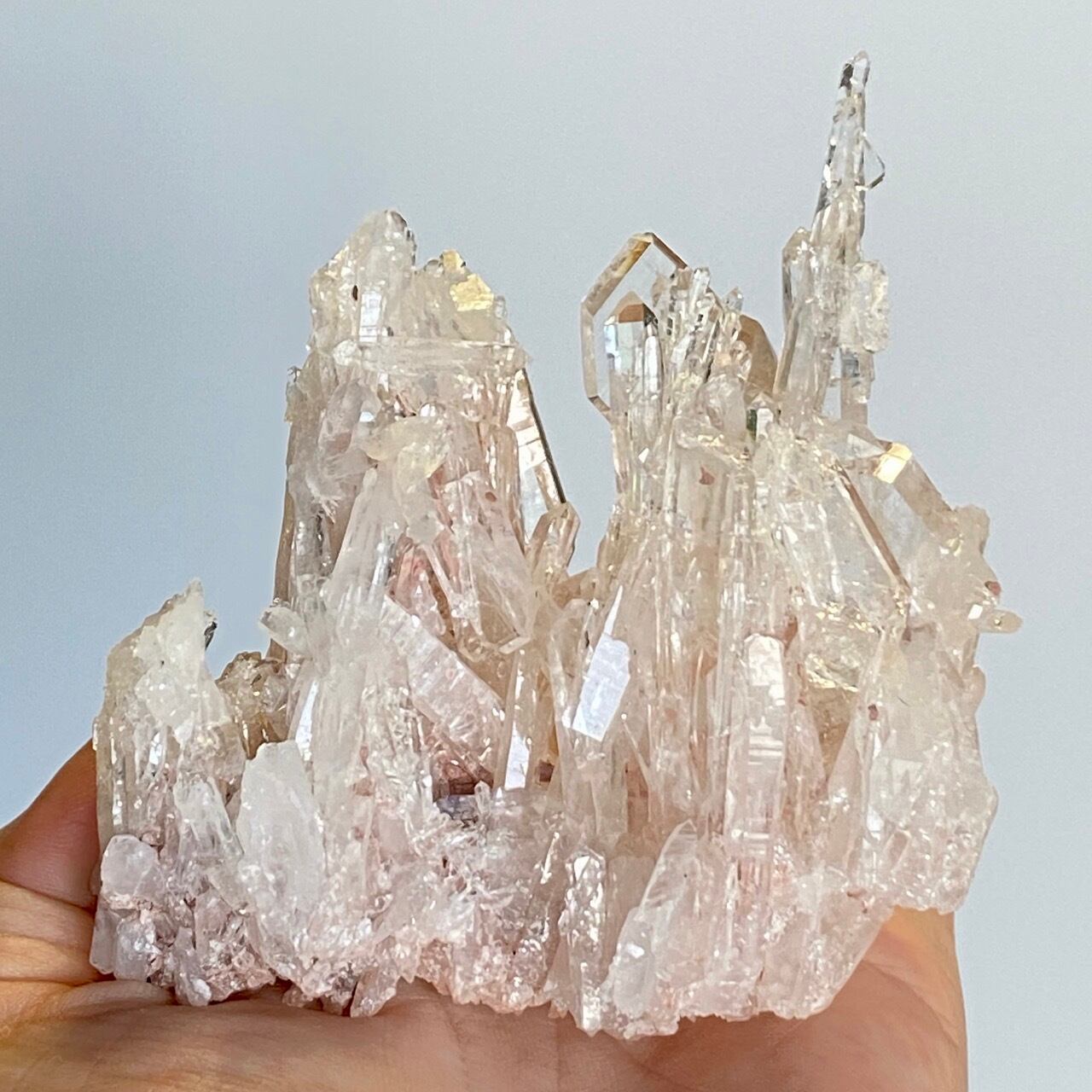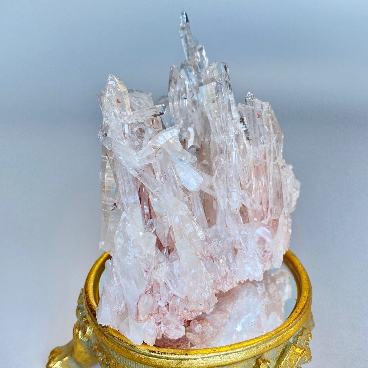 コロンビア産のピンクレムリアンの中でもレア系のファーデンクォーツのクラスターになります。詳しくは、Sacred rosé pink Lemurian quartzと呼ばれ、sacredは『神聖な』を、rosé pinkは『ロゼワインの色のように控えめな淡いピンクの』を意味します。