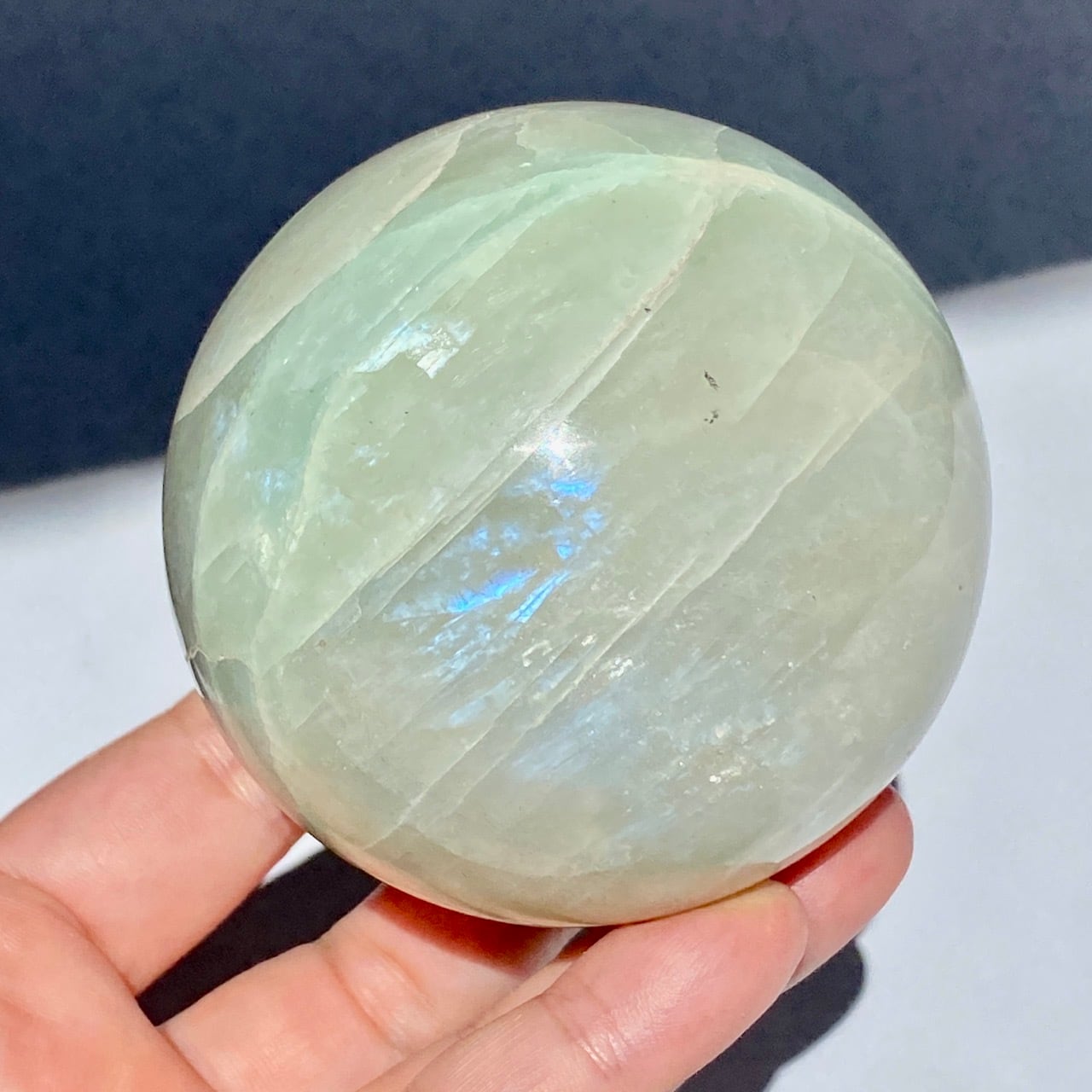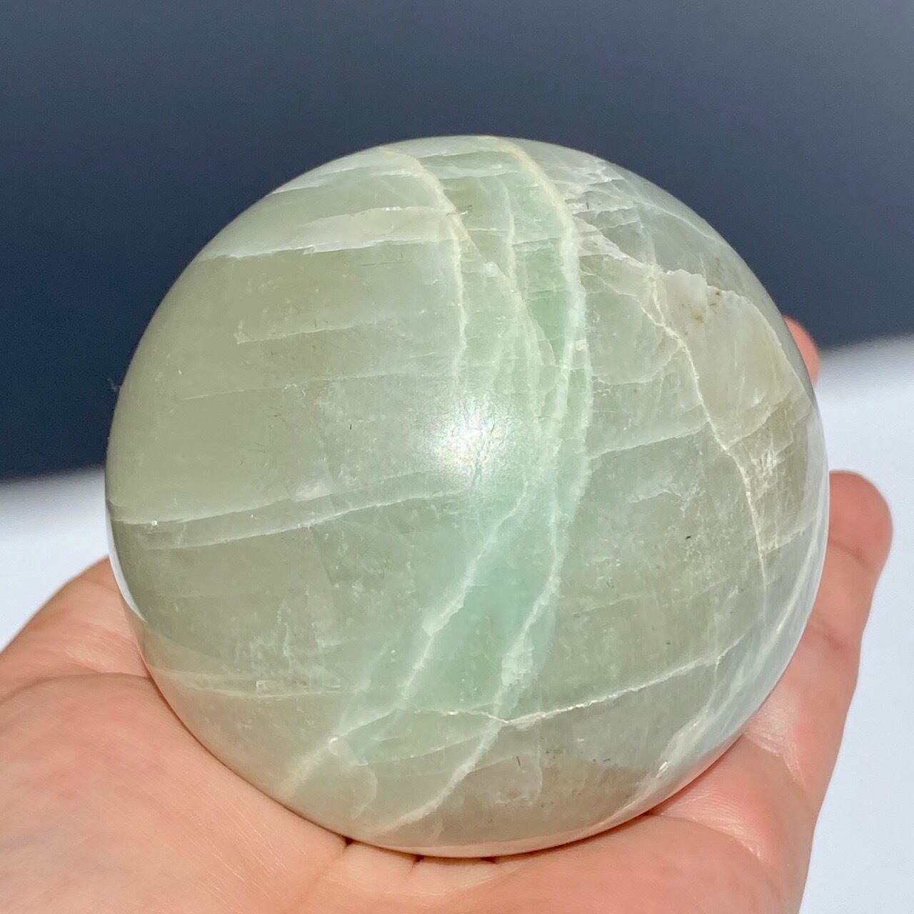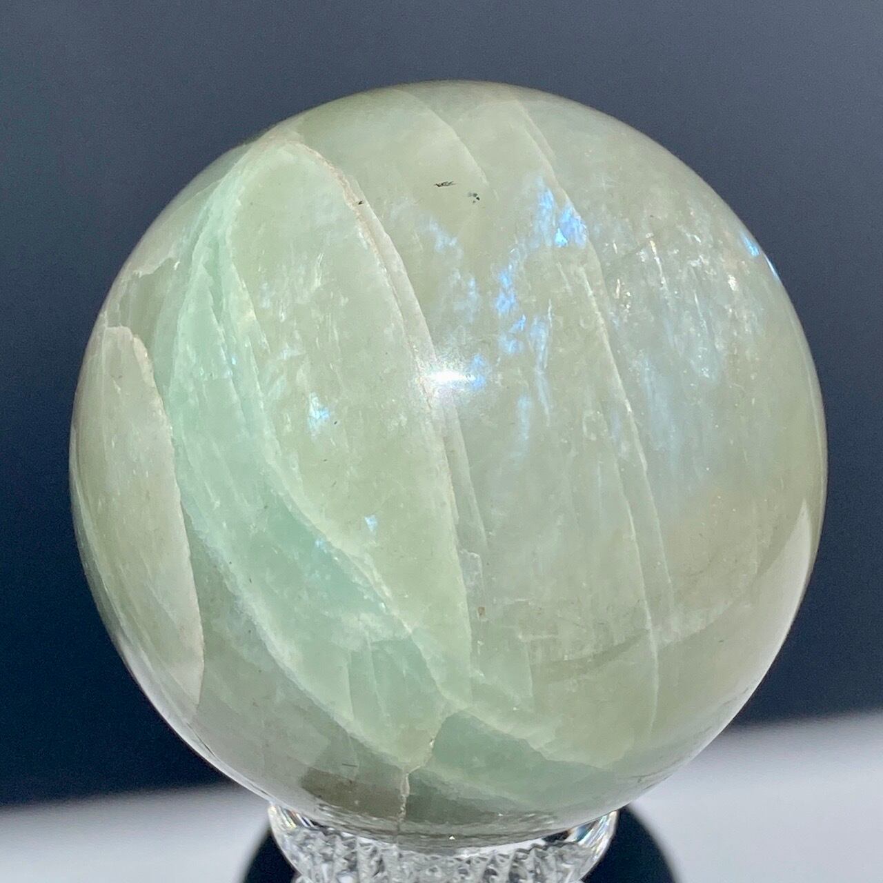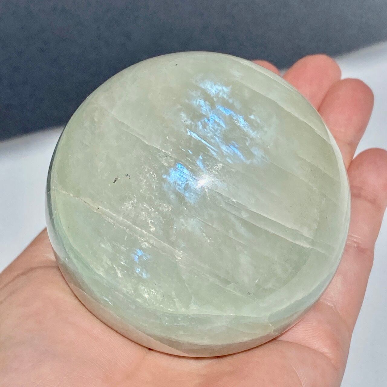 最近出てきたザンビア産セージ色のグリーンムーンストーンも素敵ですが、店主が絶対的に好きなのは、1〜2年前に市場に現れて、その後殆どリストックされていない(されたとしても少量で入手困難)マダガスカル産のミントグリーン系の子達。