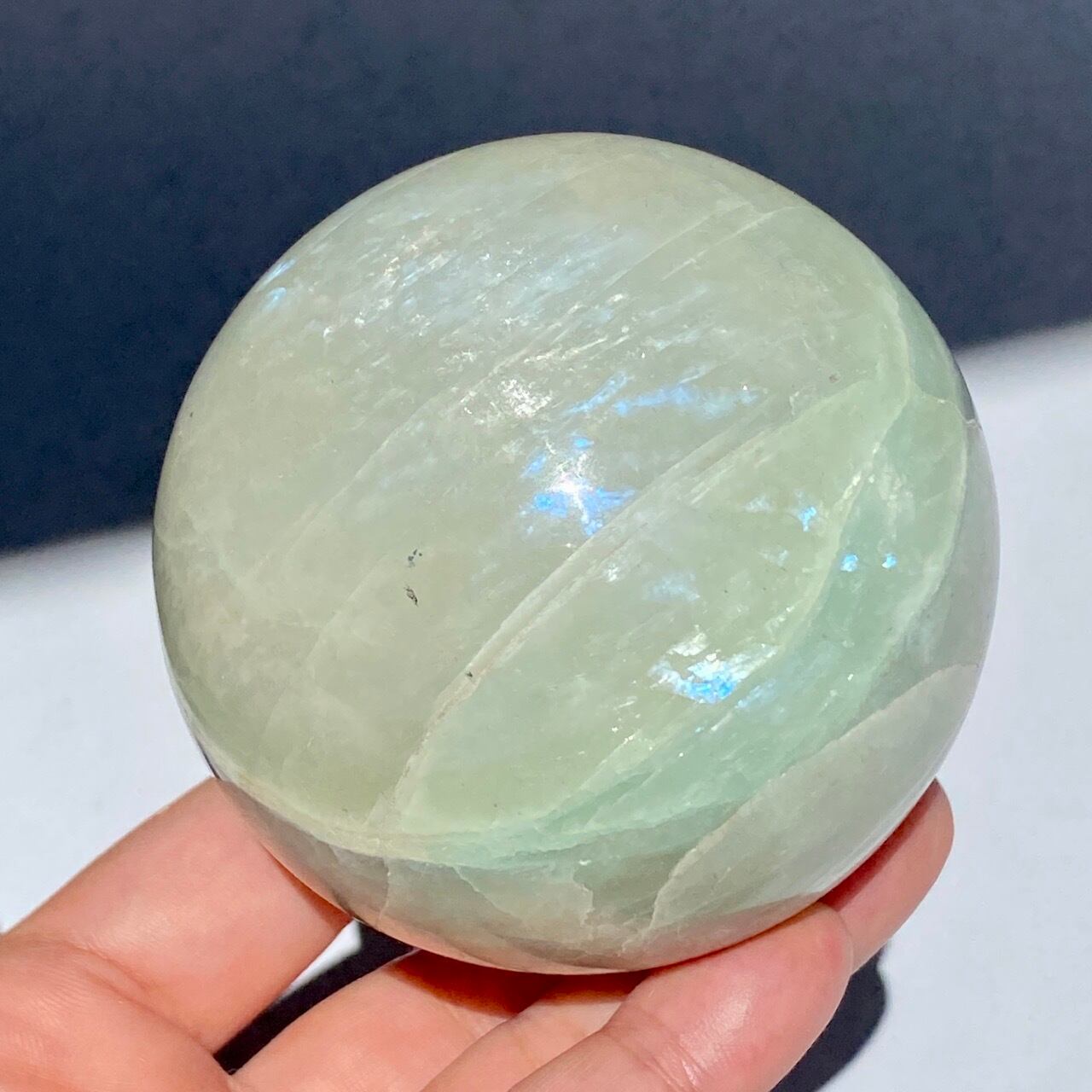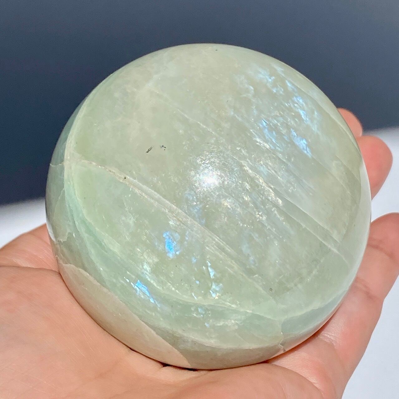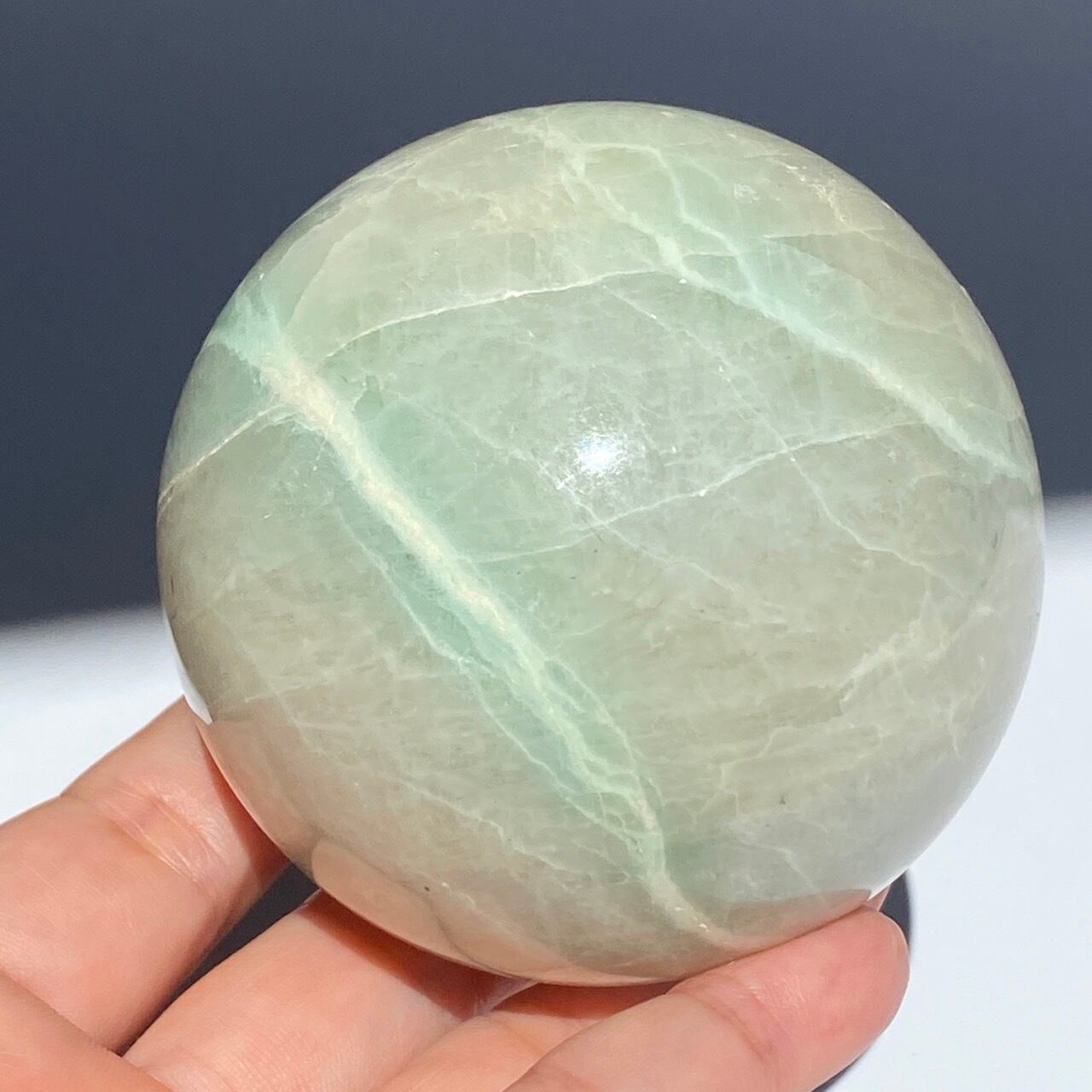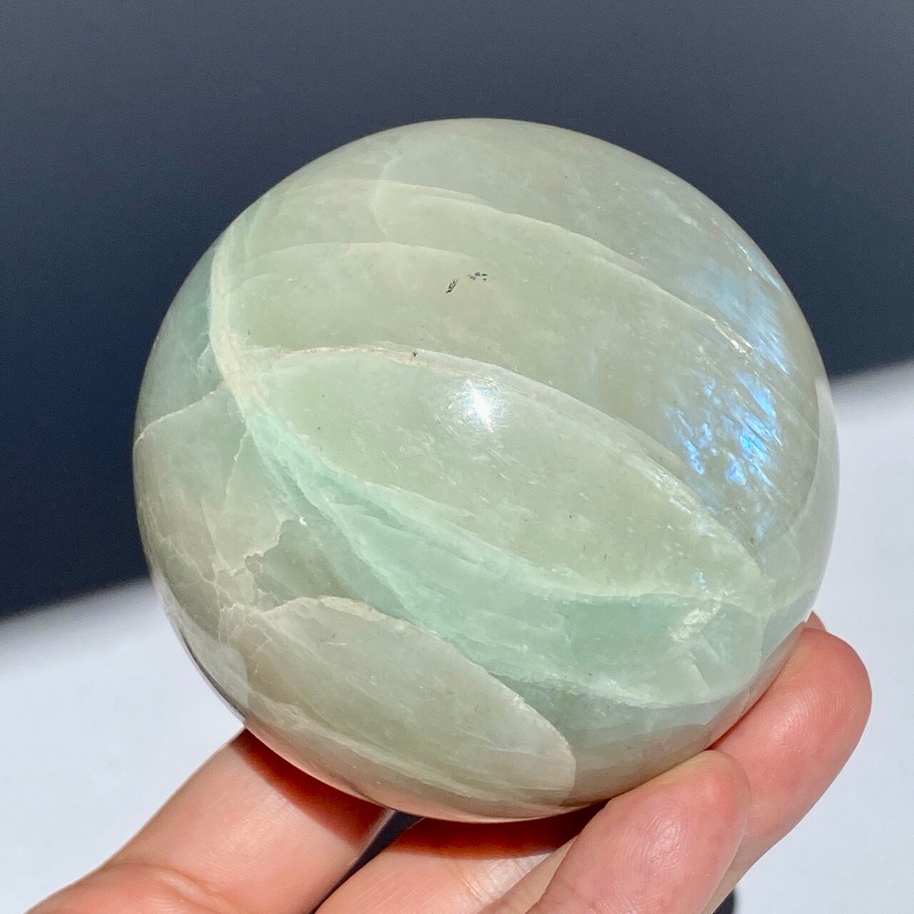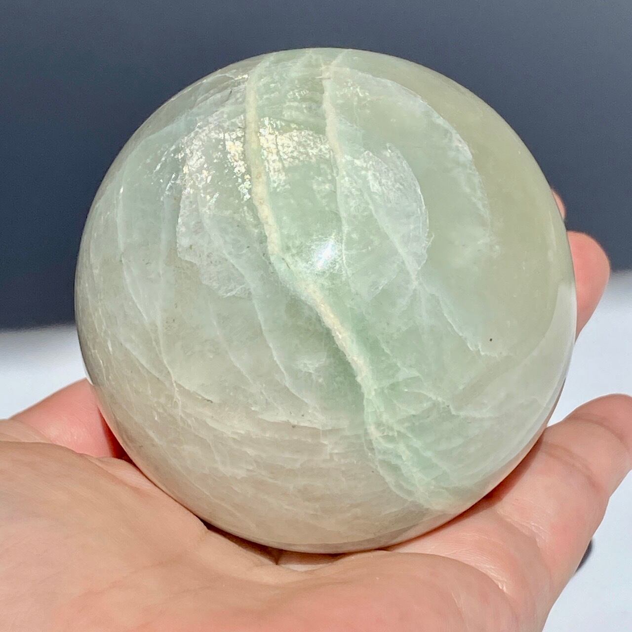最近出てきたザンビア産セージ色のグリーンムーンストーンも素敵ですが、店主が絶対的に好きなのは、1〜2年前に市場に現れて、その後殆どリストックされていない(されたとしても少量で入手困難)マダガスカル産のミントグリーン系の子達。