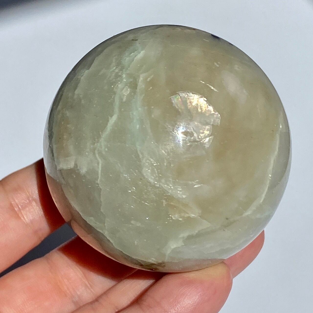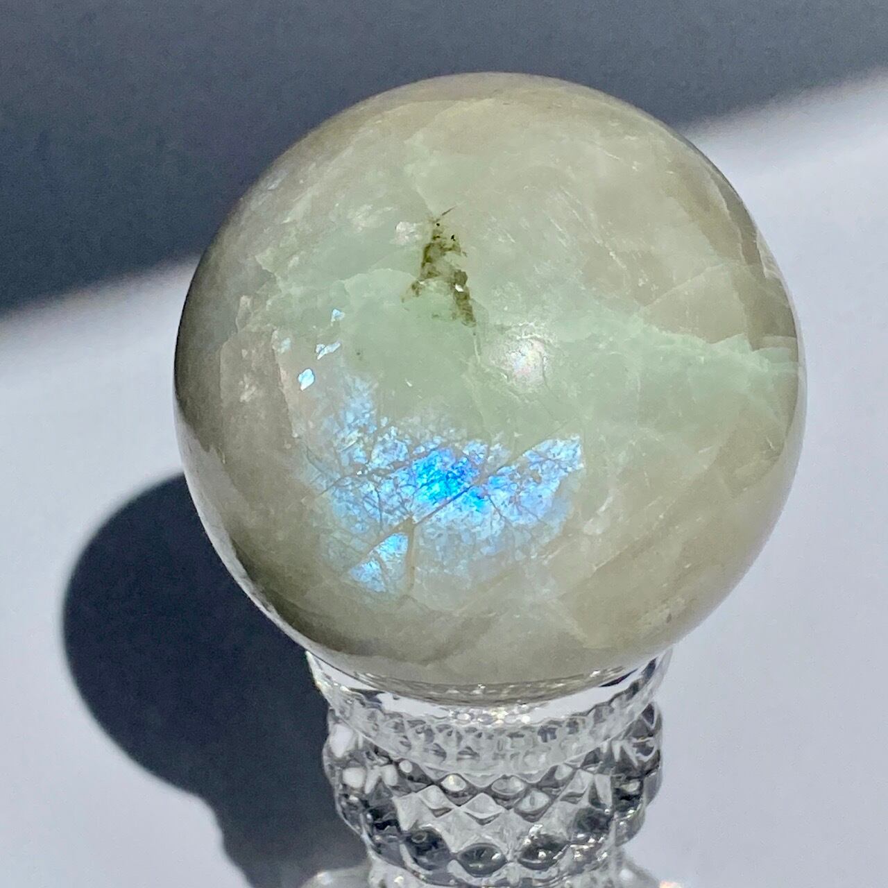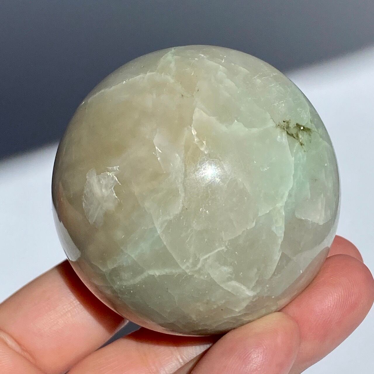 最近出てきたザンビア産セージ色のグリーンムーンストーンも素敵ですが、店主が絶対的に好きなのは、1〜2年前に市場に現れて、その後殆どリストックされていない(されたとしても少量で入手困難)マダガスカル産のミントグリーン系の子達。
