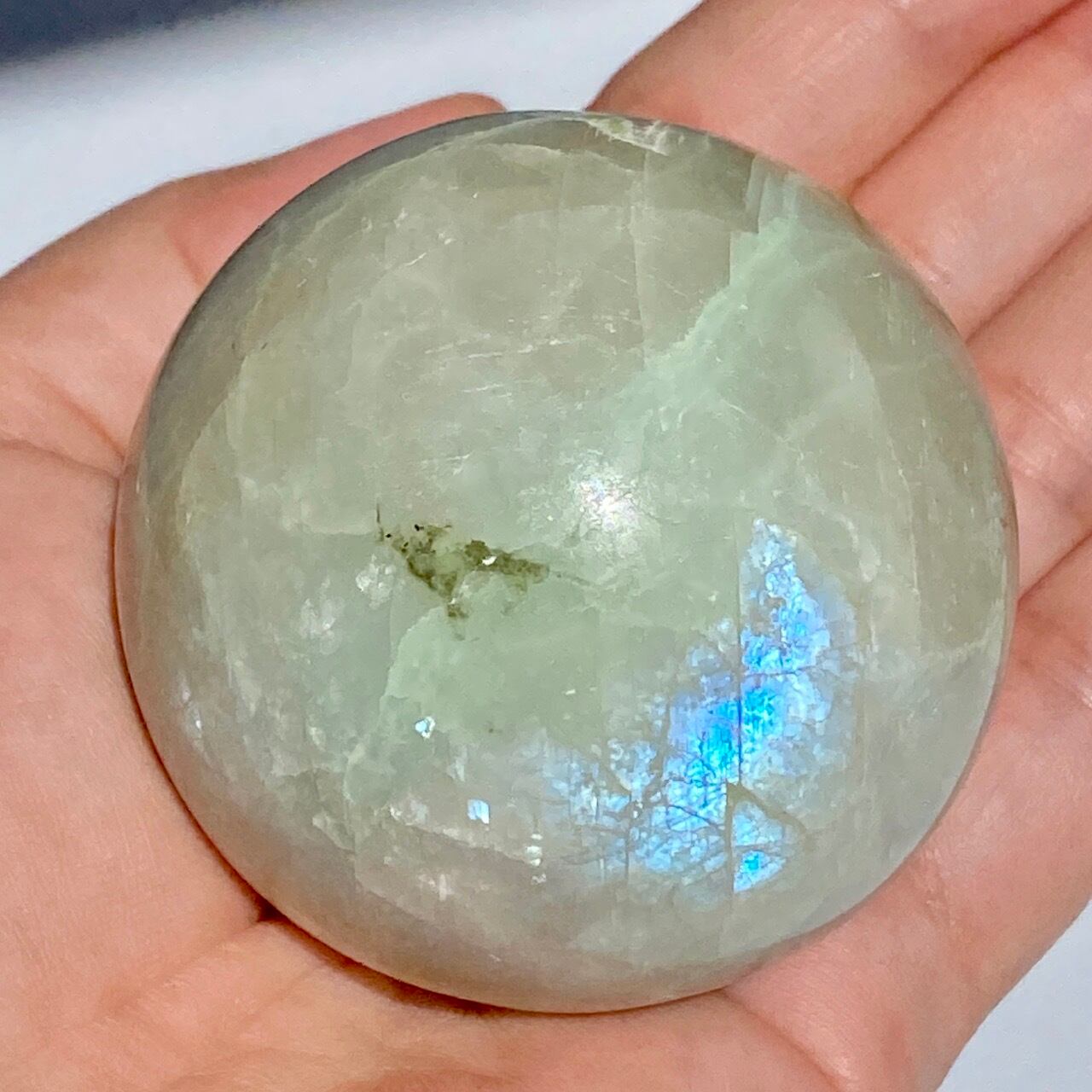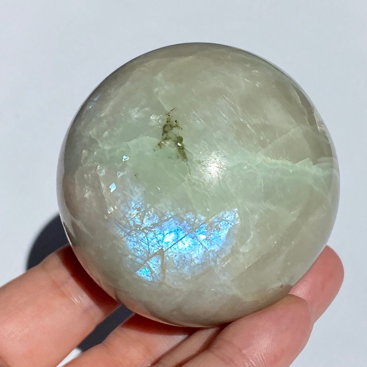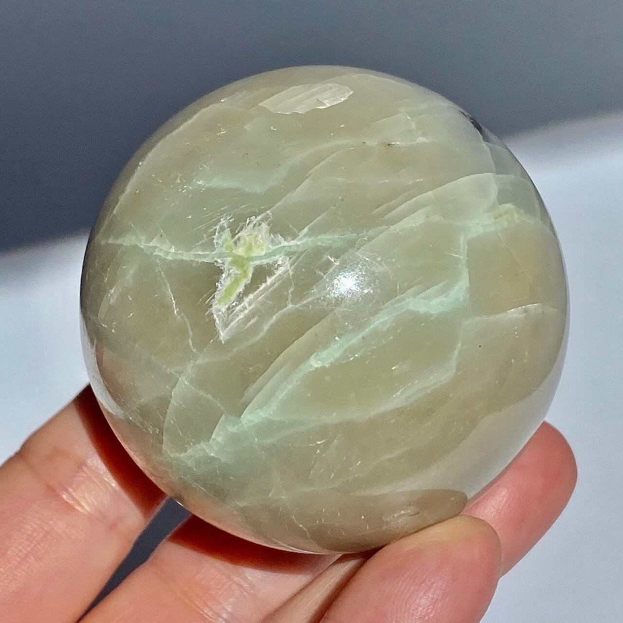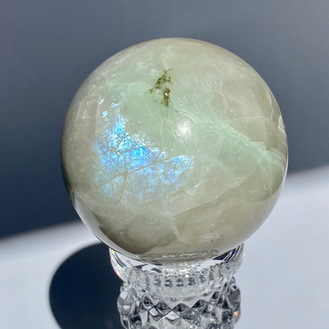 最近出てきたザンビア産セージ色のグリーンムーンストーンも素敵ですが、店主が絶対的に好きなのは、1〜2年前に市場に現れて、その後殆どリストックされていない(されたとしても少量で入手困難)マダガスカル産のミントグリーン系の子達。
