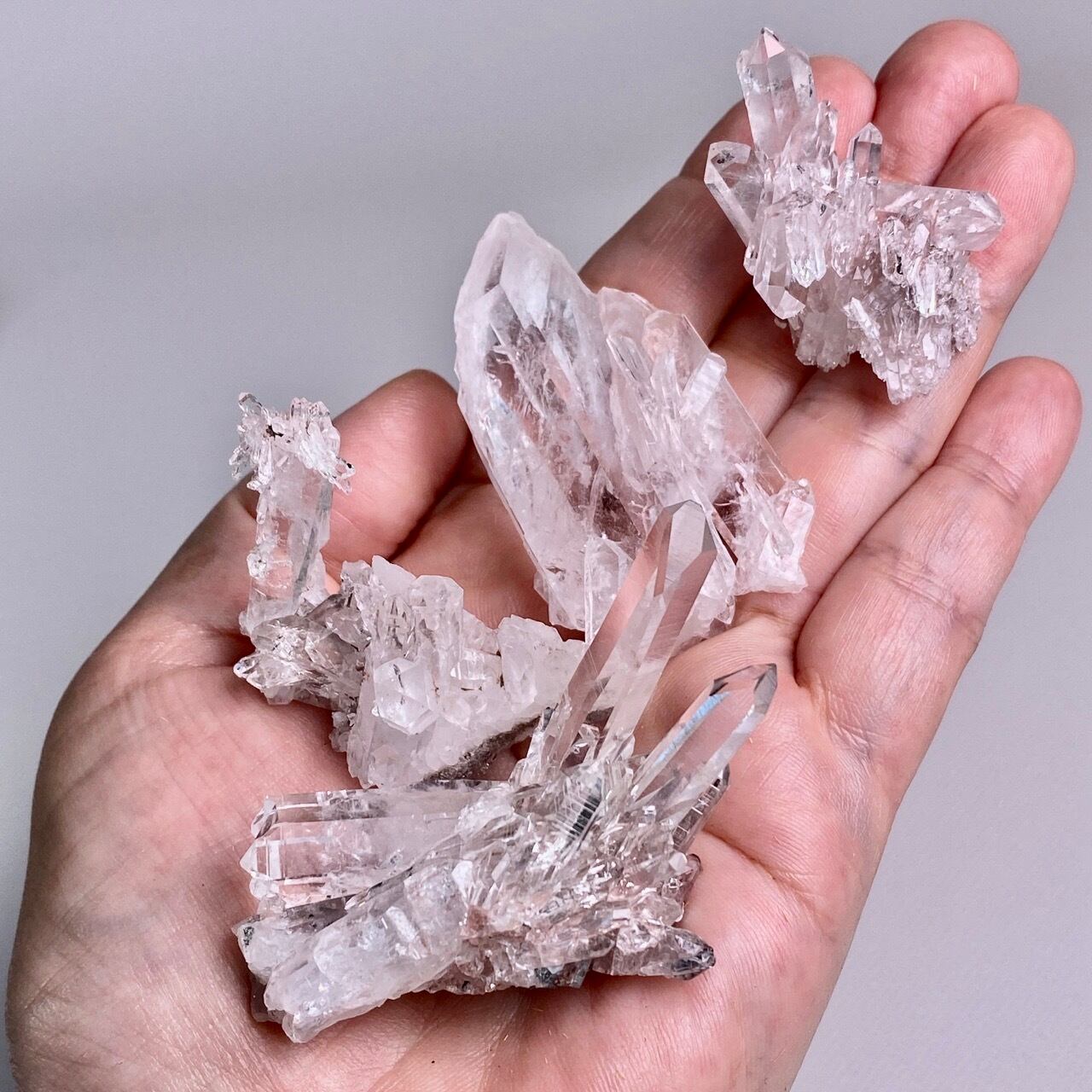 コロンビア産のピンクレムリアンクラスターの小さいサイズのクラスターのセットになります。