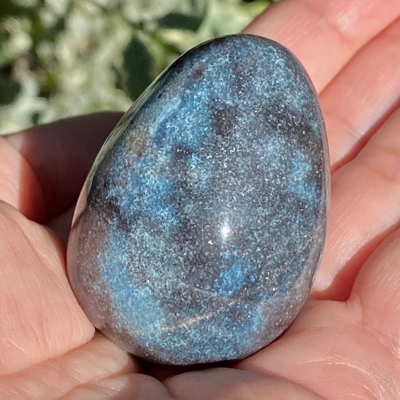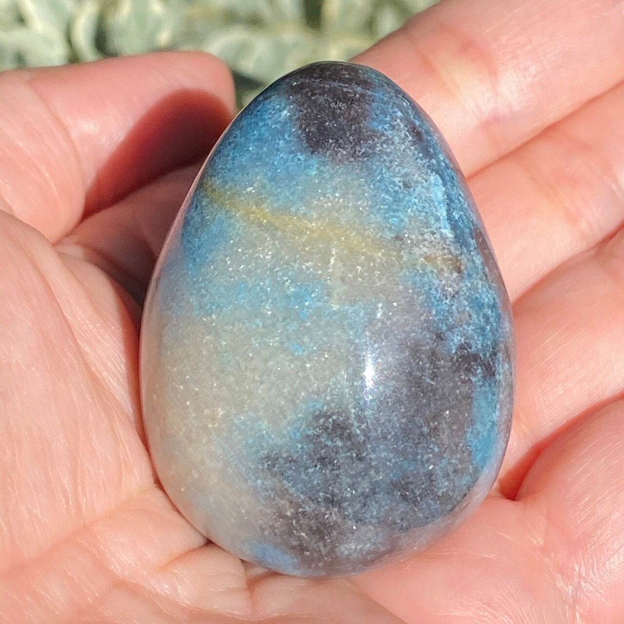 画像の写りより、実際はミッドナイトブルーが濃く、鮮やかなブルーは1段階控えめな感じです。最近トロレアイトはギャラクシー感たっぷりの子を良くみかけるようになり、店主の最近のフェイバリットでもあります♡ところどころクォーツの煌めきもあり、粒子のような表情も、ギャラクシー感に拍車をかけています。