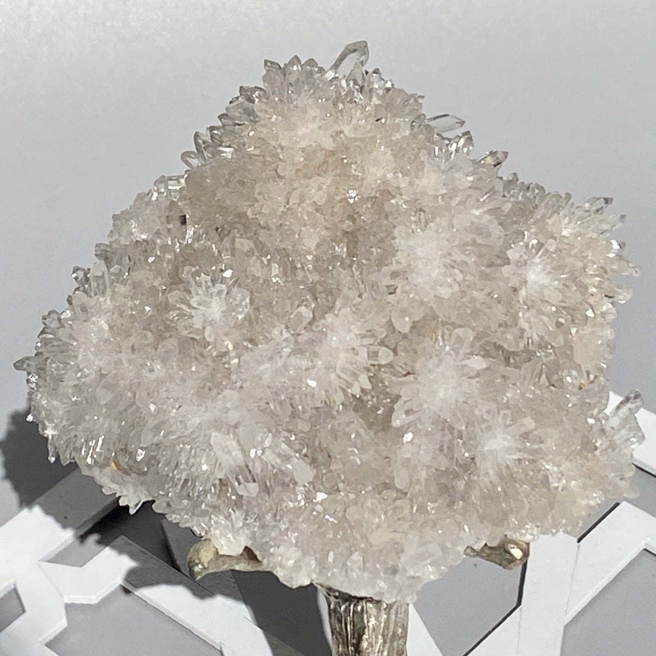 きらきらと輝く美しいポイントが花の様なフォーメーションを形成している美しいクラスターです。画像ではその煌めきをお伝えできないのが残念です。