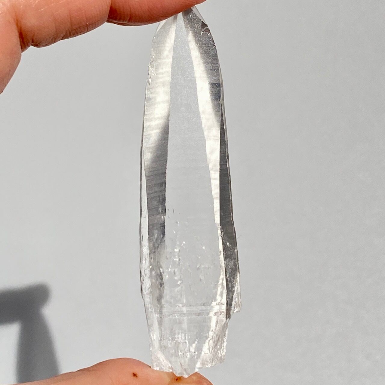 サイズは小さいですが、高透明度の子で、ワイドな柱面か尖塔のようなライン(他面のエッジ)が美しいです。