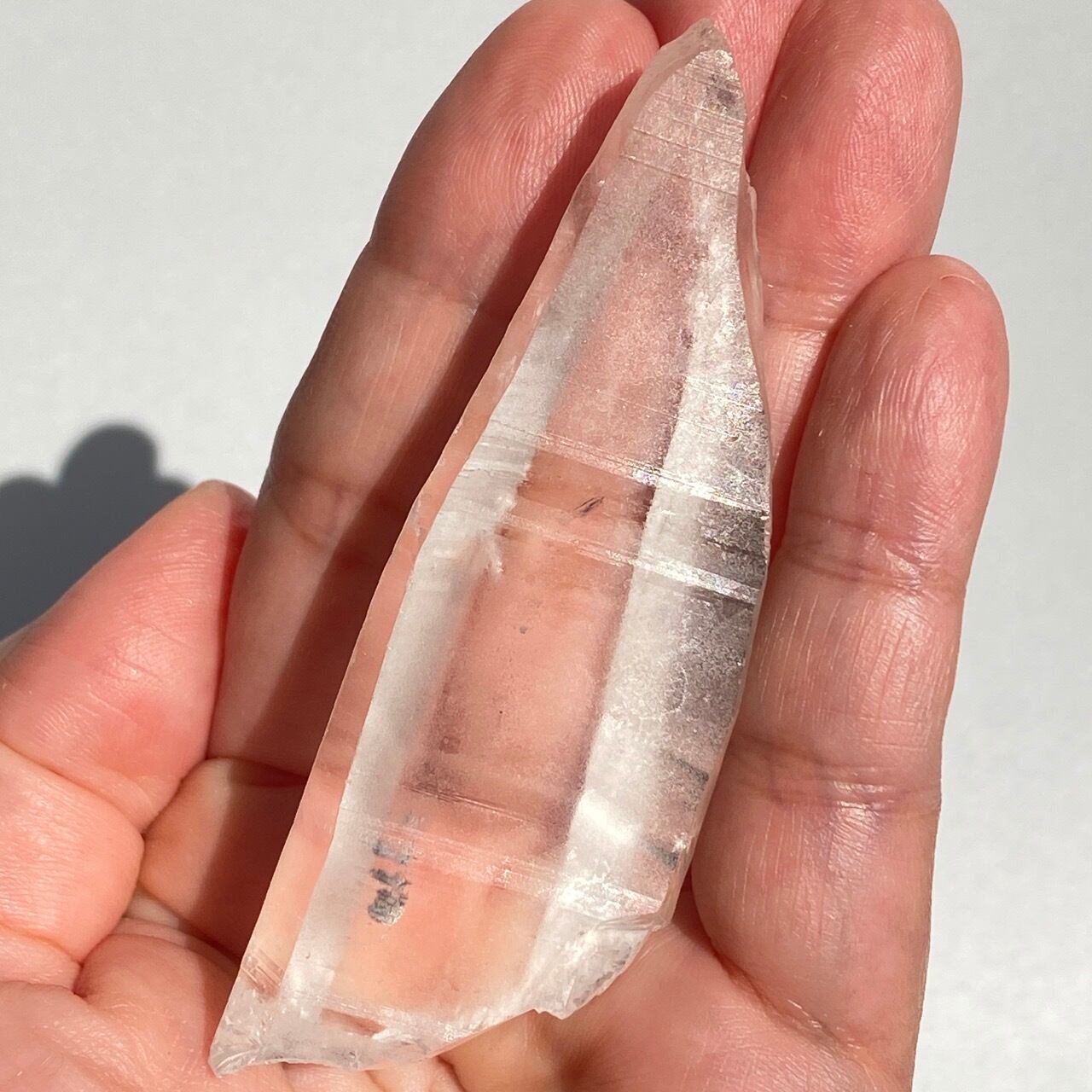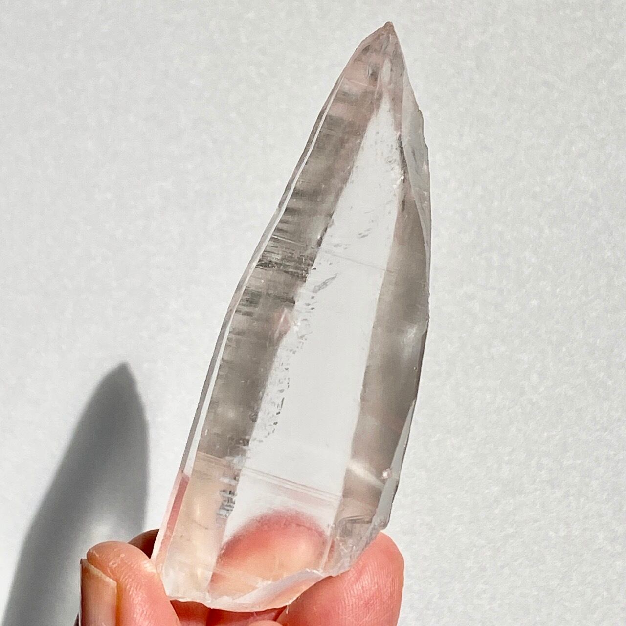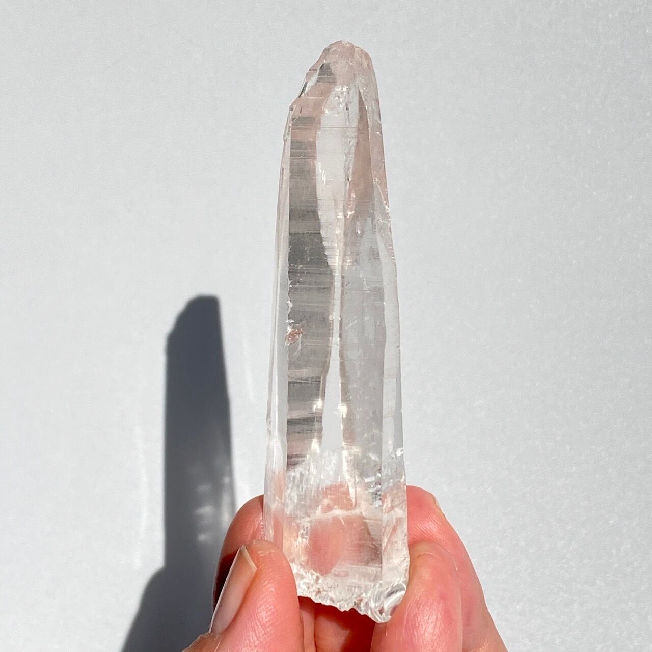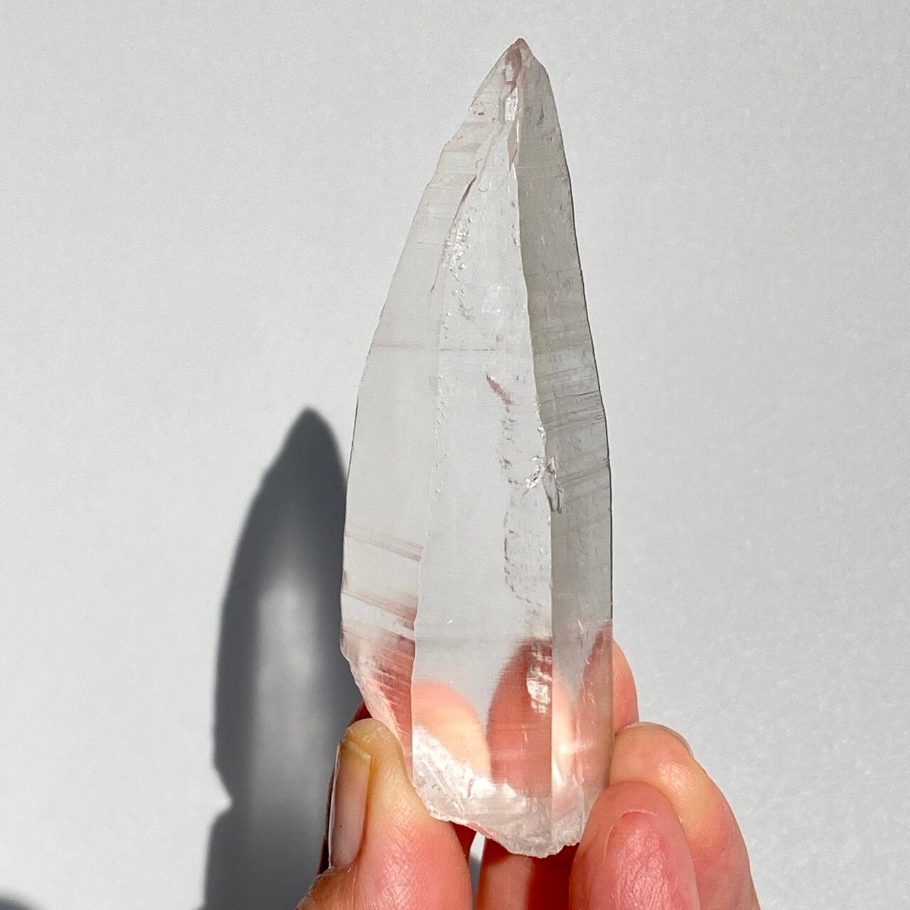 高透明度の子で、平たいワイドな柱面から見た水晶の形状が印象的な子です♡