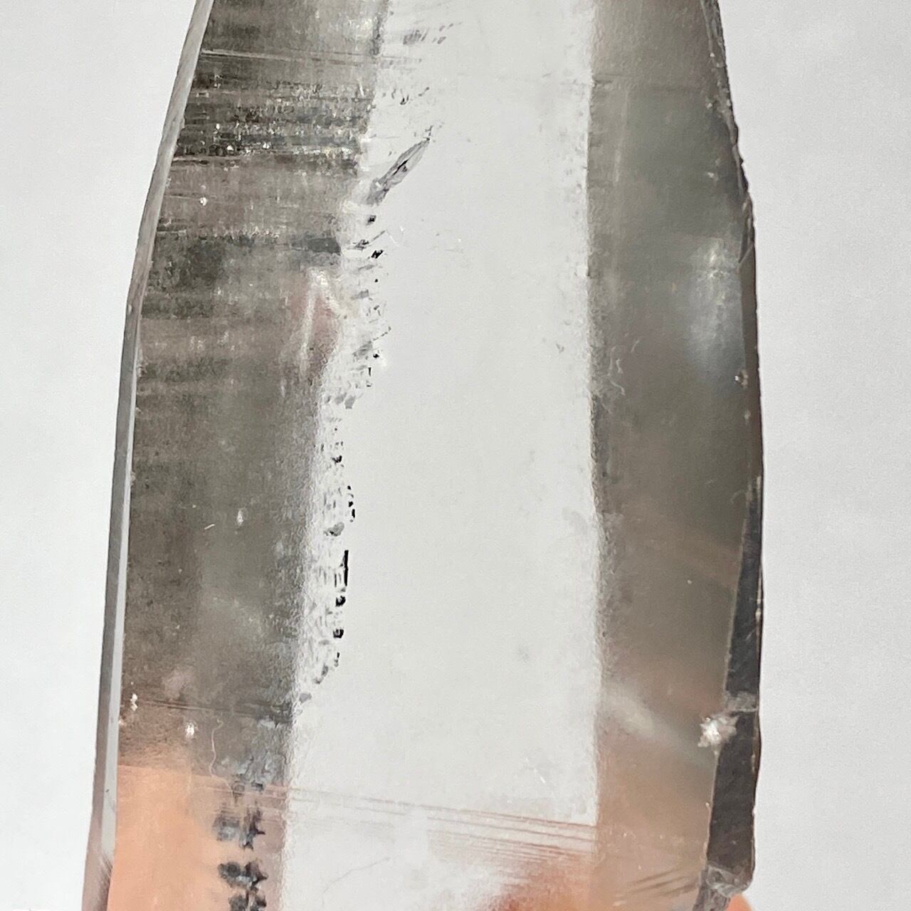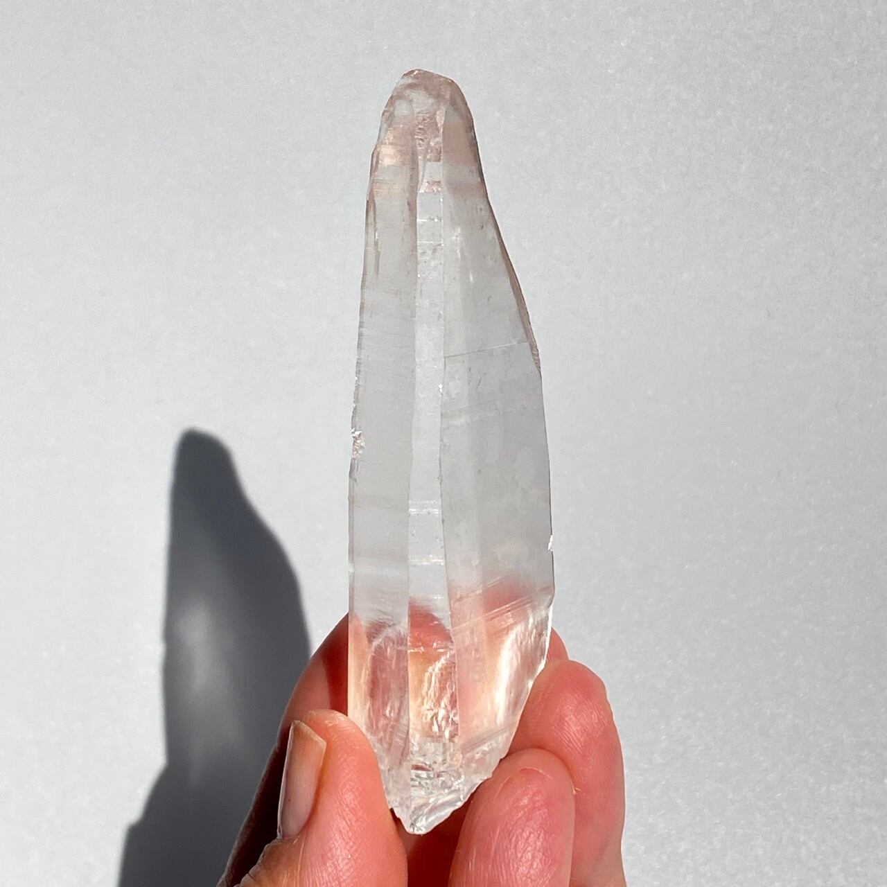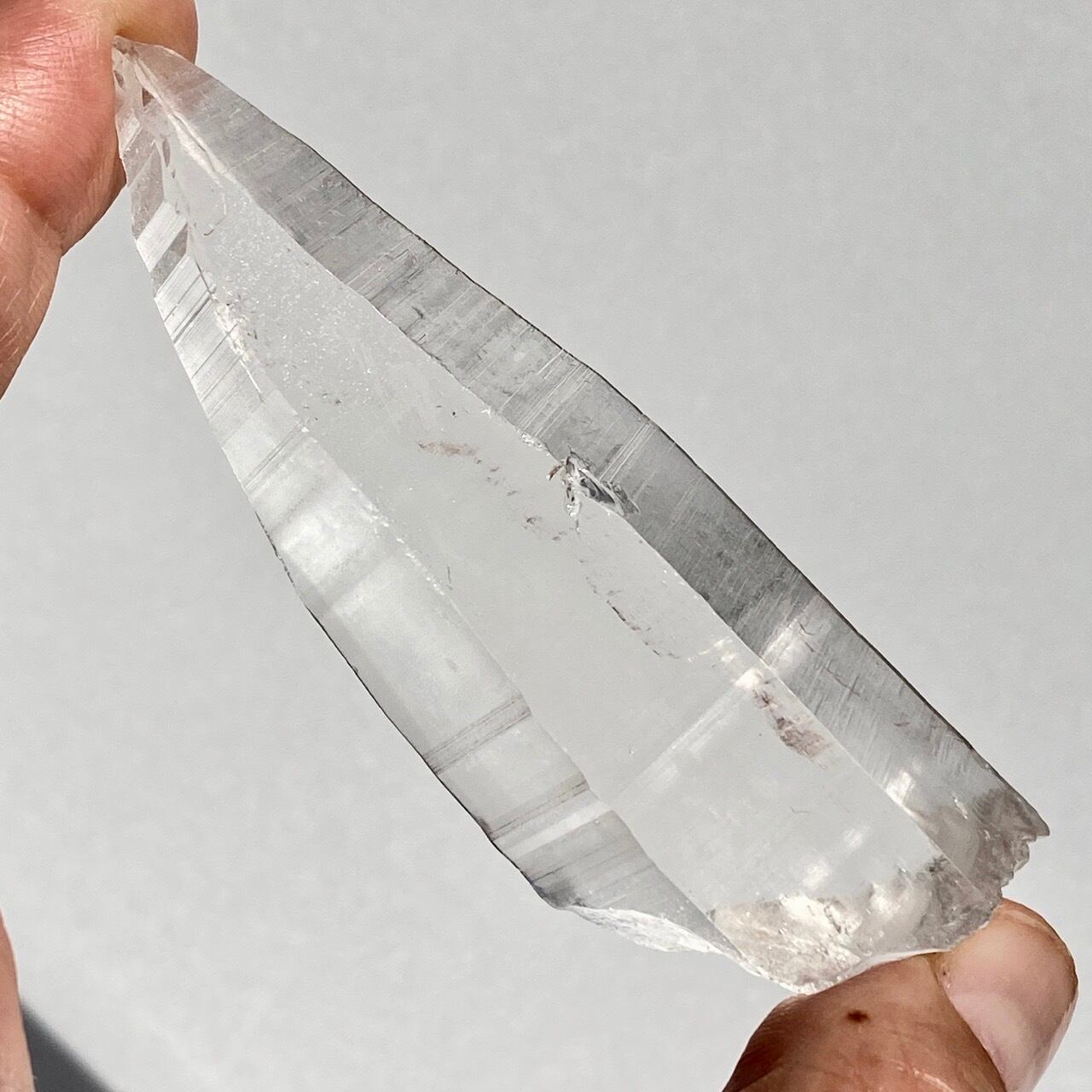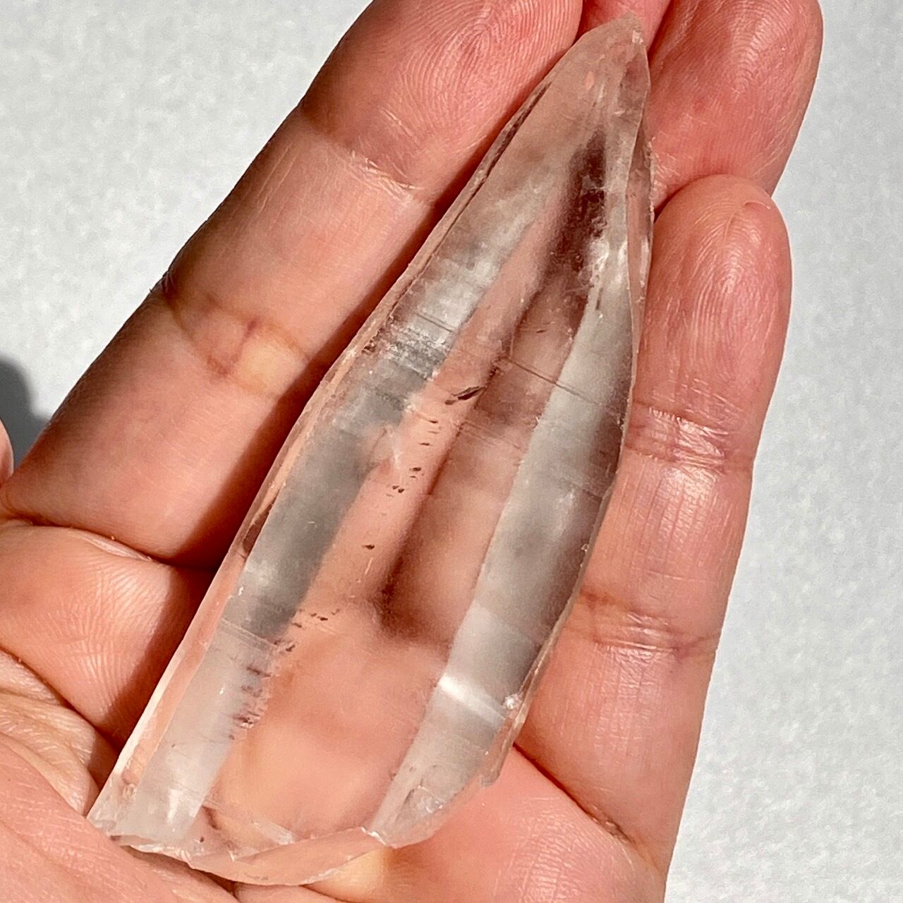 高透明度の子で、平たいワイドな柱面から見た水晶の形状が印象的な子です♡