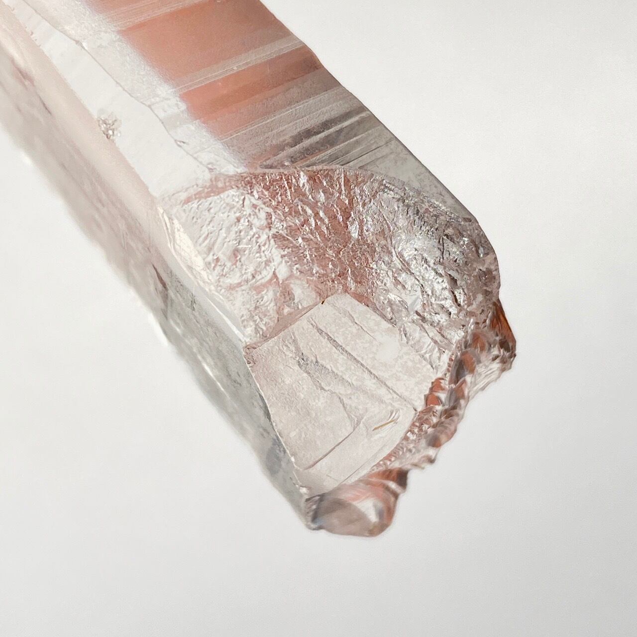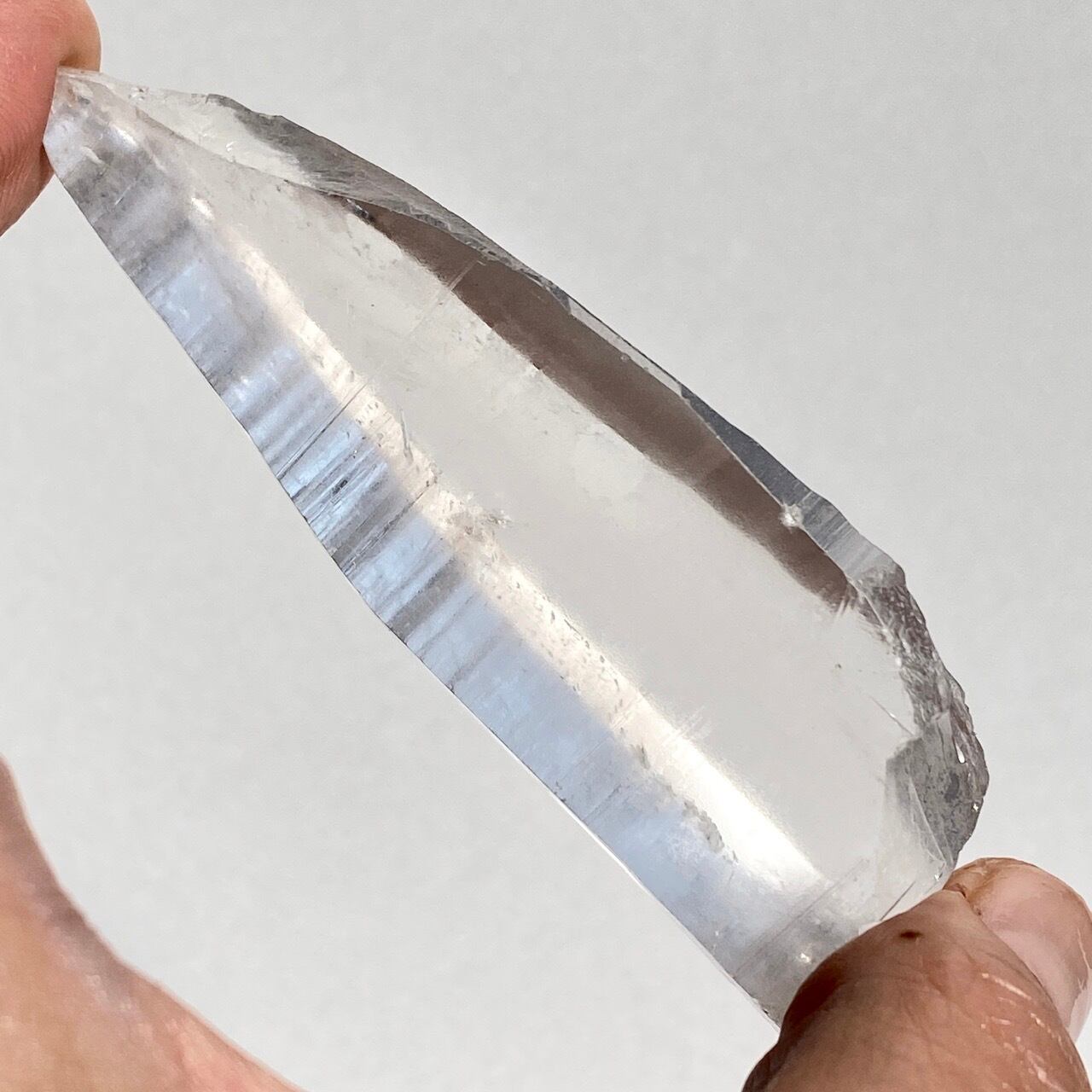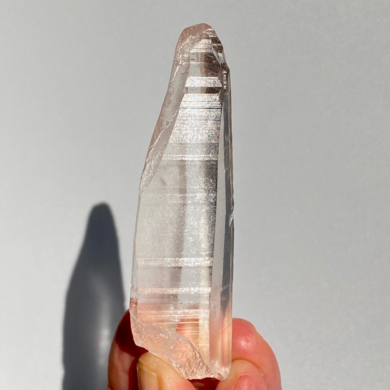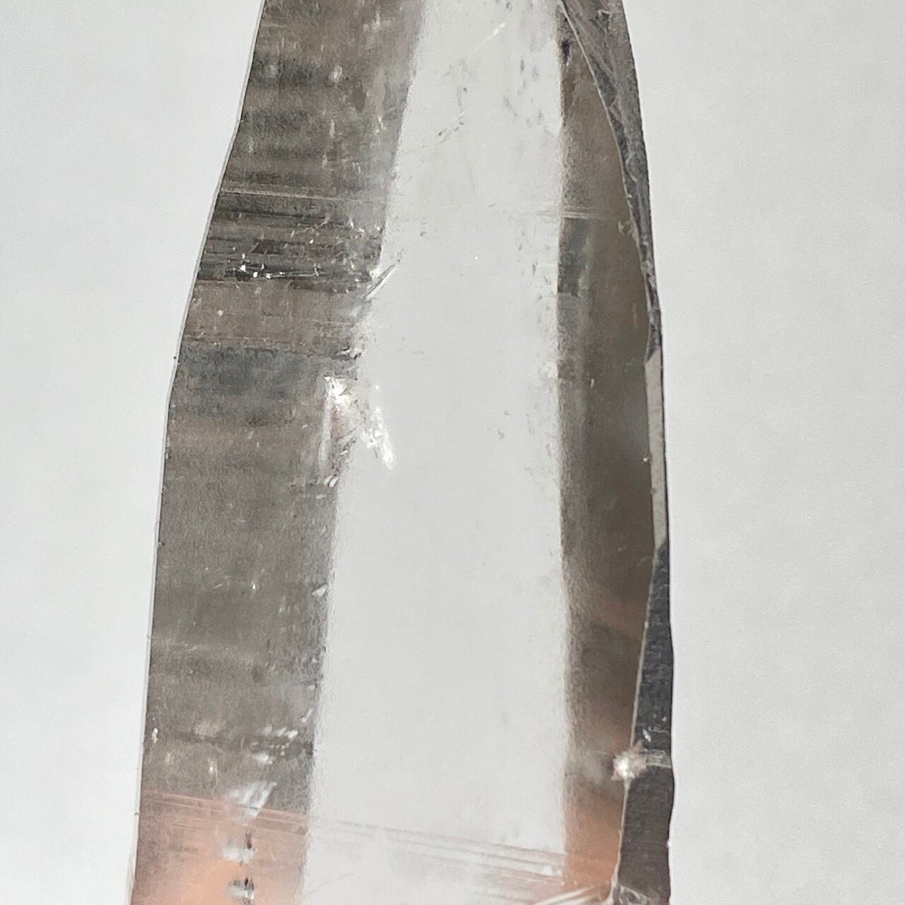 高透明度の子で、平たいワイドな柱面から見た水晶の形状が印象的な子です♡