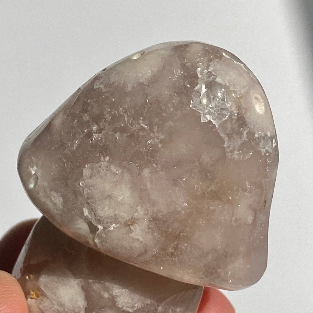 一部クォーツ化したフラワーアゲートのマッシュルームで、同時掲載のピンクレムリアンに合う子として選びました。