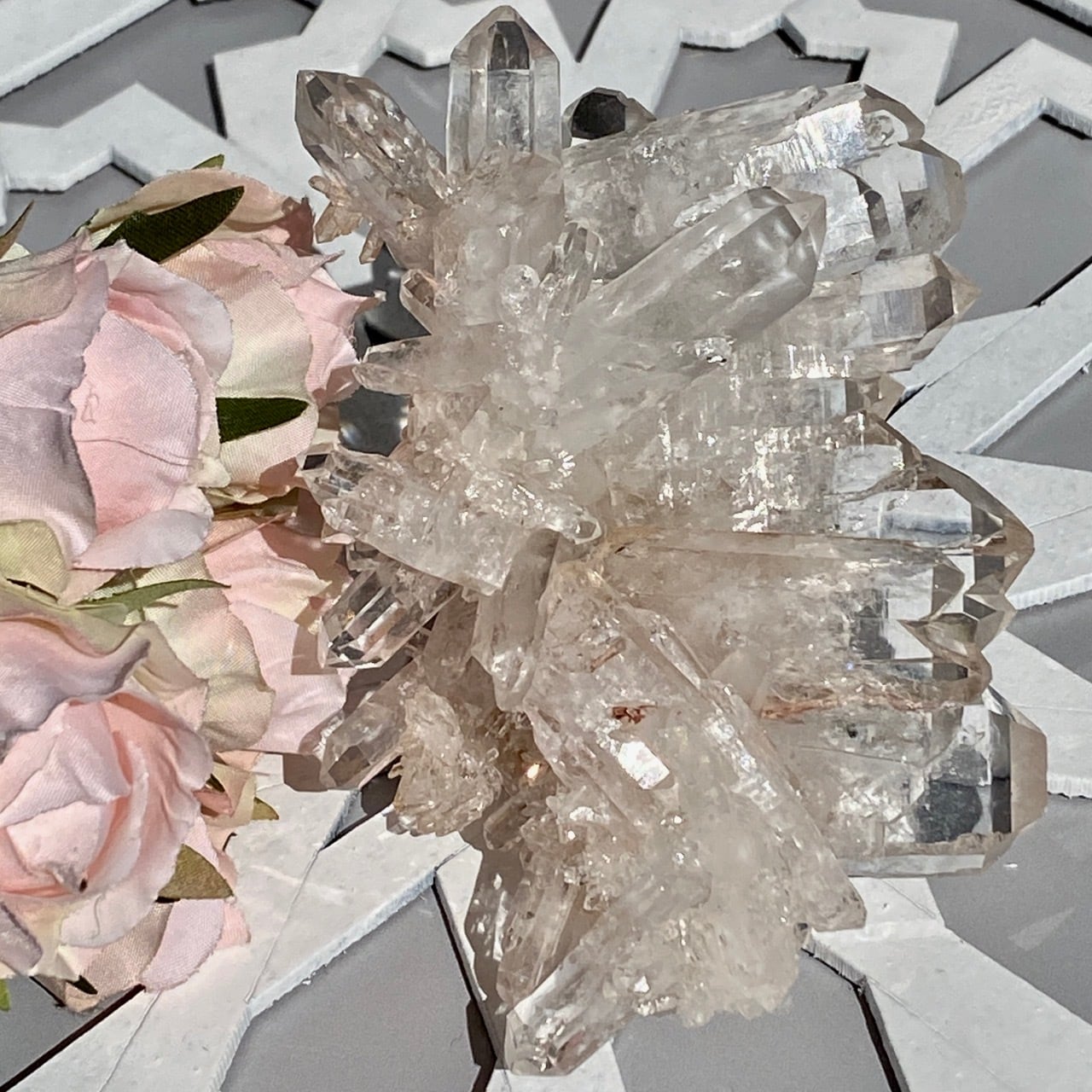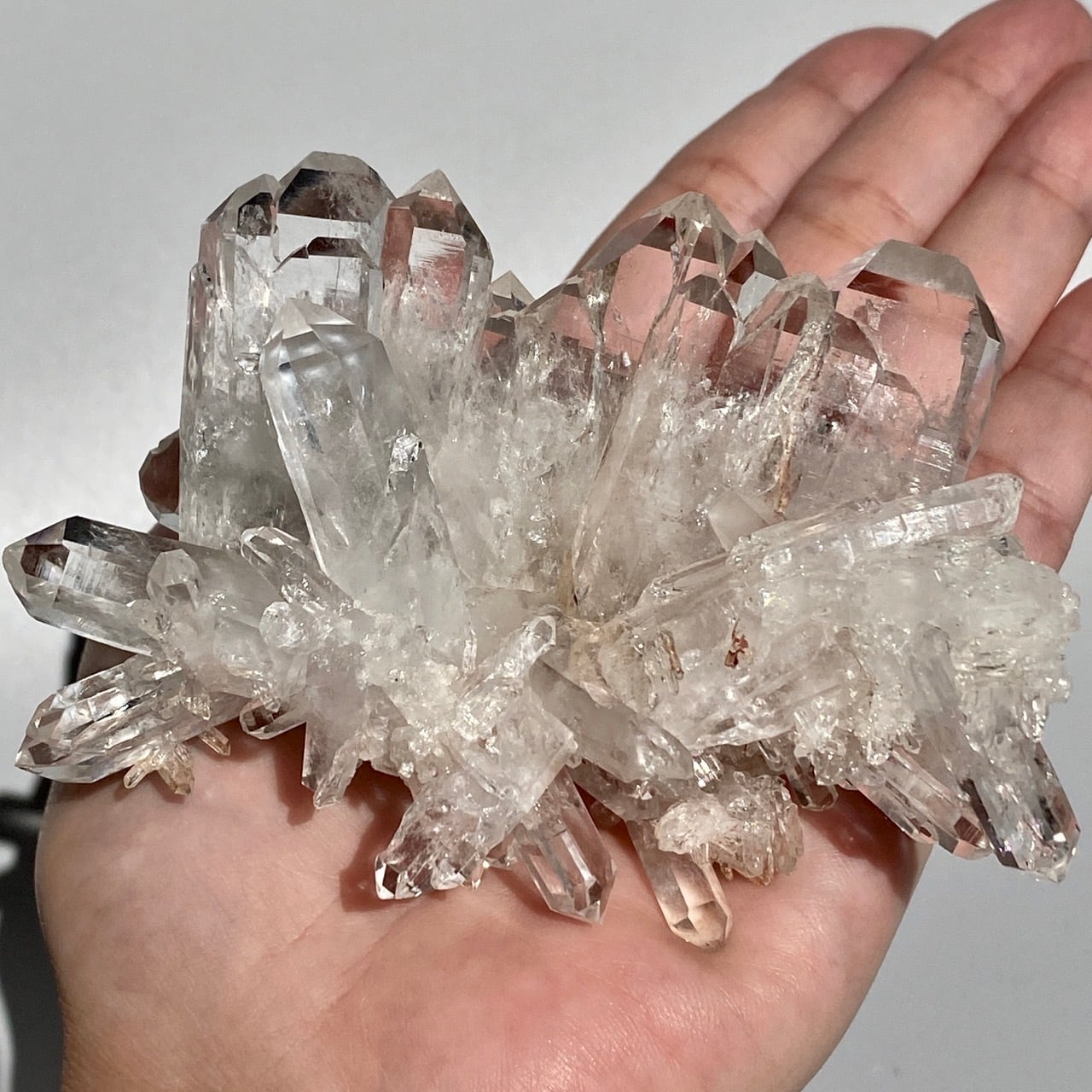 ※他のクラスター同様、ポイントのクラック(一例を最終画像に掲載)や欠損などがございますが、上記で説明させて頂いた通り、非常に厳しい条件で採掘され日本に運ばれてきた貴重な石の味わいとしてご理解頂ける方にご購入をお願いします。