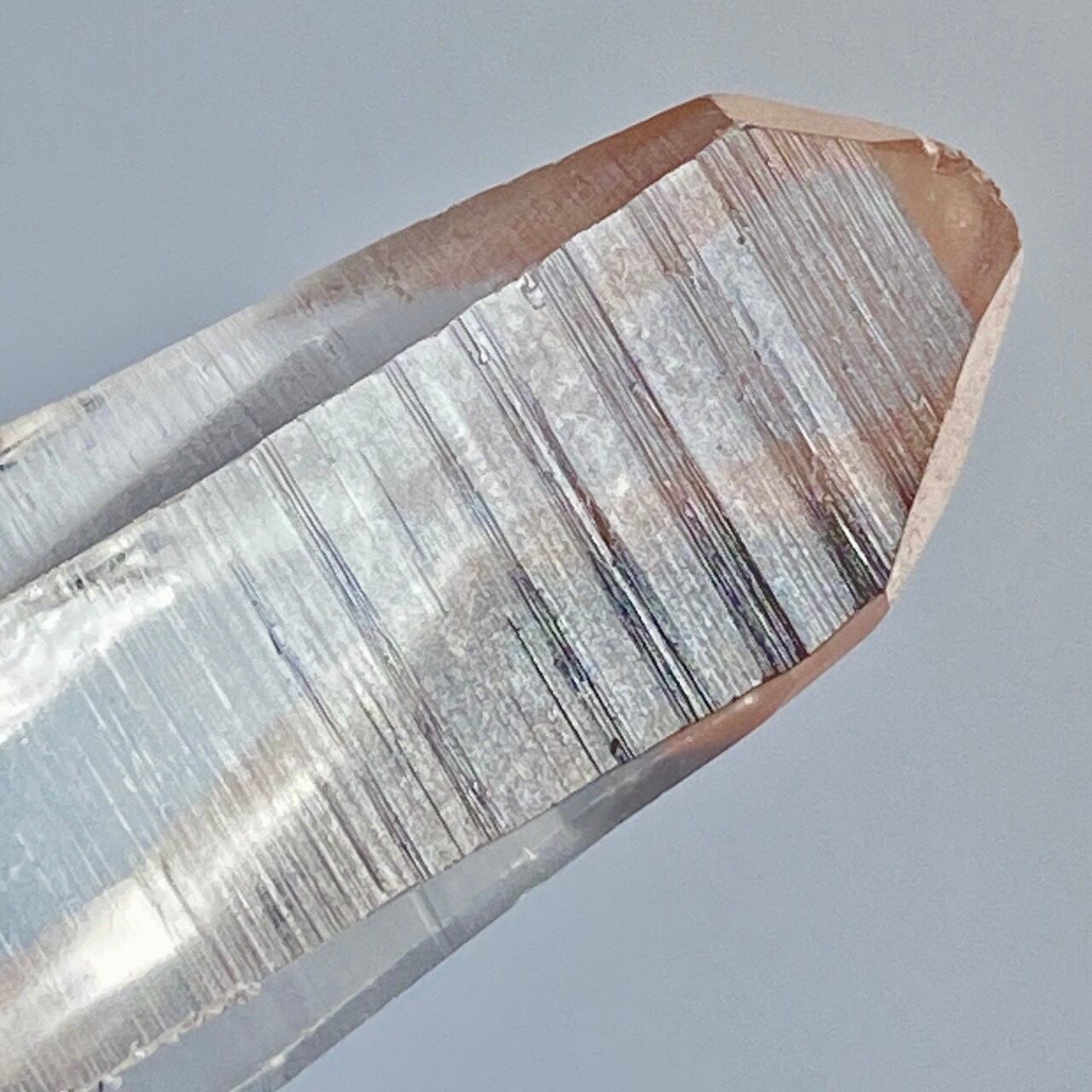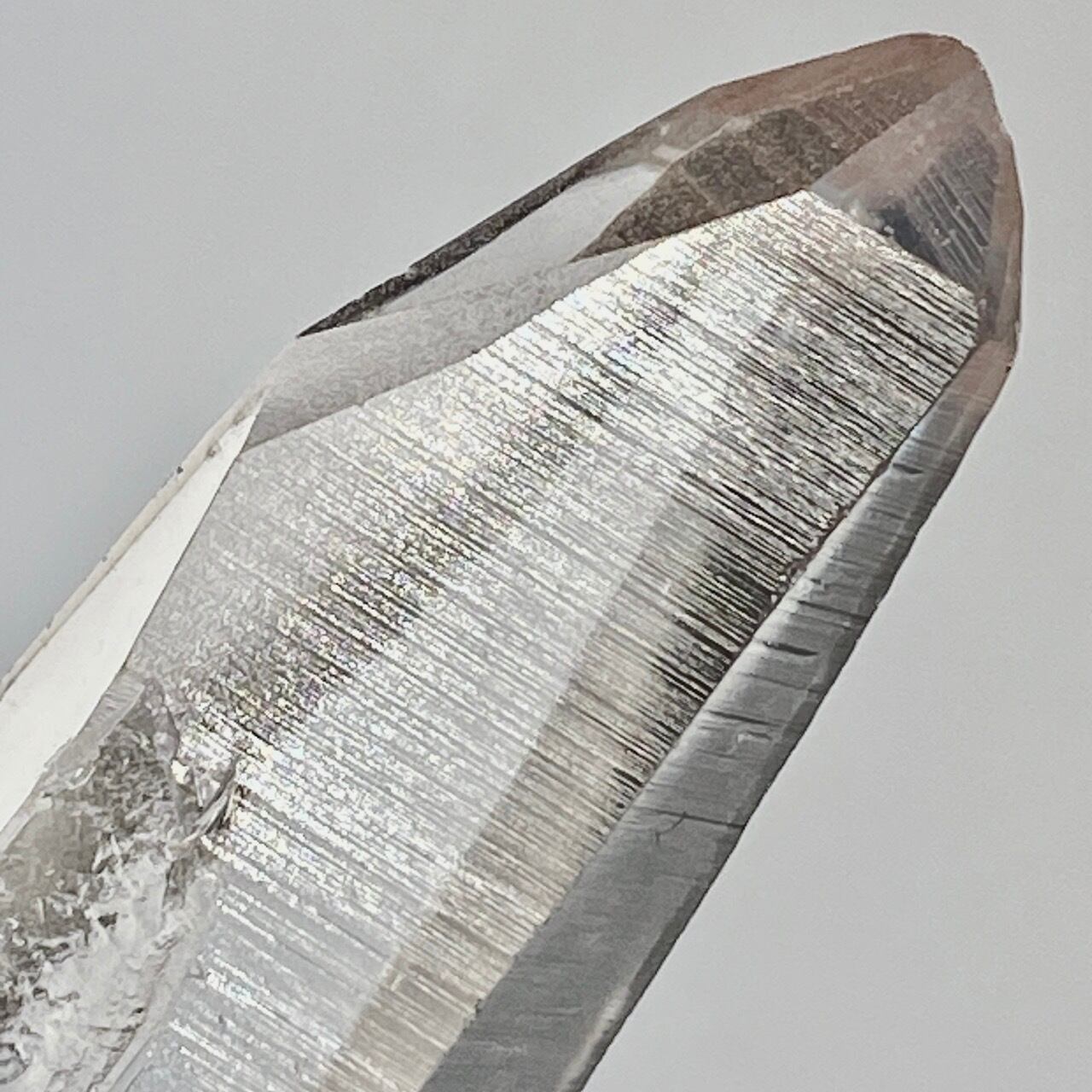 このレムリアンシードクリスタルの最大の特徴は、柱面のレムリアンリッジと言われるバーコードを思わせる条線(横線)です。