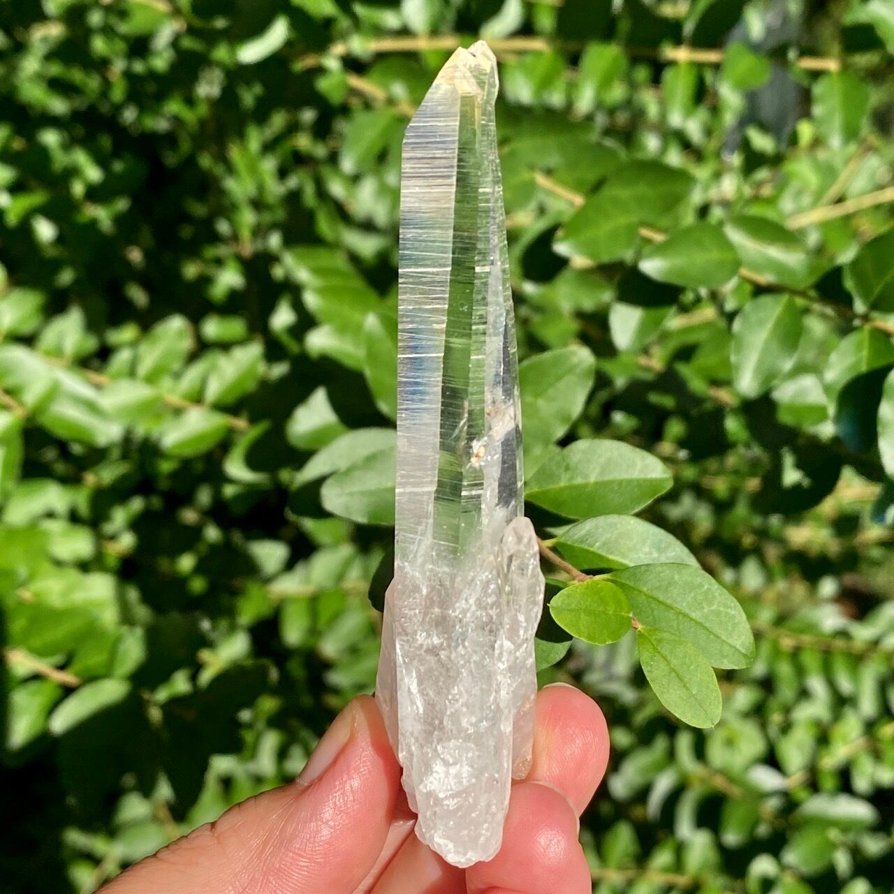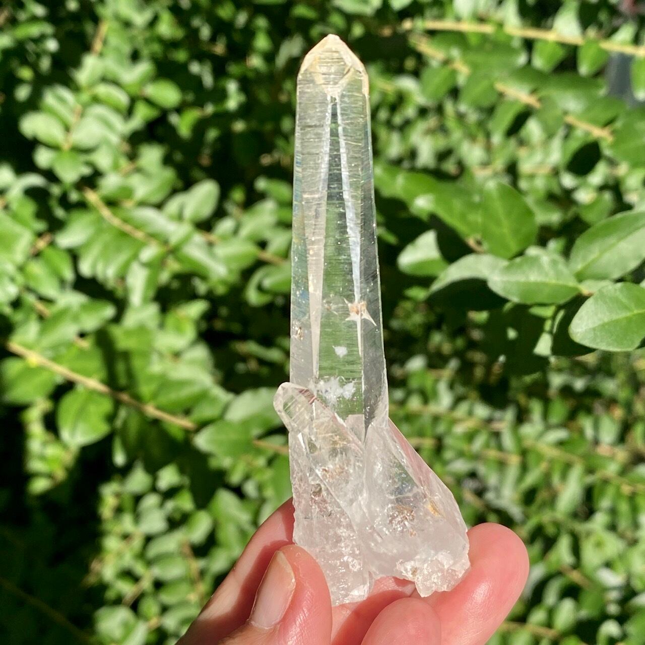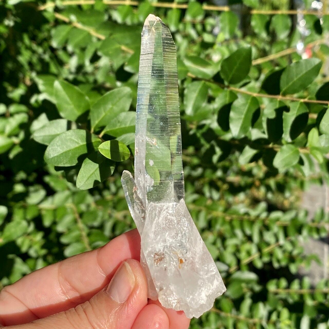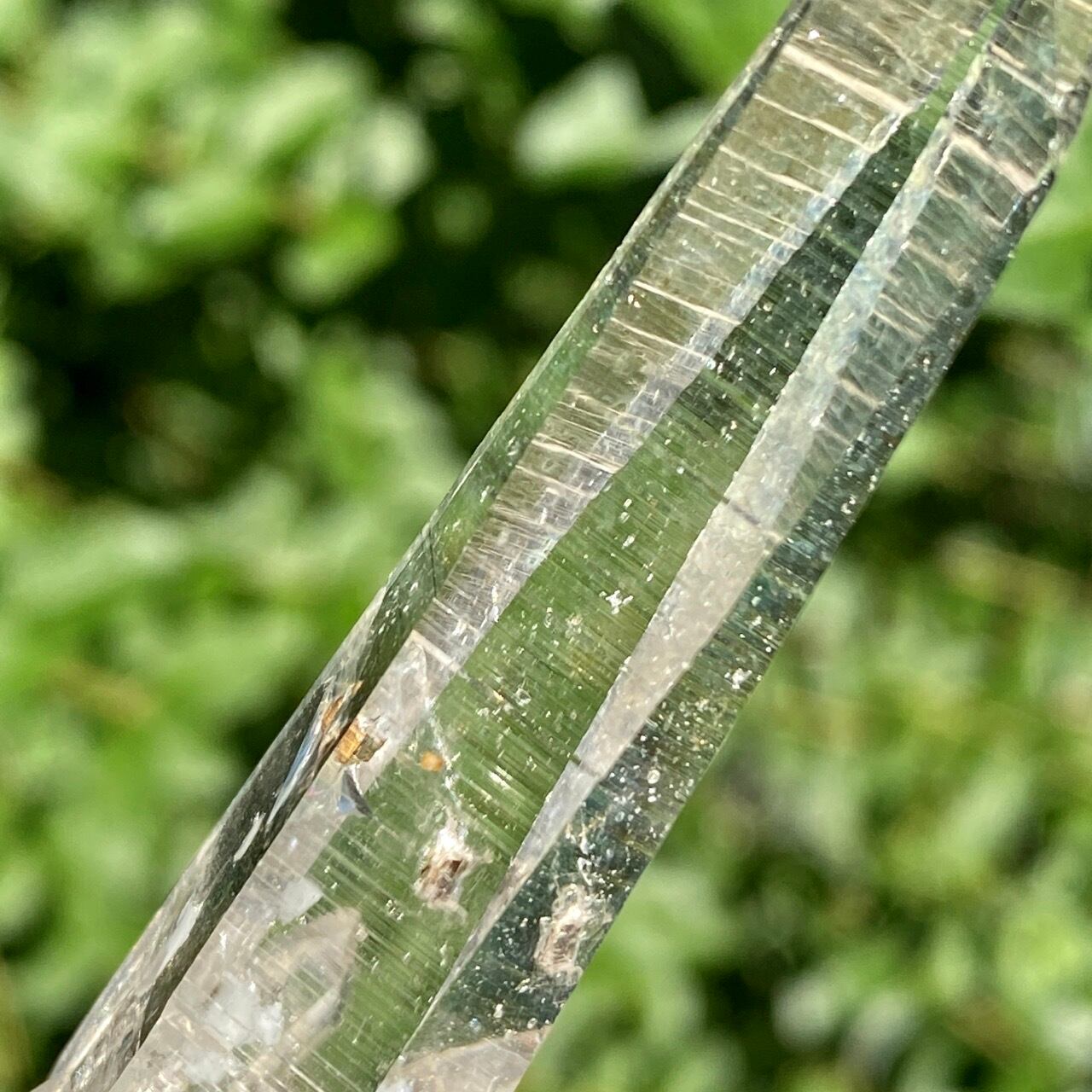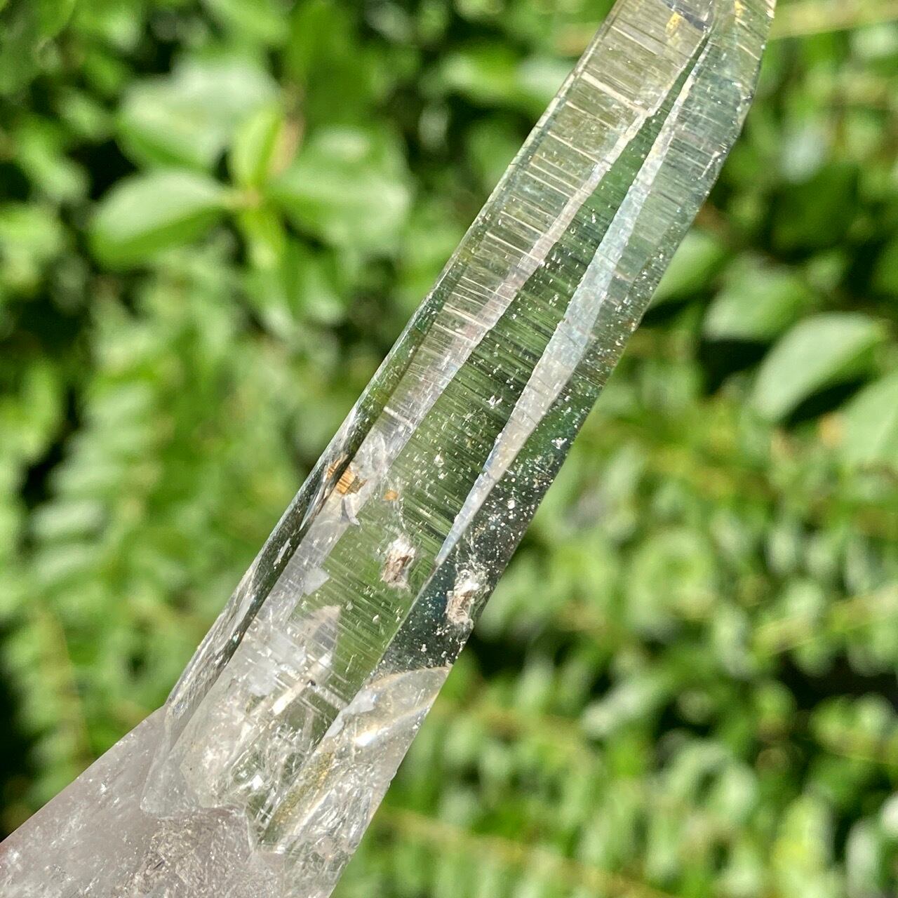細くすらっとしたポイントの中に白っぽい可愛いインクルージョンが見られ(4枚目の画像のような)、くっきりとした柱面のレムリアンリッジがシャープな印象を与えます。