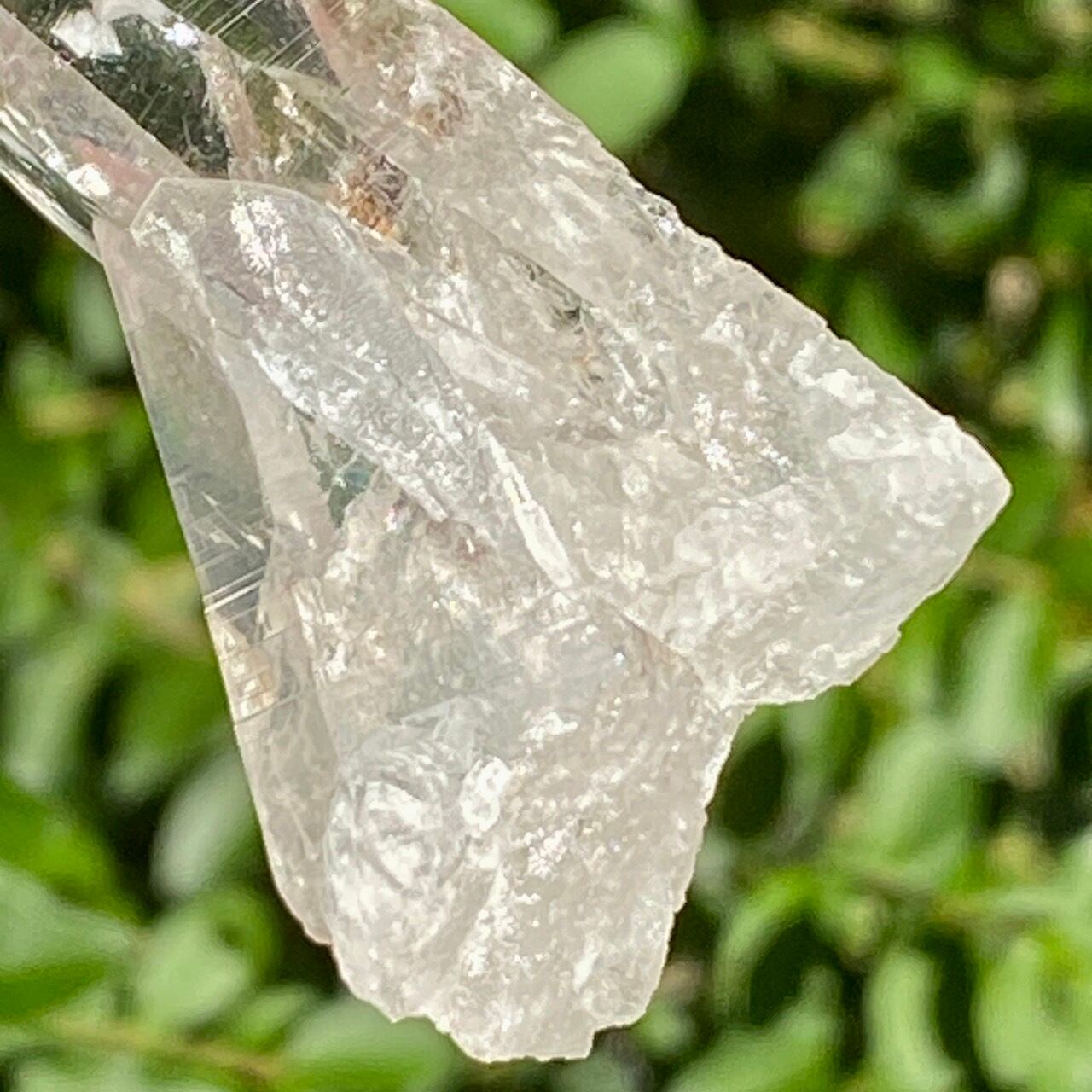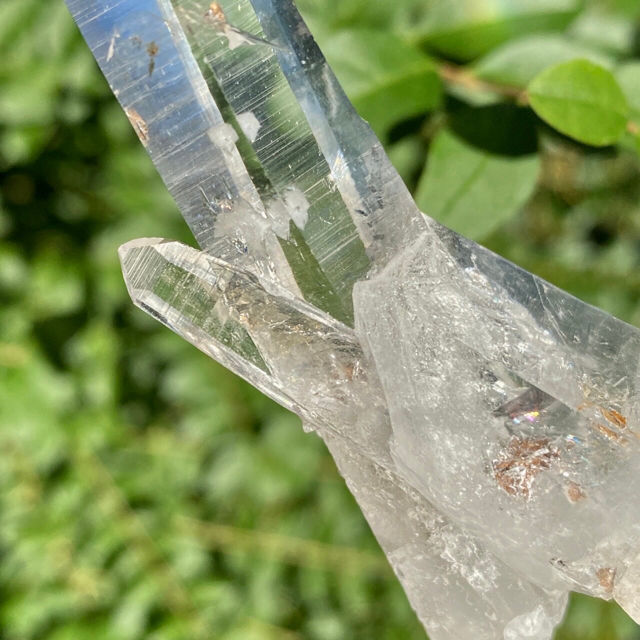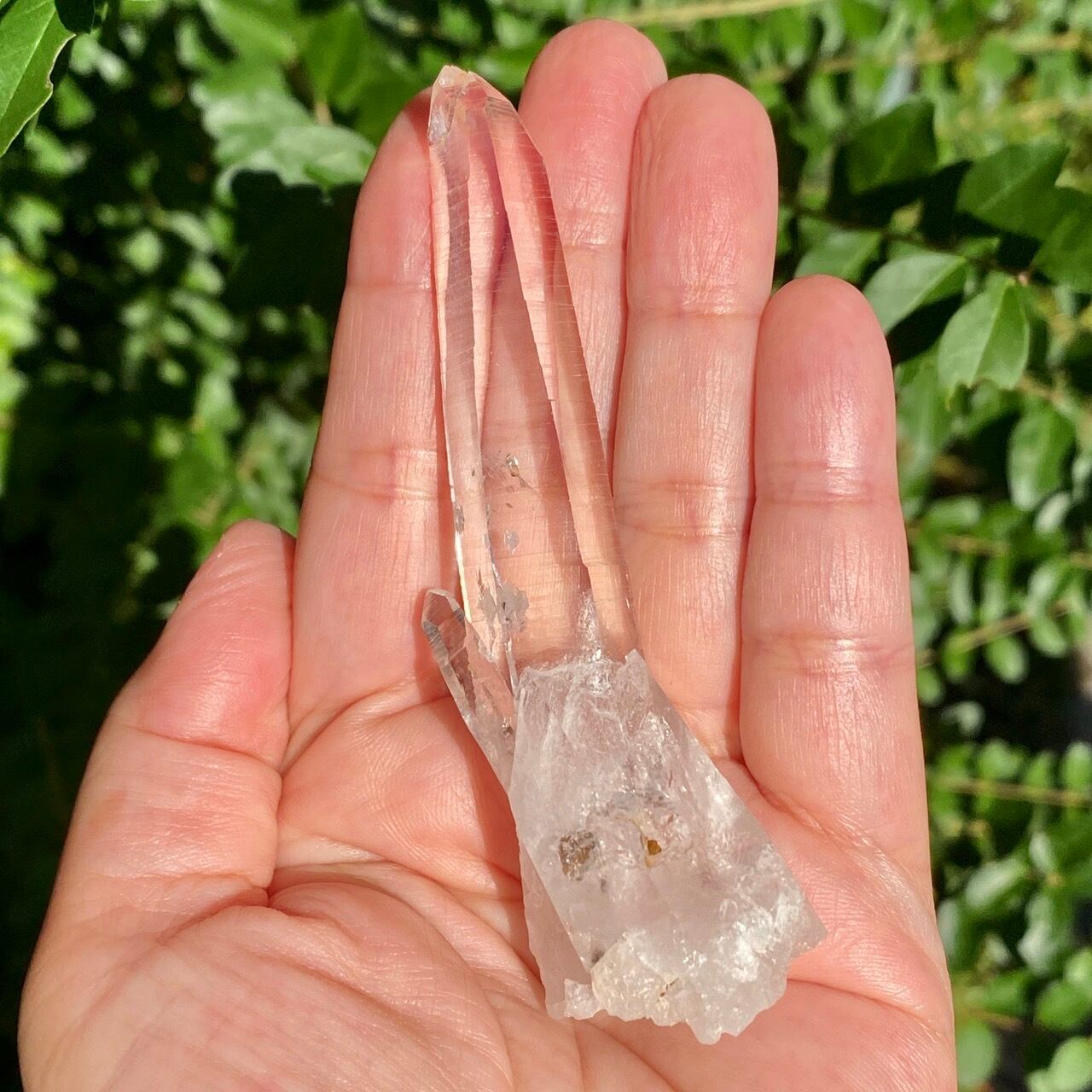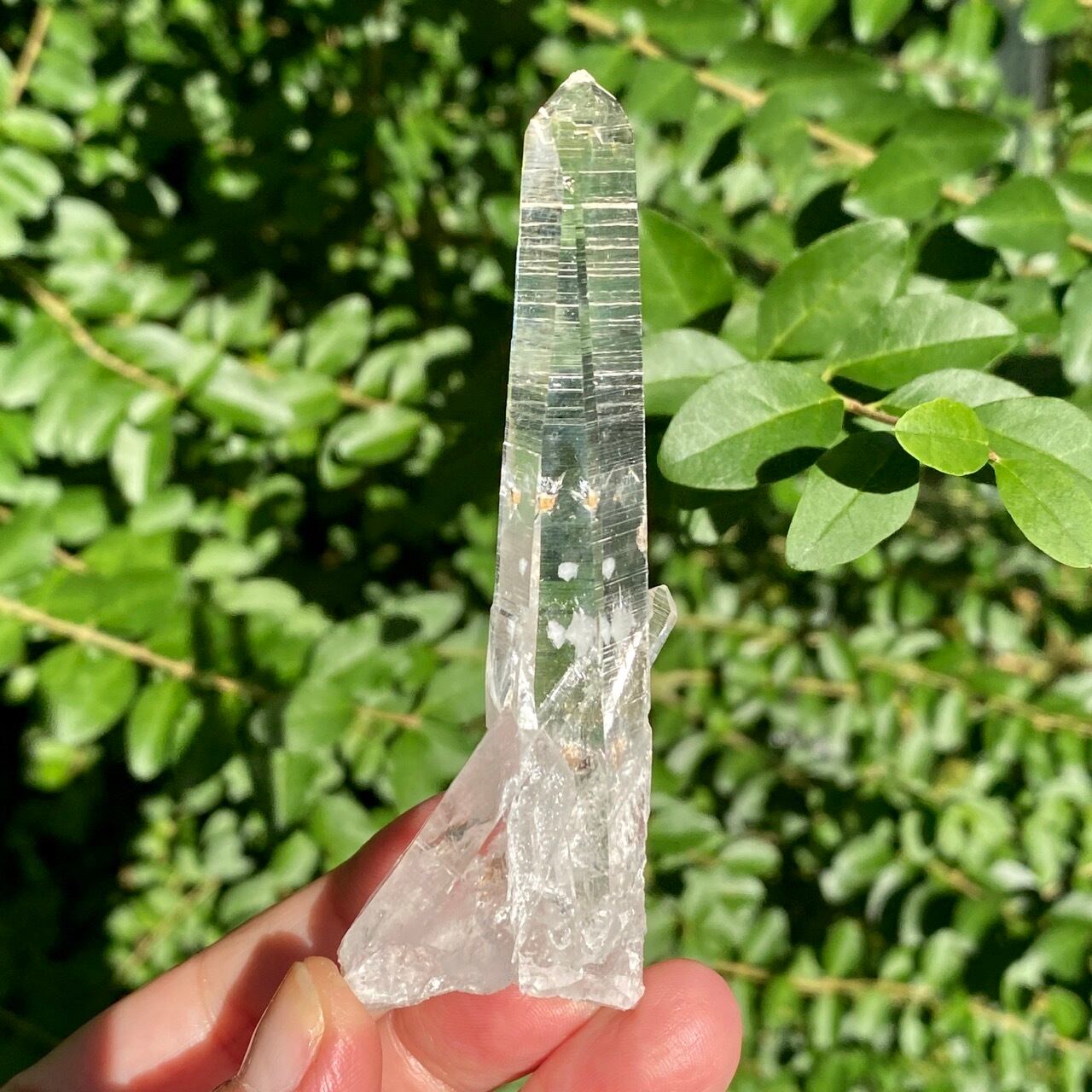細くすらっとしたポイントの中に白っぽい可愛いインクルージョンが見られ(4枚目の画像のような)、くっきりとした柱面のレムリアンリッジがシャープな印象を与えます。