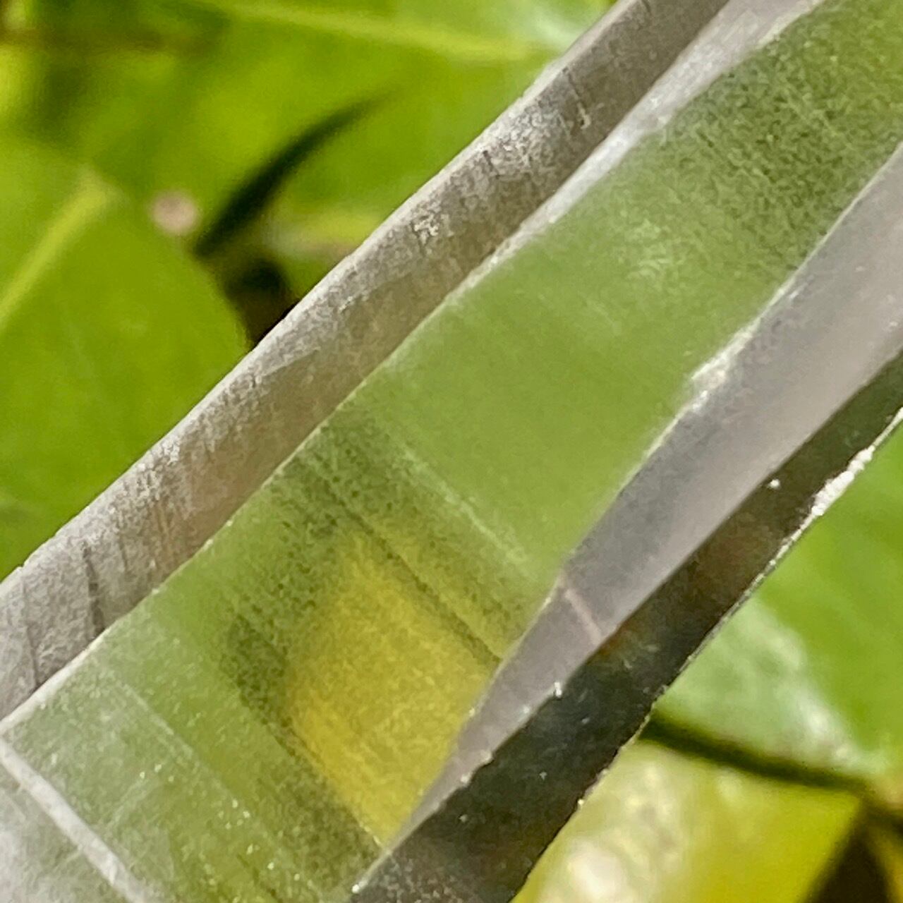 レムリアンシードクリスタルの最大の特徴は、柱面のレムリアンリッジと言われるバーコードを思わせる条線(横線)です。