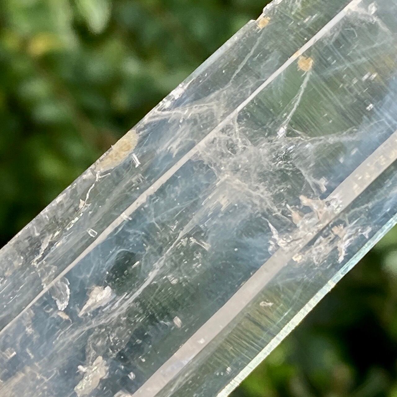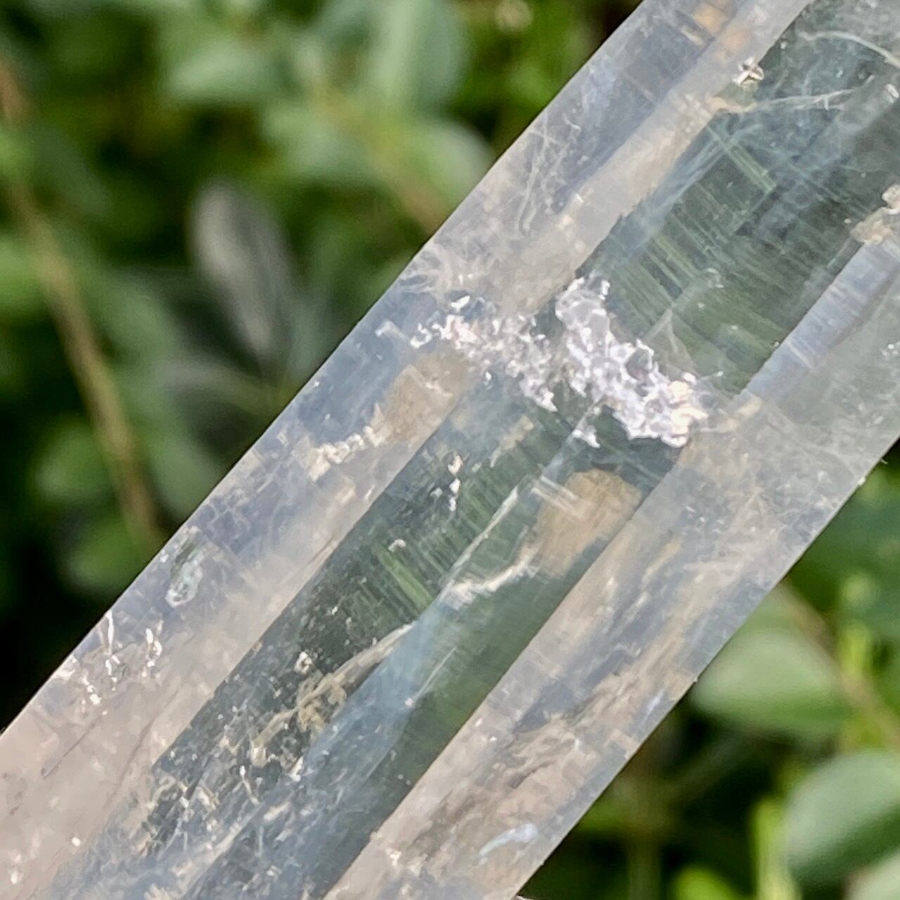 そして、緑色(黒)っぽいインクルージョンはクリノクロア(斜緑泥石)で、緑泥石グループに属する粘土鉱物です。