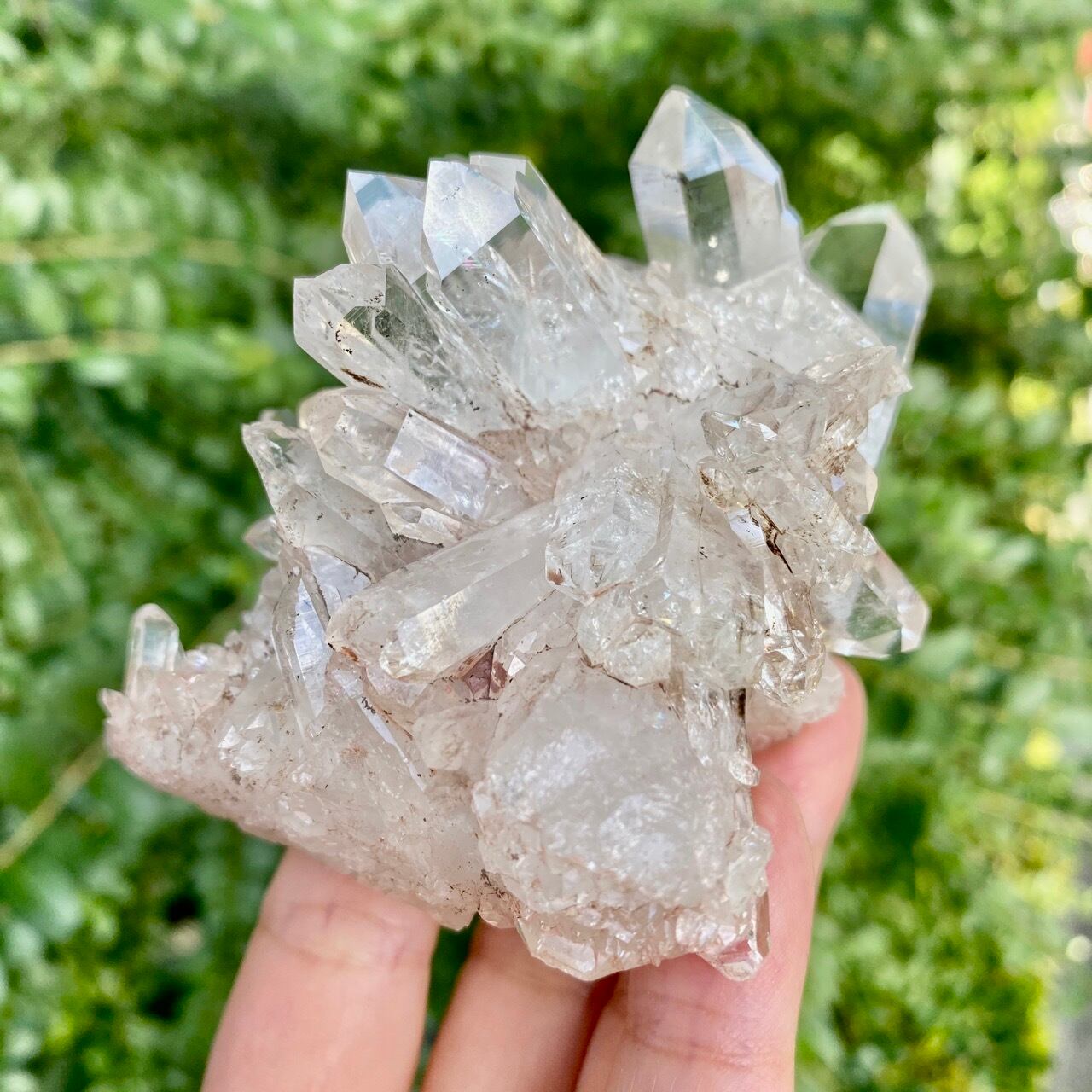 ※地殻変動や採掘時の衝動等によりポイントのヒビや欠損、剥離痕などがございます。上記でも説明させて頂いておりますが、非常に厳しい条件で採掘され日本に運ばれてきた水晶クラスターの味わいとして受け入れて下さる方にご購入をお願い致します。