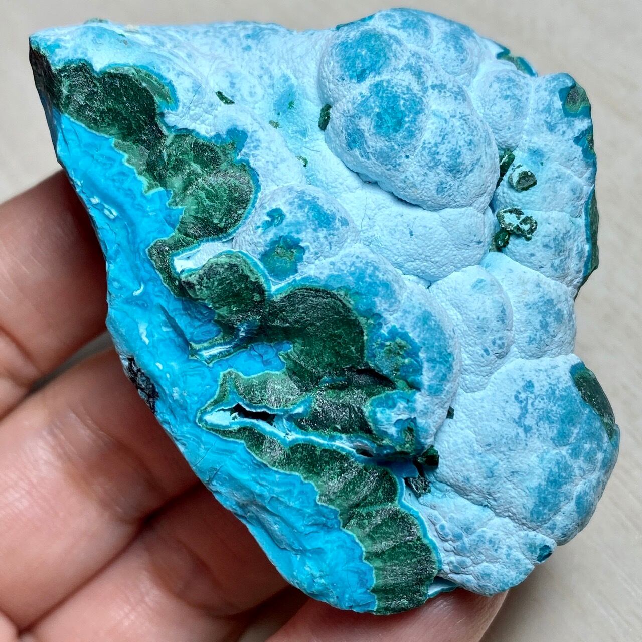 1. コンゴ産クリソコラ x マラカイトのもこもこドゥルージー入りスペシメンRW6309