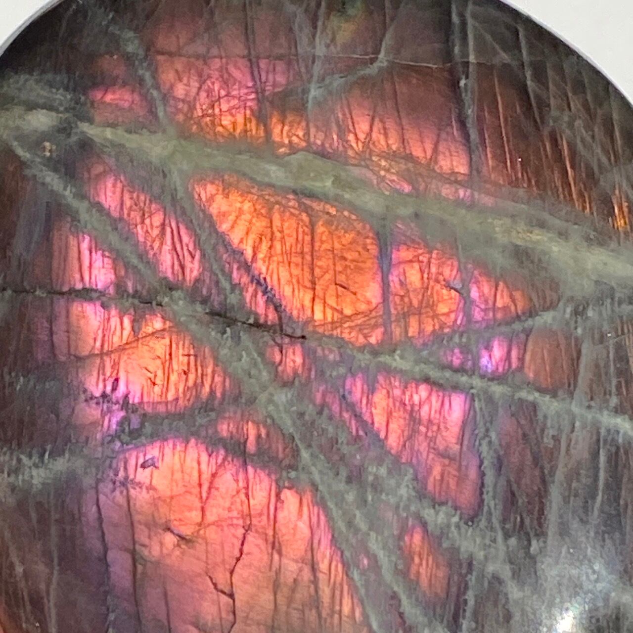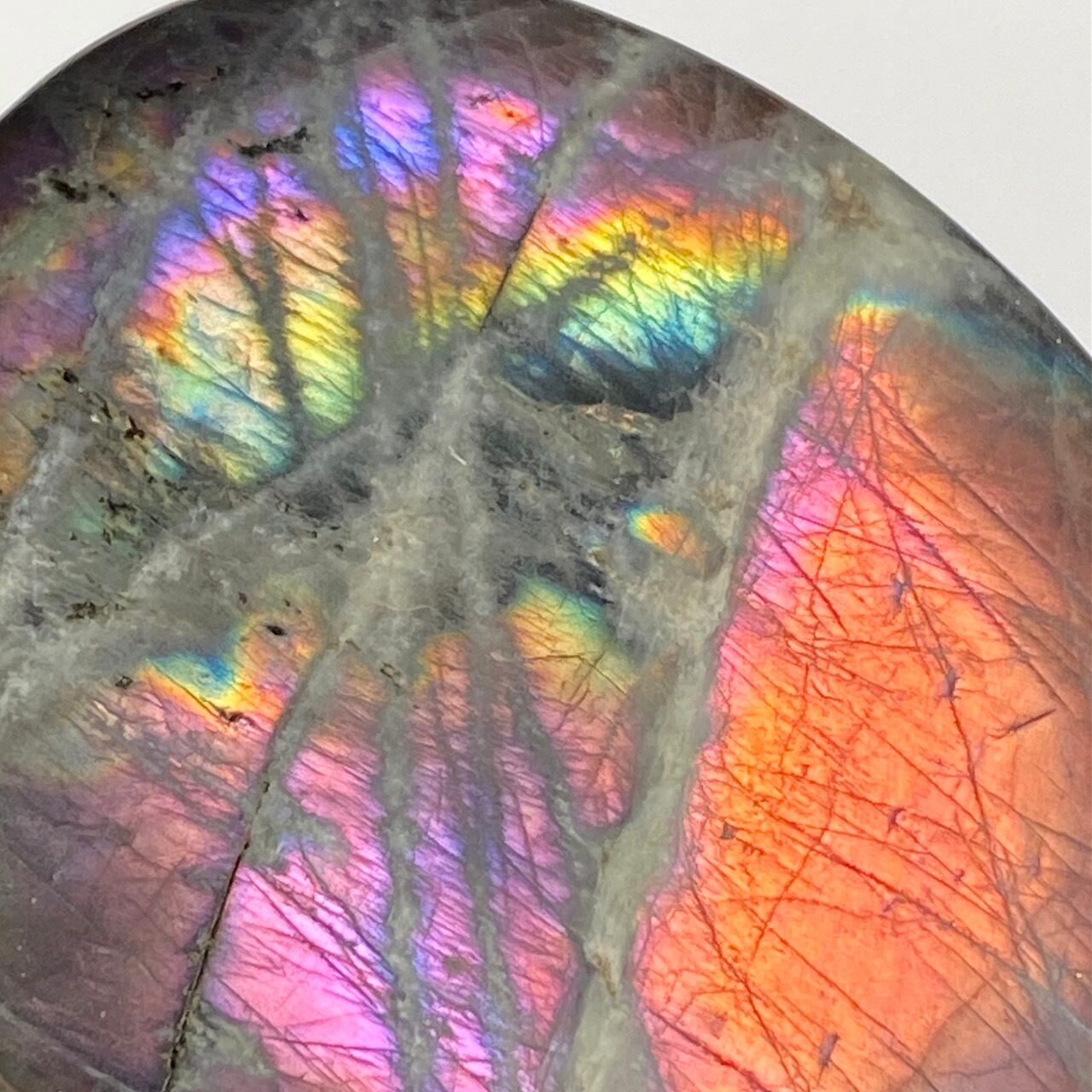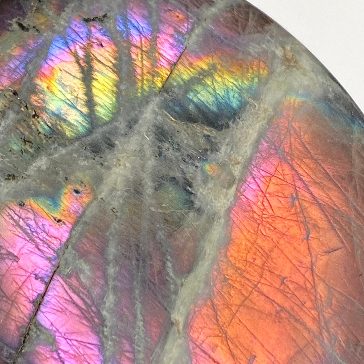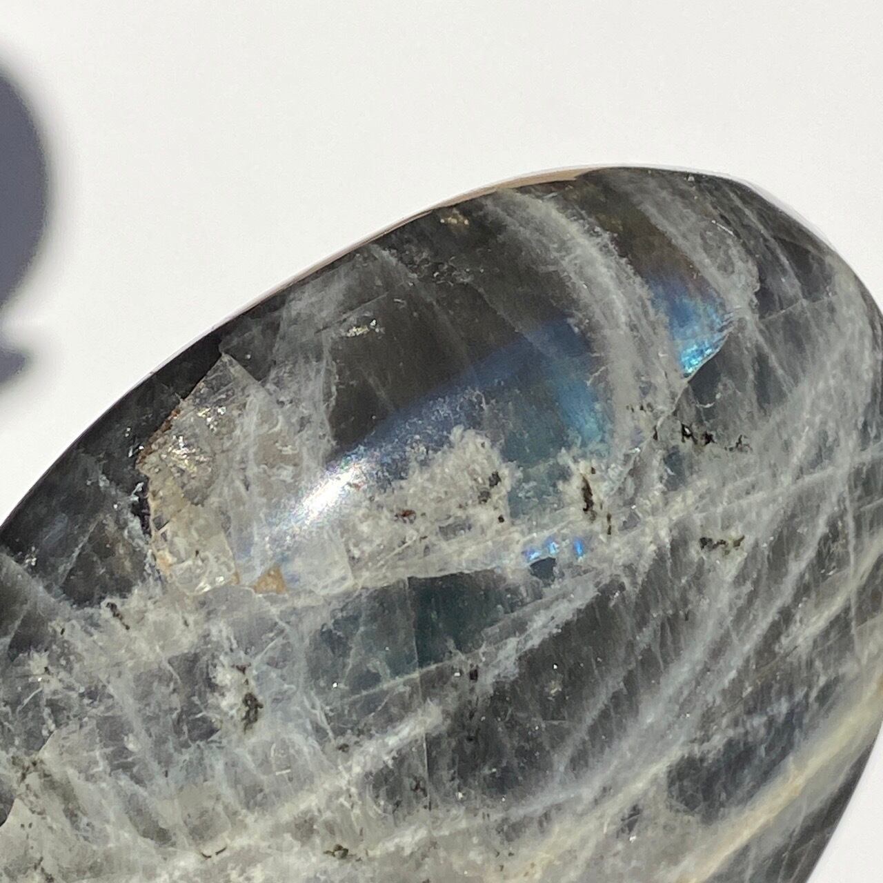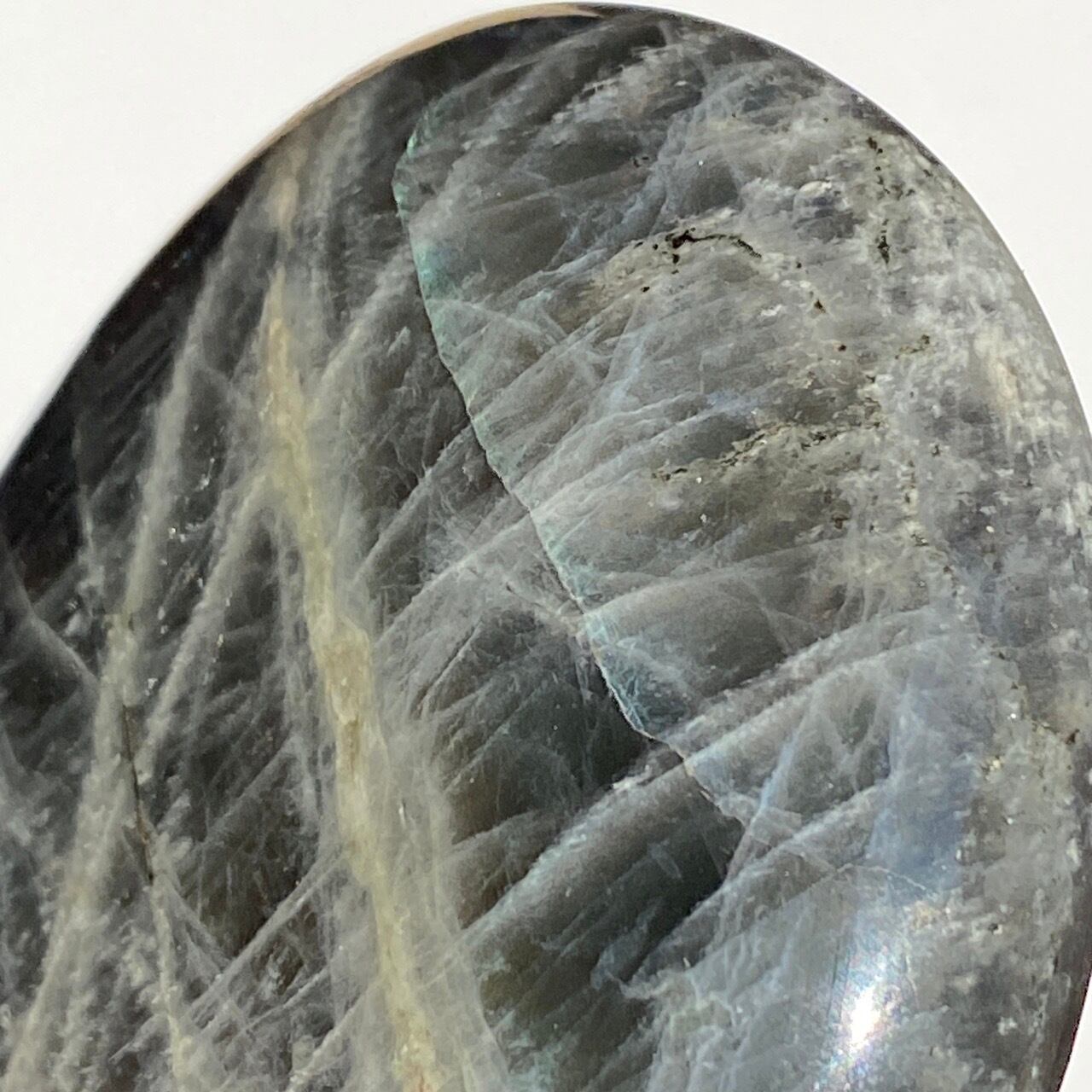 ※ラブラドライトの特性ですが、表面のキズに加え、クラックが複数ございます(最後の2枚の画像に主なものを掲載)。天然の石の風合いとして理解して下さる方にご購入をお願いします。