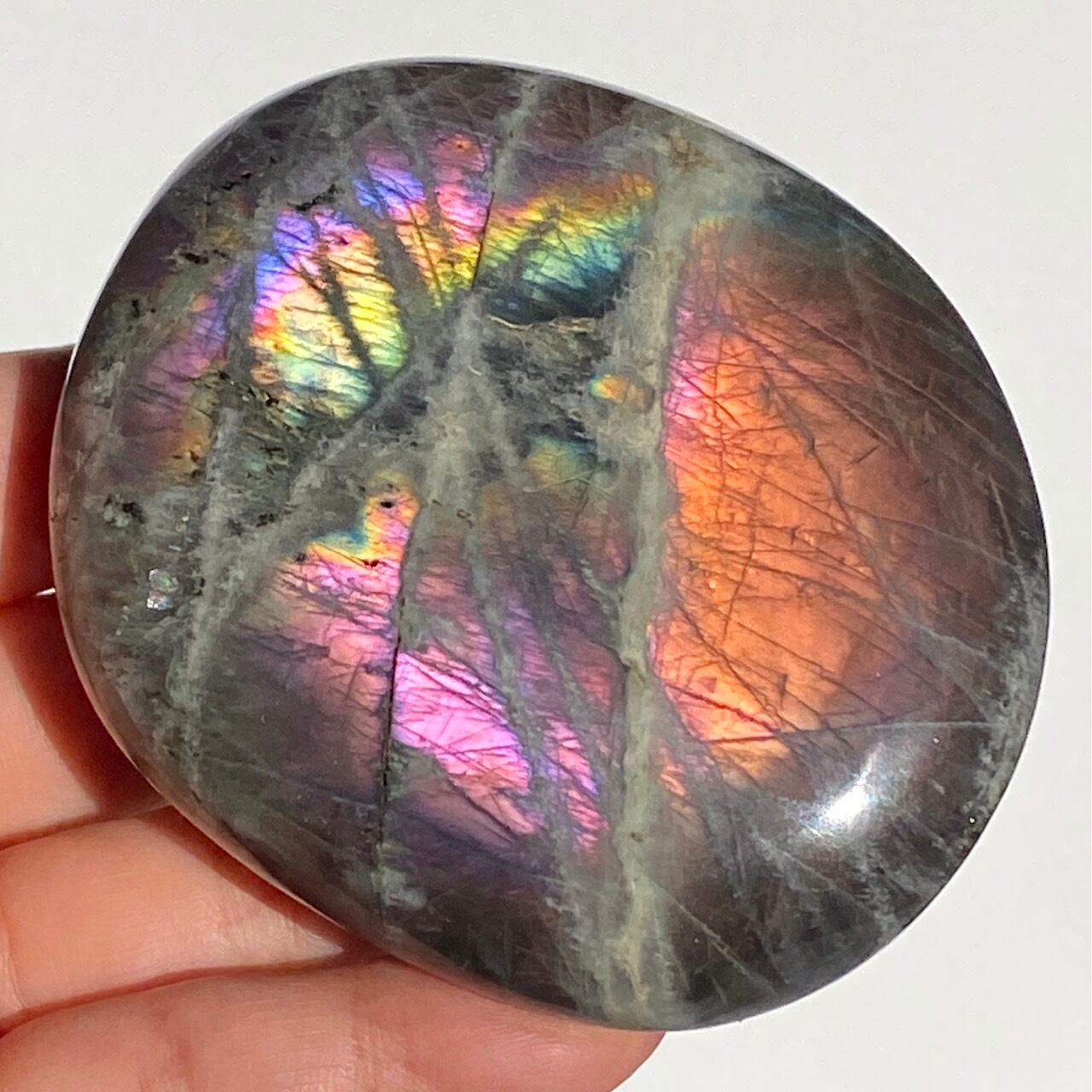 【BIGサイズ!両面共フルボディフラッシュ入♡】ラブラドライトのパームストーン Labradorite Big Palm Stone AC3790
