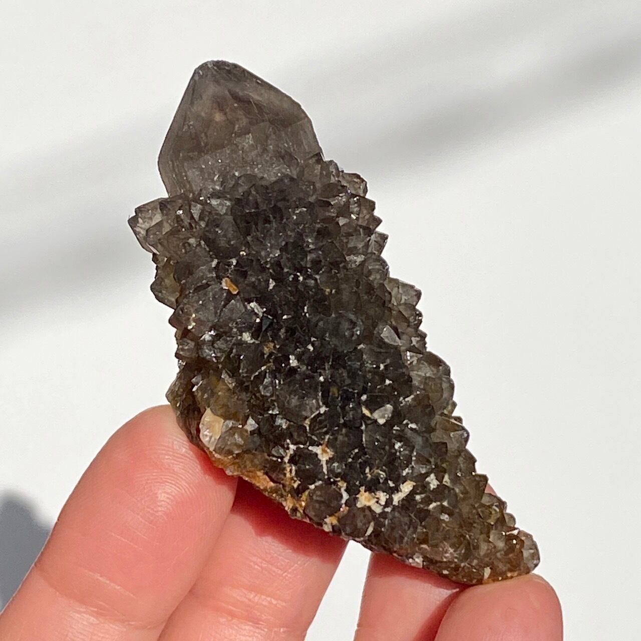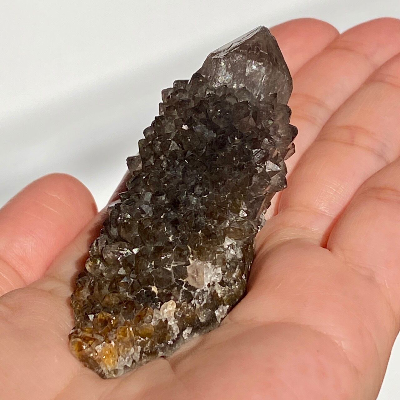 南アフリカ産のものには、ポイントにザラメ状の小さな結晶が密集しいて、それがきらきらと煌めきます。
