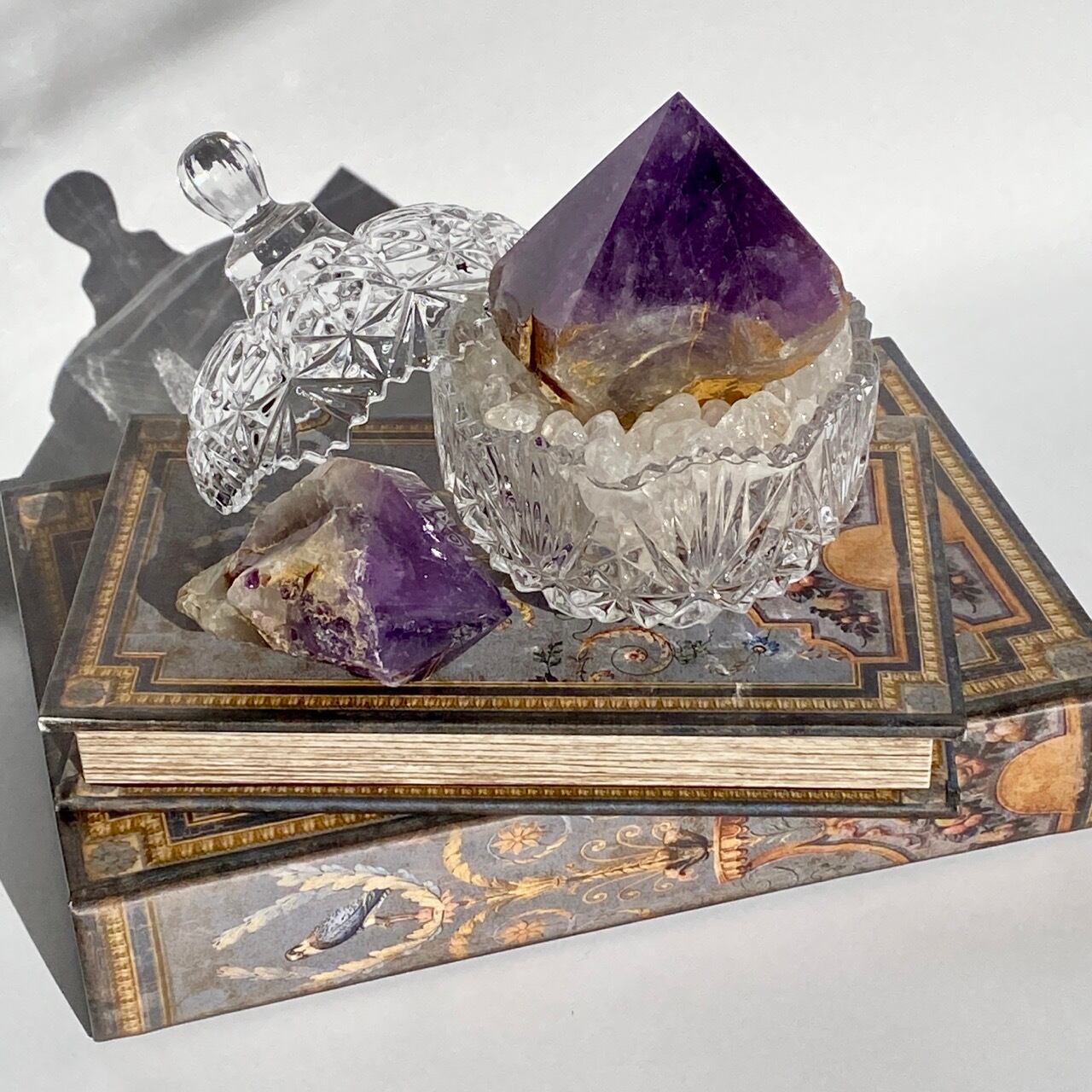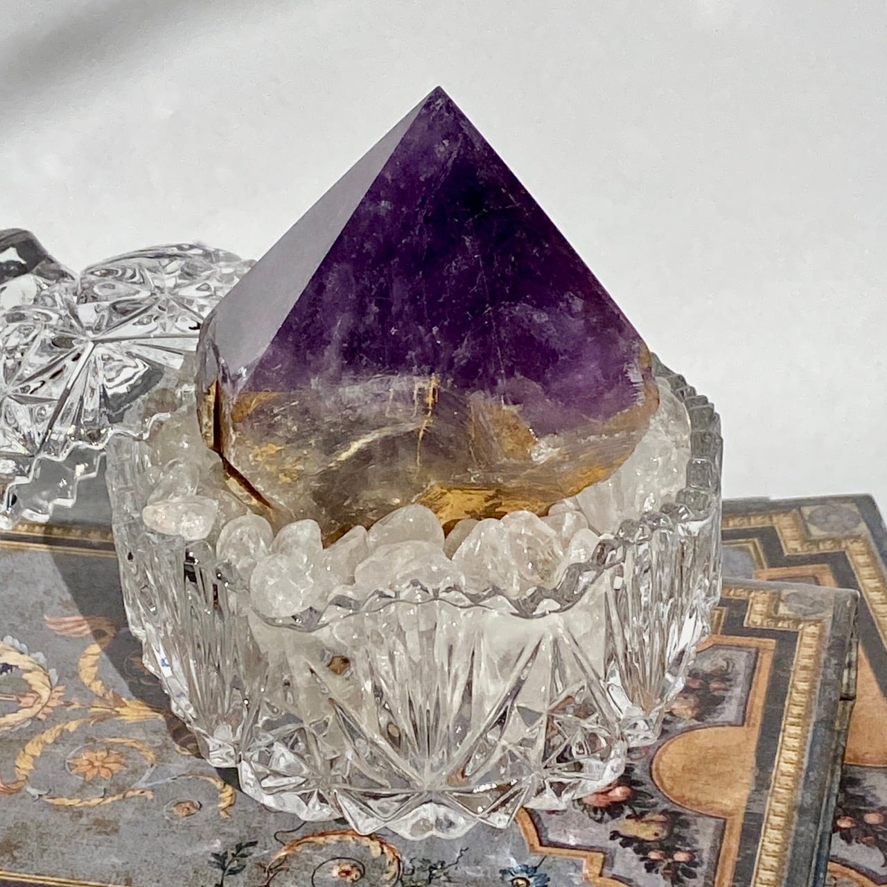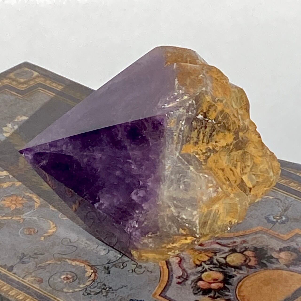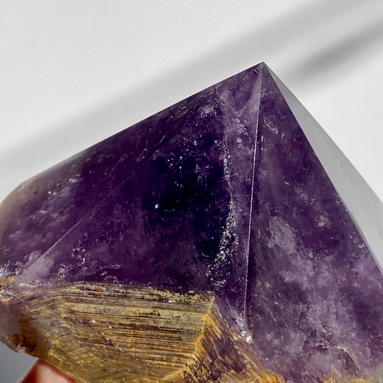 ラフ(原石)としてお迎えしましたが、ファセットの部分が超スムースなので、この部分のみ研磨されている可能性がございます。アメジストの採掘の際に、通常クラスターとは別に単体で採れるものもありますのでそのような子達のうちの1つなのかもしれません。
