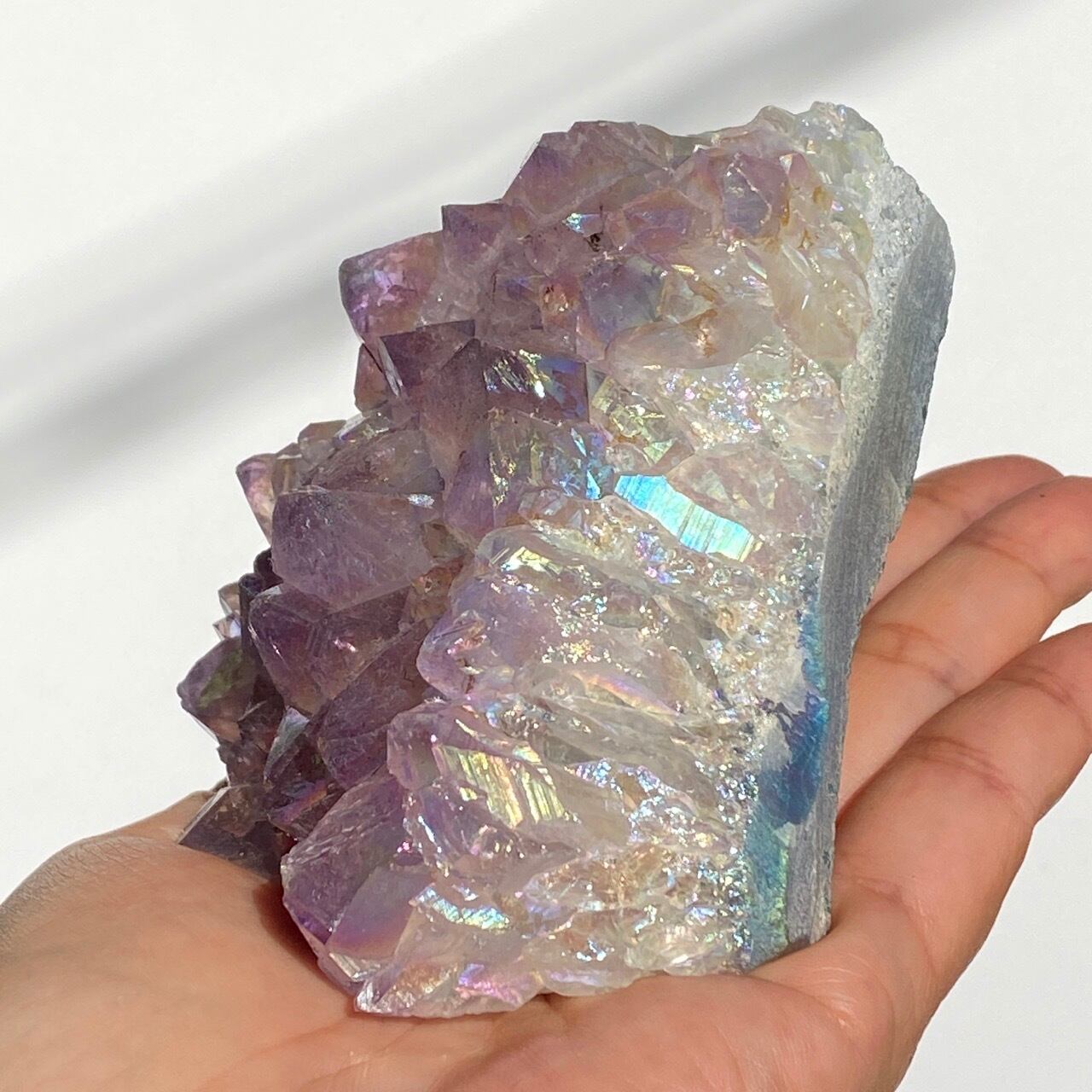 エンジェルオーラアメジストは、海外では、クラウンチャクラとサードアイに働きかけ、直感と高次の意識を目覚めさせながら、同時にリラックスしたエネルギーを与え、内なる平和を保つストレス緩和剤と言われています。