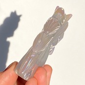 気に入っていたフローライトの有名ショップがオーラ加工をやめてしまう前に入手した子です。カービングも綺麗ですが、オーラもぎらぎらとしておらず、艶感のある感じで、ユニコーンとラベンダーフローライト、そしてオーラのコンビネーションがマッチしすぎていて神がかっています。ユニコーンと相性抜群のオーラ加工が施されたアメジストのカットベースやミニクラスターセットなども同時発売されますので、是非ご確認くださいませ。