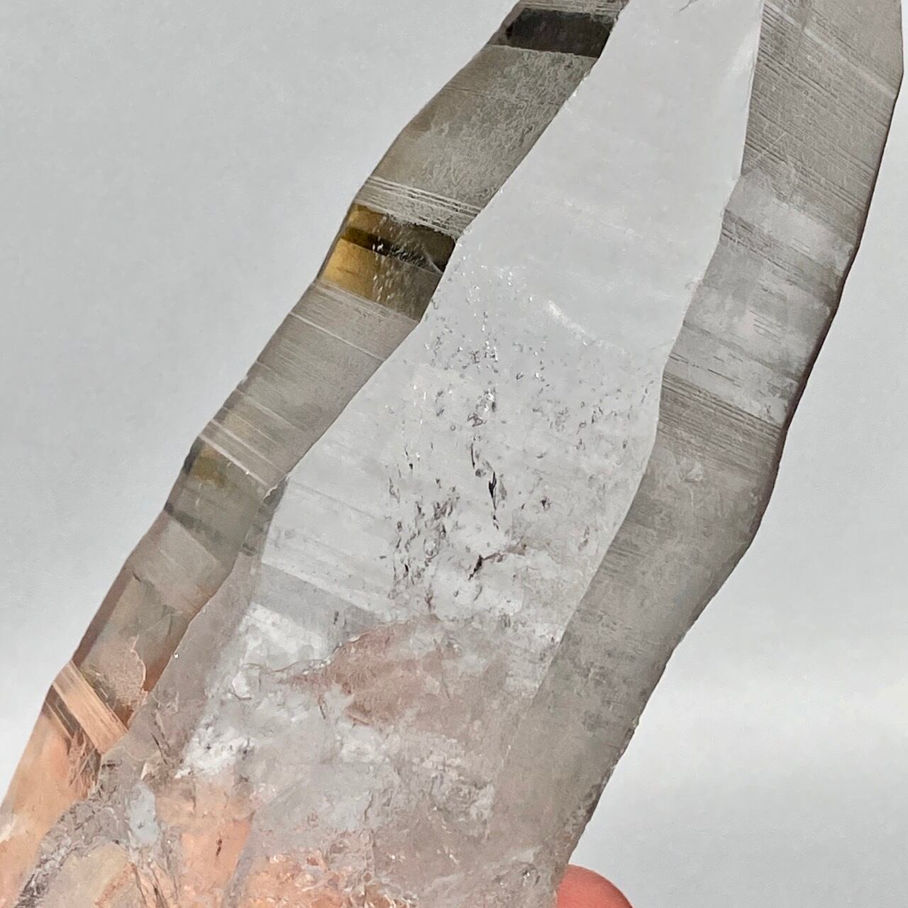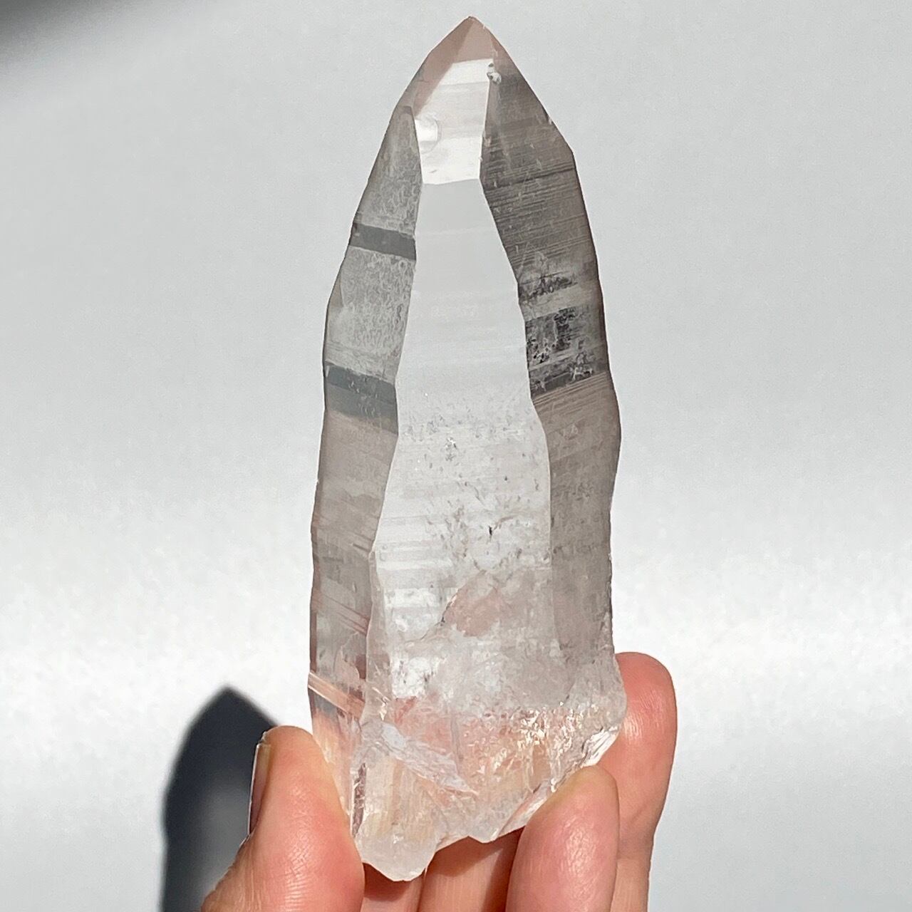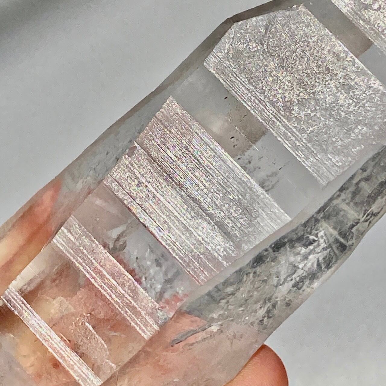 この子は何といっても6枚目の画像のように柱面が段々となっているフォーメーション、そして氷の様な表情とその透明感です。コロンビア産とは違い、産地にもよりますが、すりガラスの様に半透明な個体も多い中、この子は非常にクリアです。