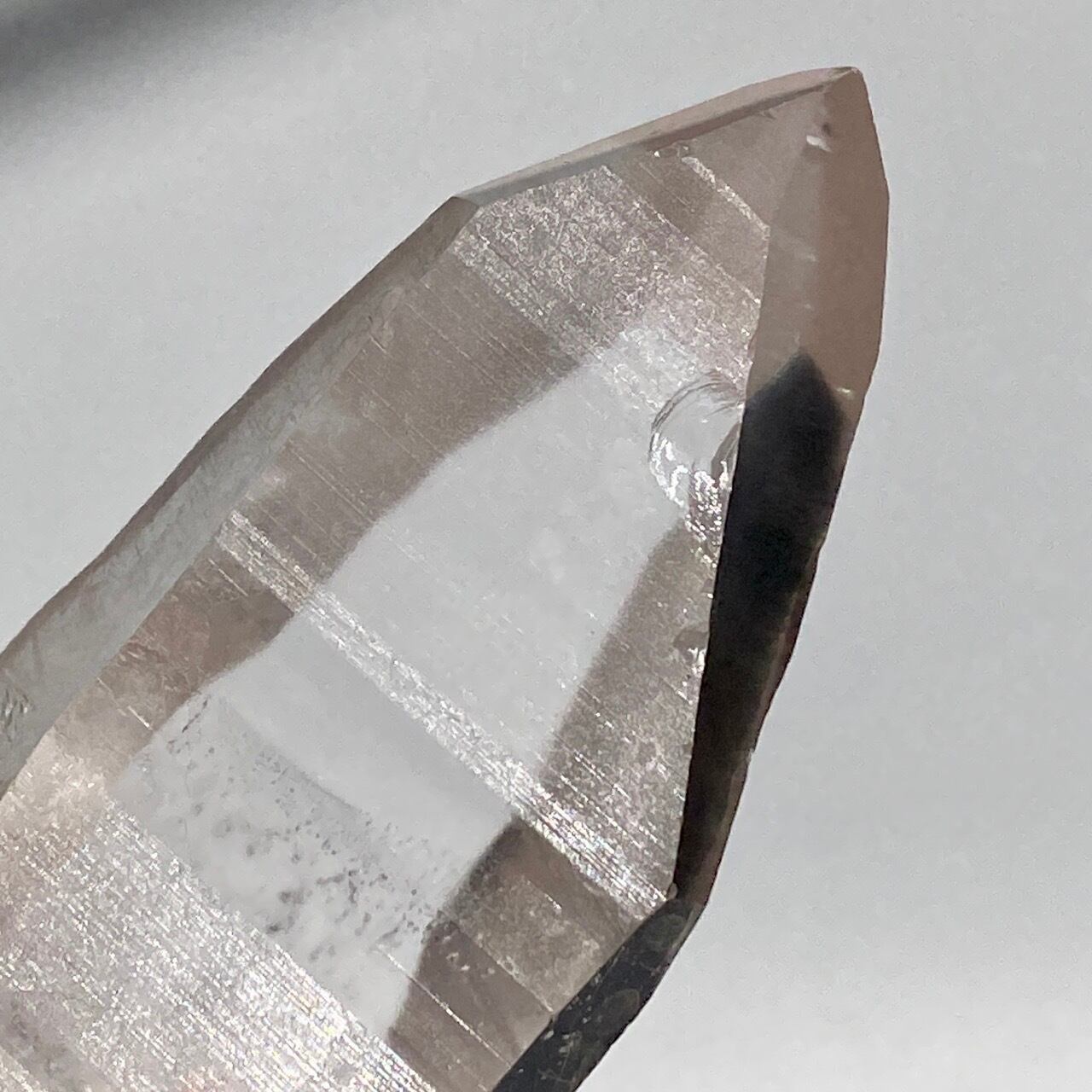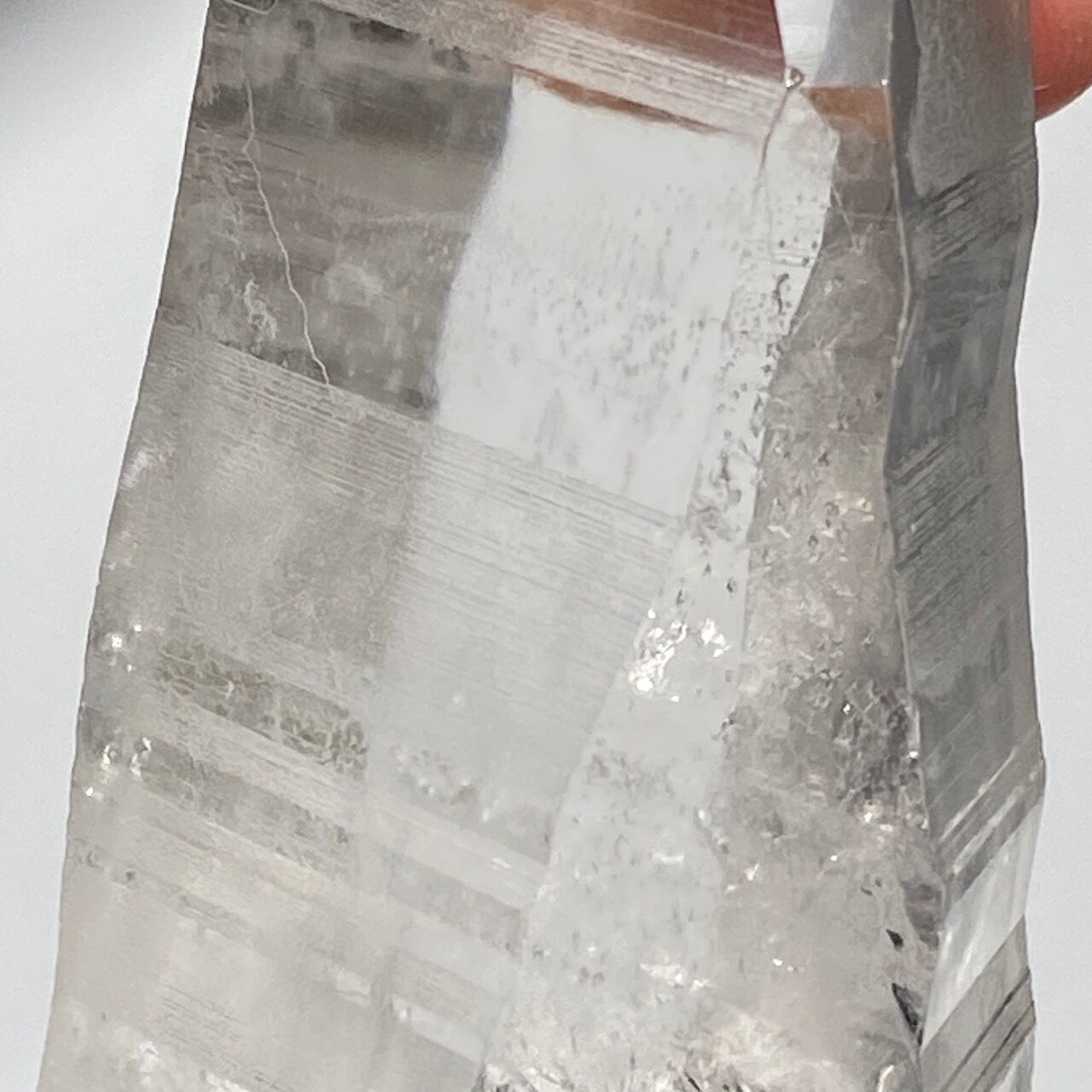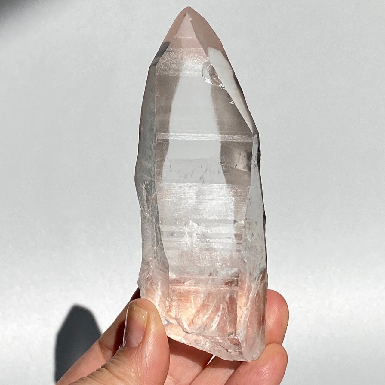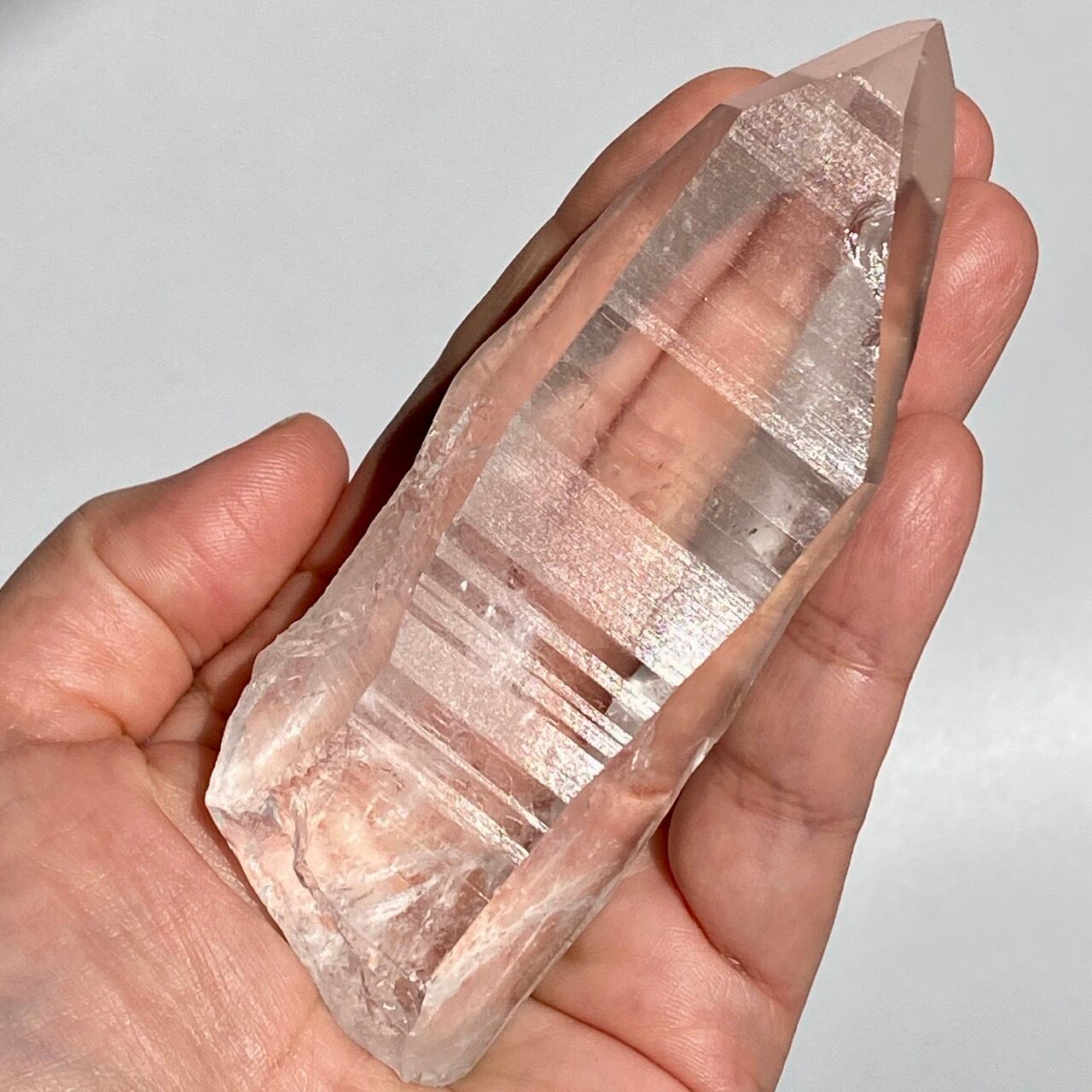 この子は何といっても6枚目の画像のように柱面が段々となっているフォーメーション、そして氷の様な表情とその透明感です。コロンビア産とは違い、産地にもよりますが、すりガラスの様に半透明な個体も多い中、この子は非常にクリアです。