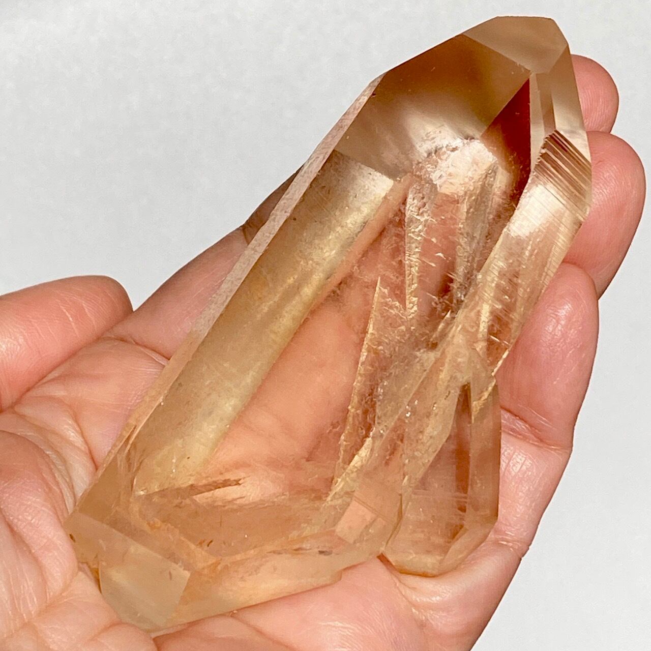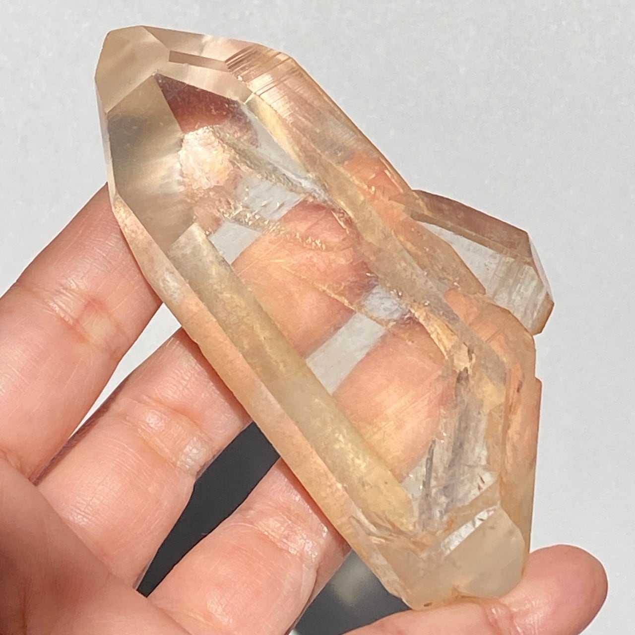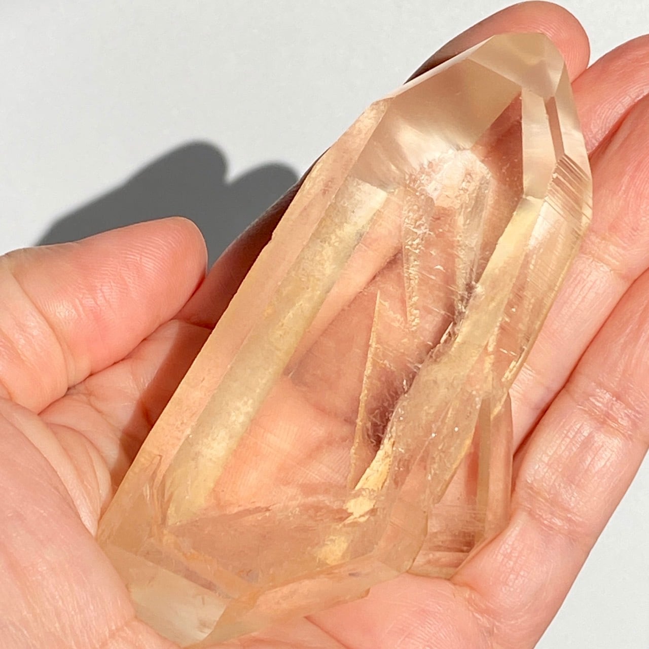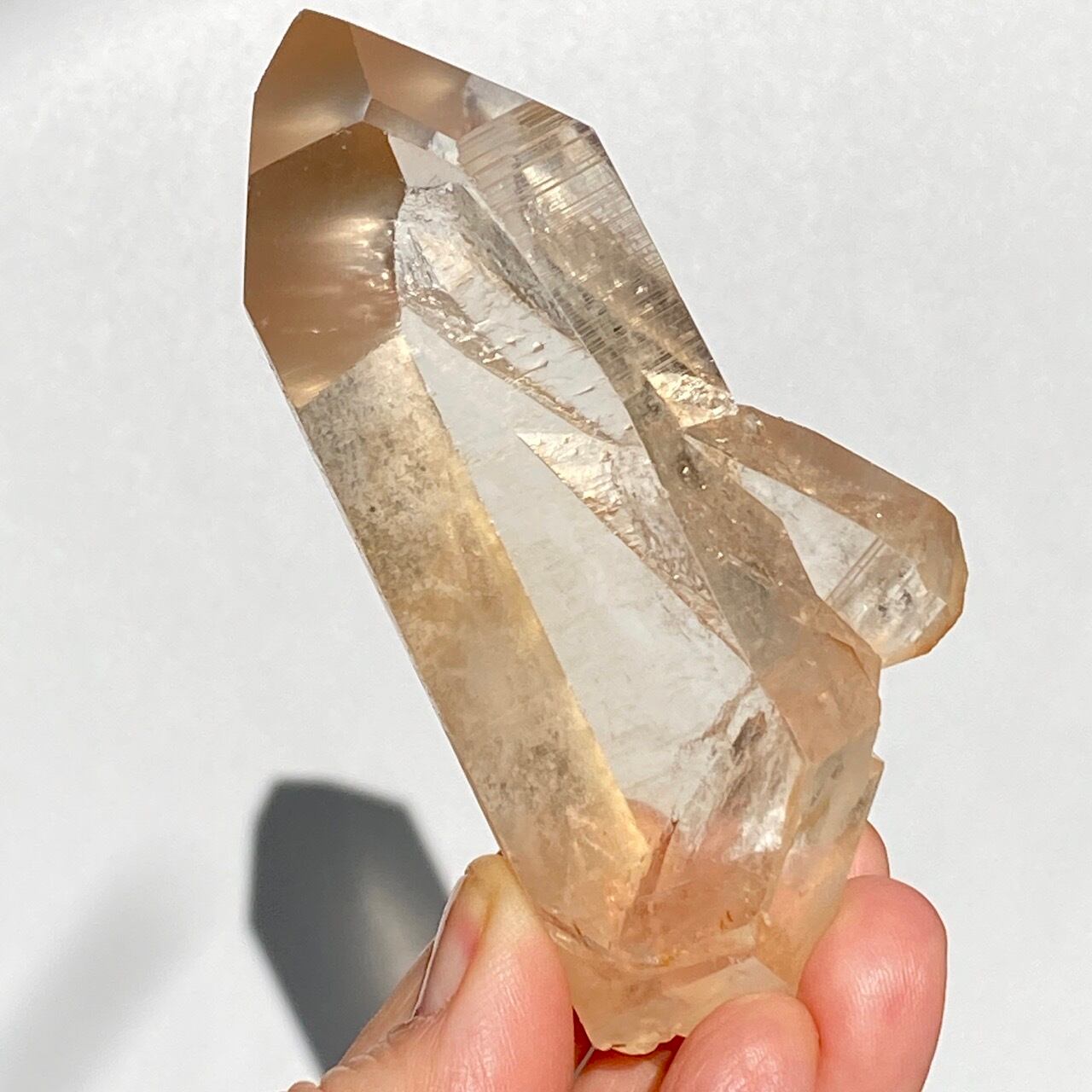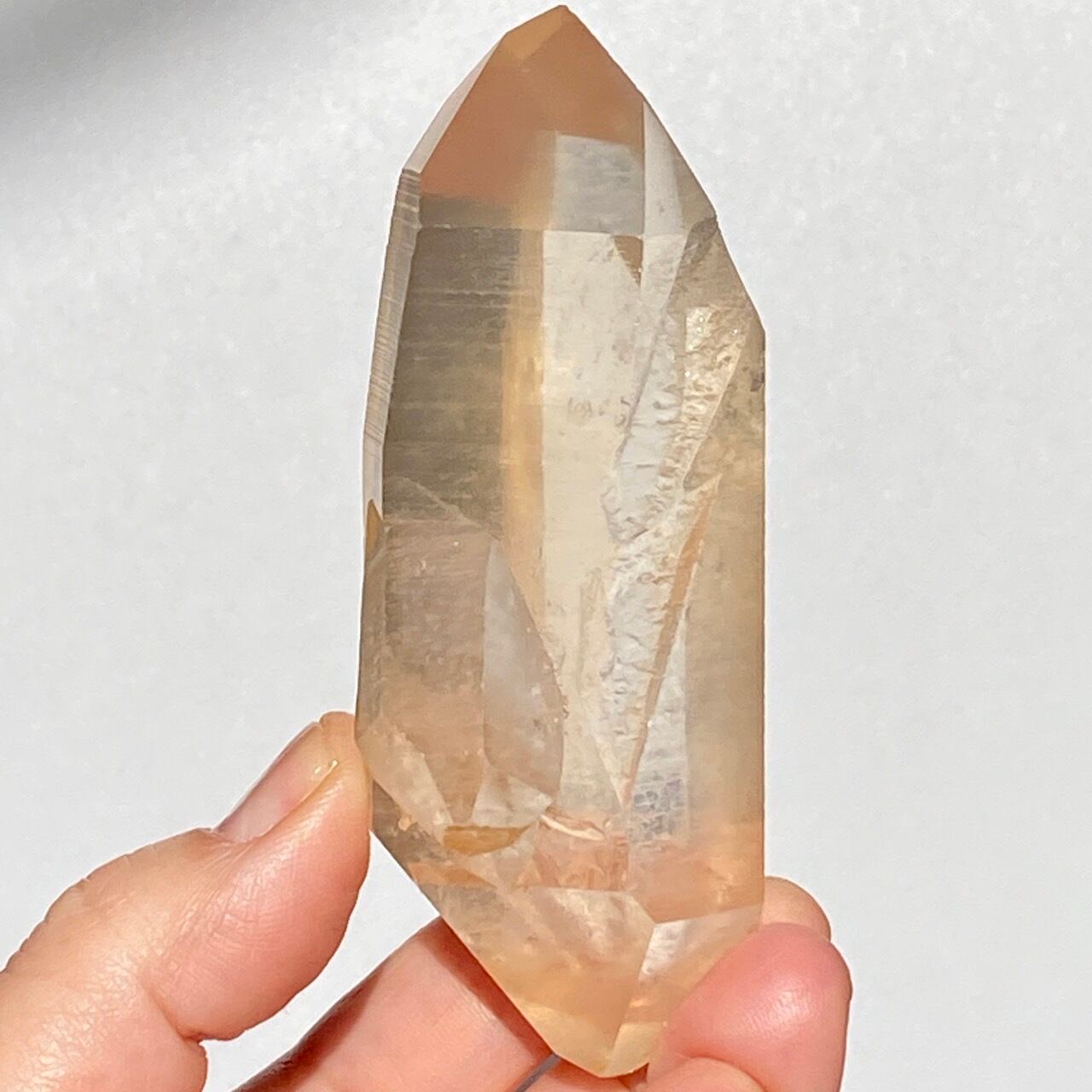 太陽光にクリスタルを透かした際の神々しさと若干オレンジ色を帯びたシャンパンゴールドの色味が非常に美しく、店主のオススメの子です。