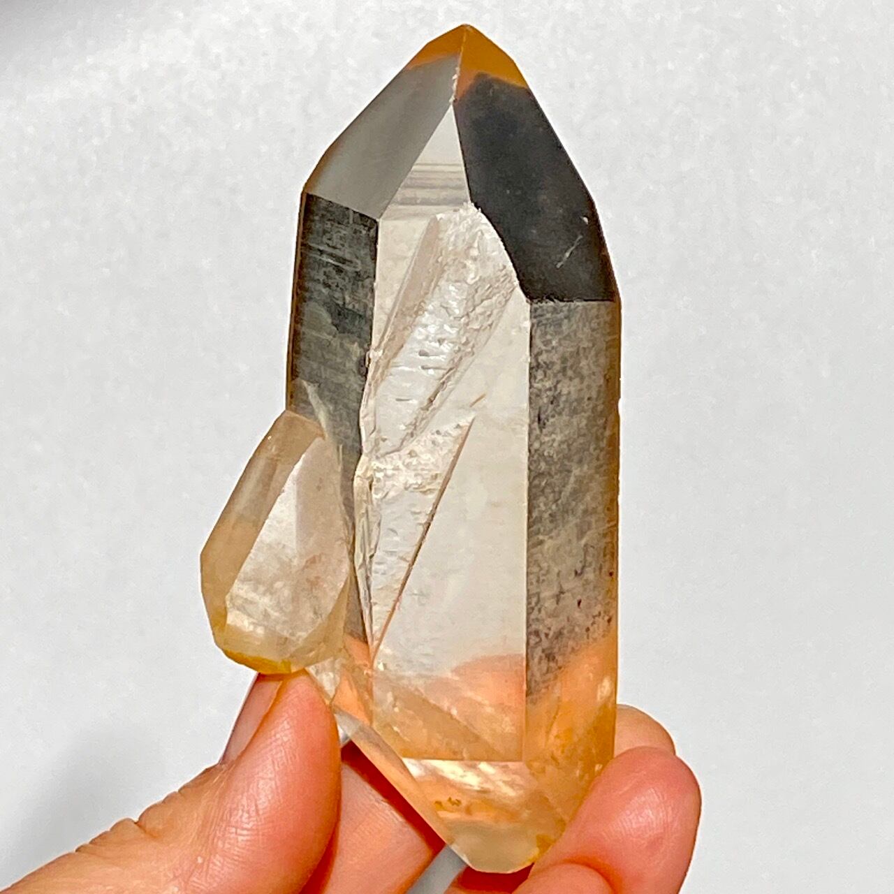 しかも貫入水晶、そしてダブルターミネーティッド(両剣水晶)であり、剥離痕もある、見所の多い子です。