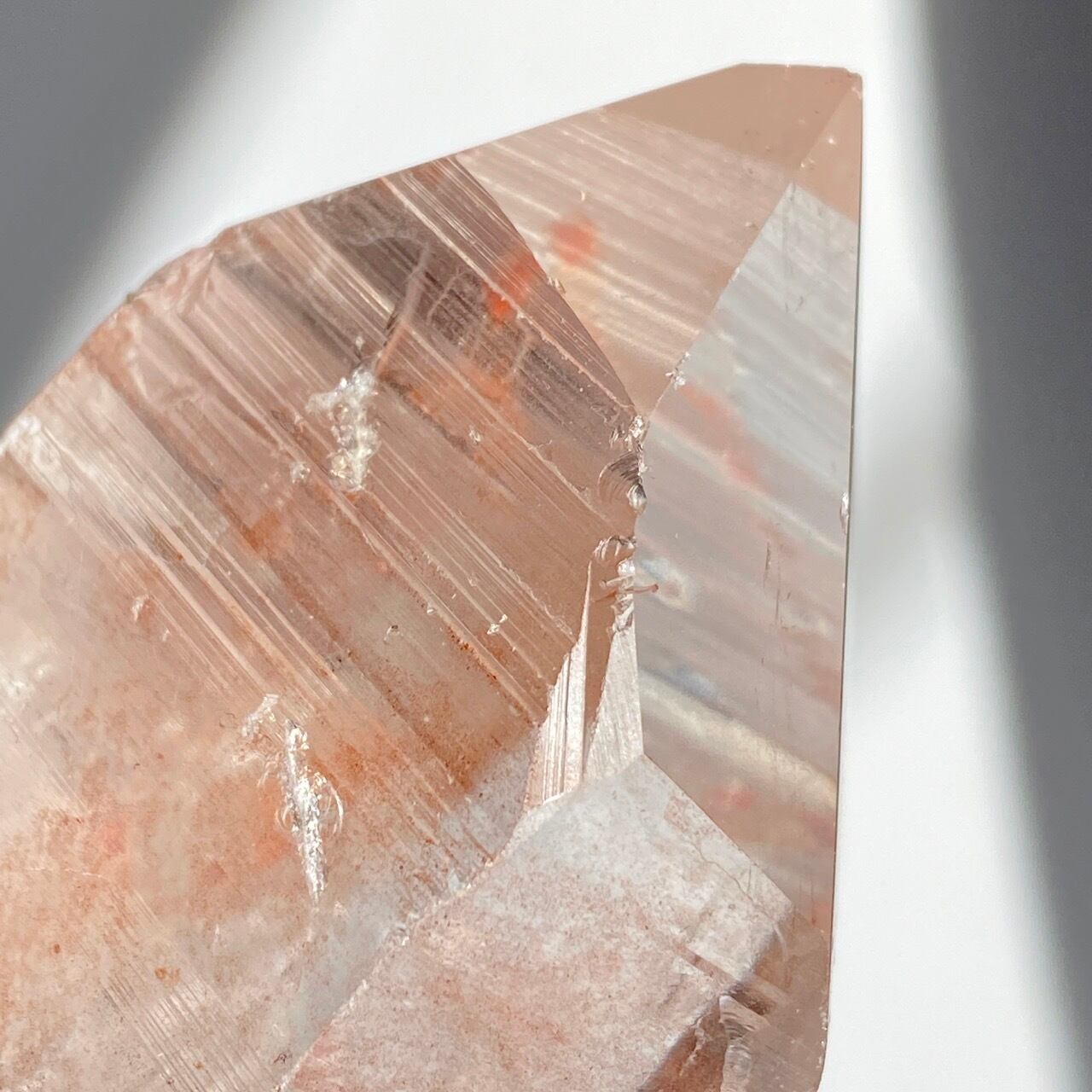 霜の様なルックスの下部と透明感のあるセクションとのコントラストが魅力的で、一番広い柱面より見えるオレンジがかったピンクのニュアンスが美しい女神のような子です。