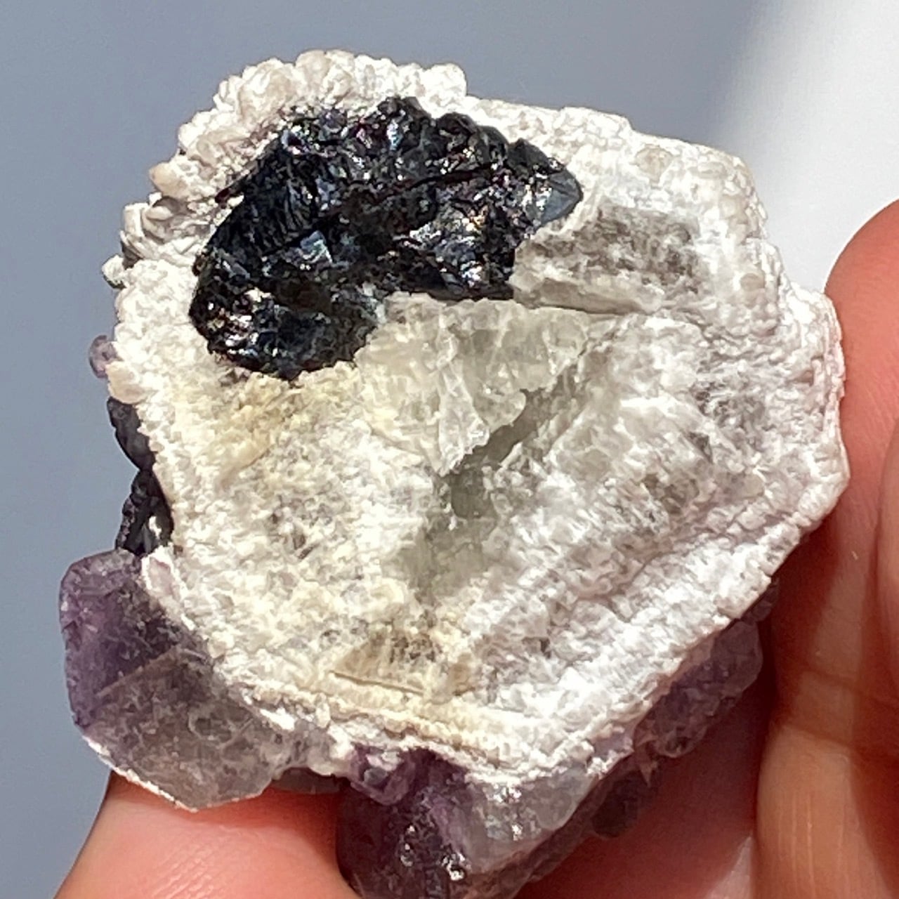 底面に黒っぽい高光沢の他の石も共生しています。