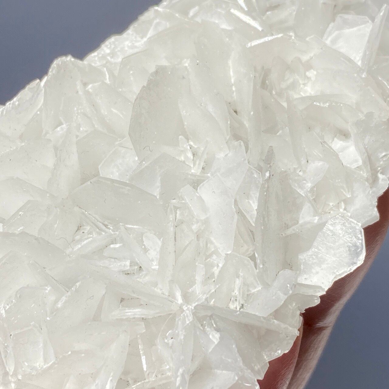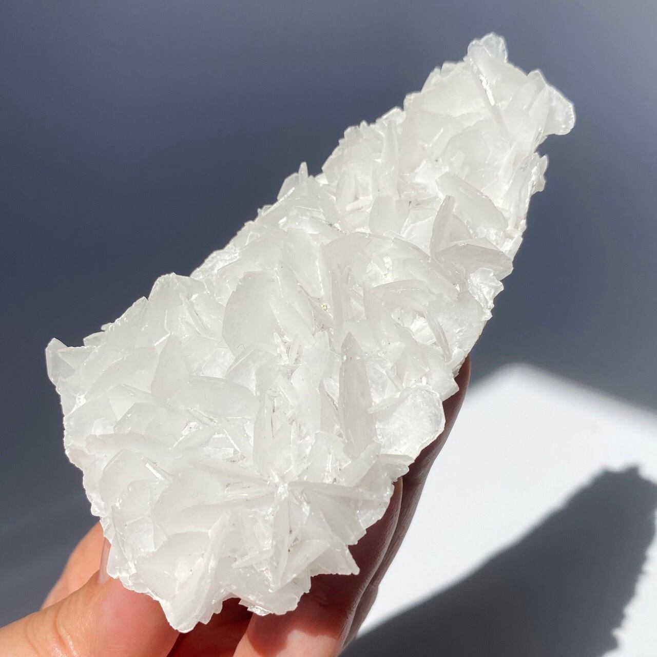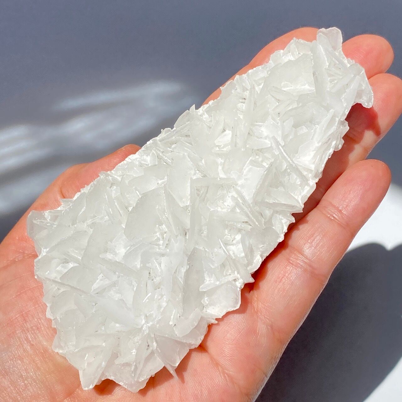 花びらような結晶が交差して形成されており、デザートローズとは異なる純白の美しさがあります。