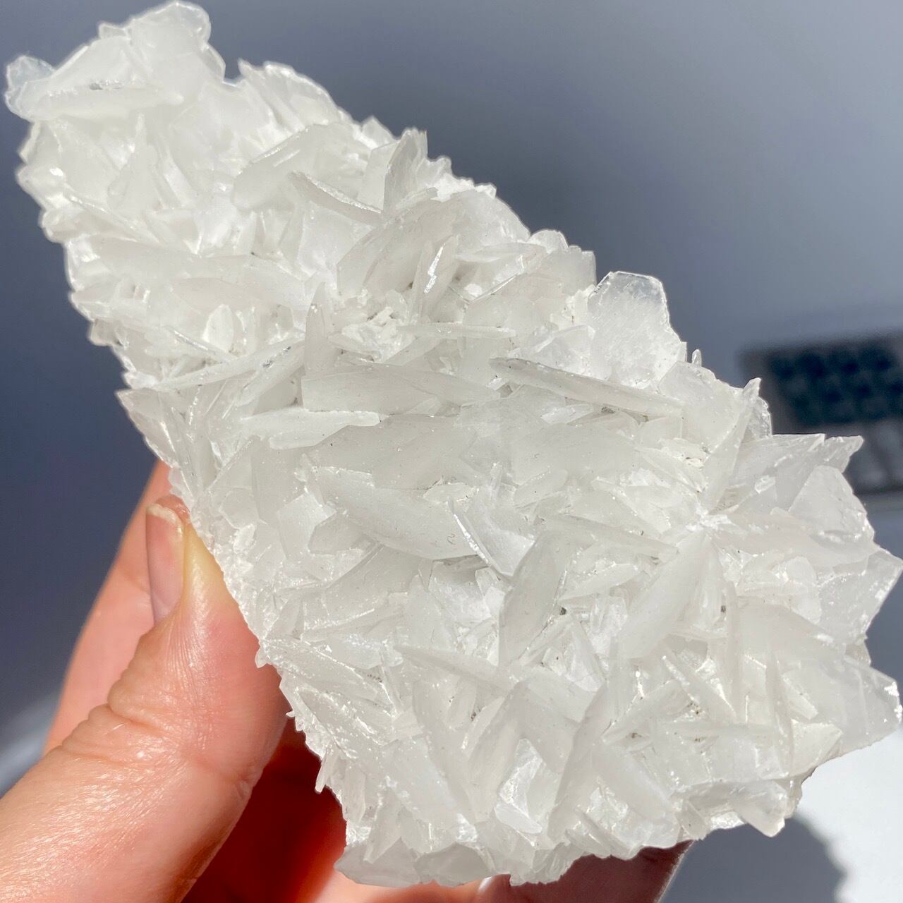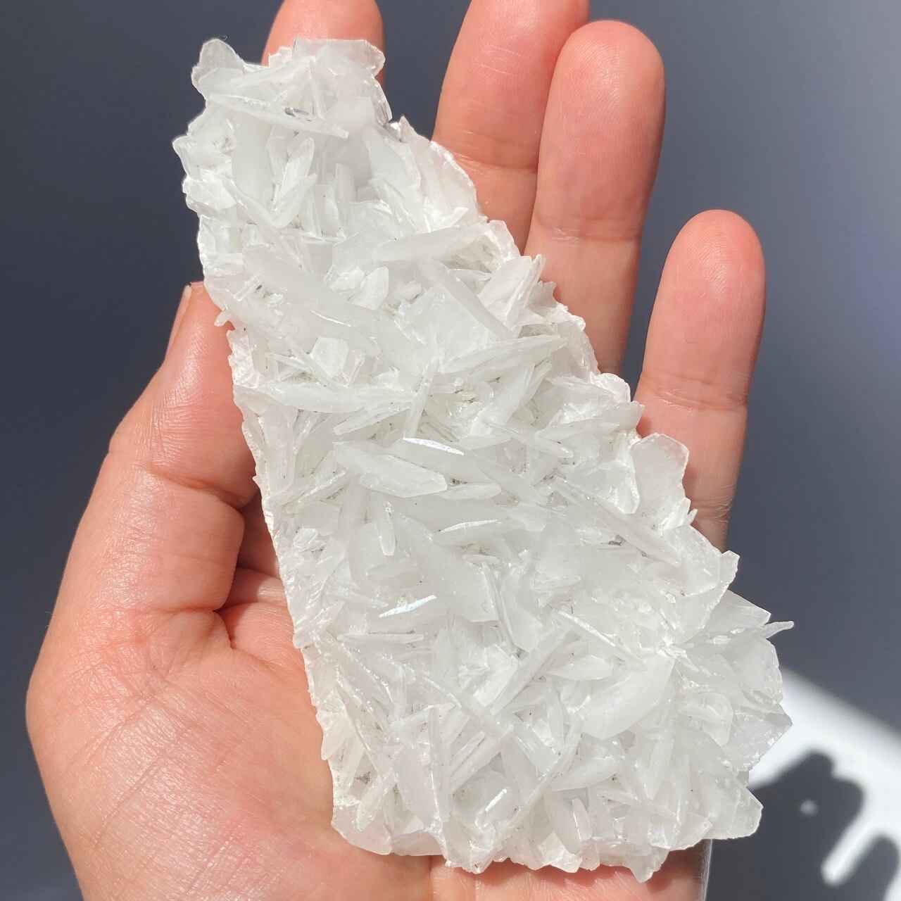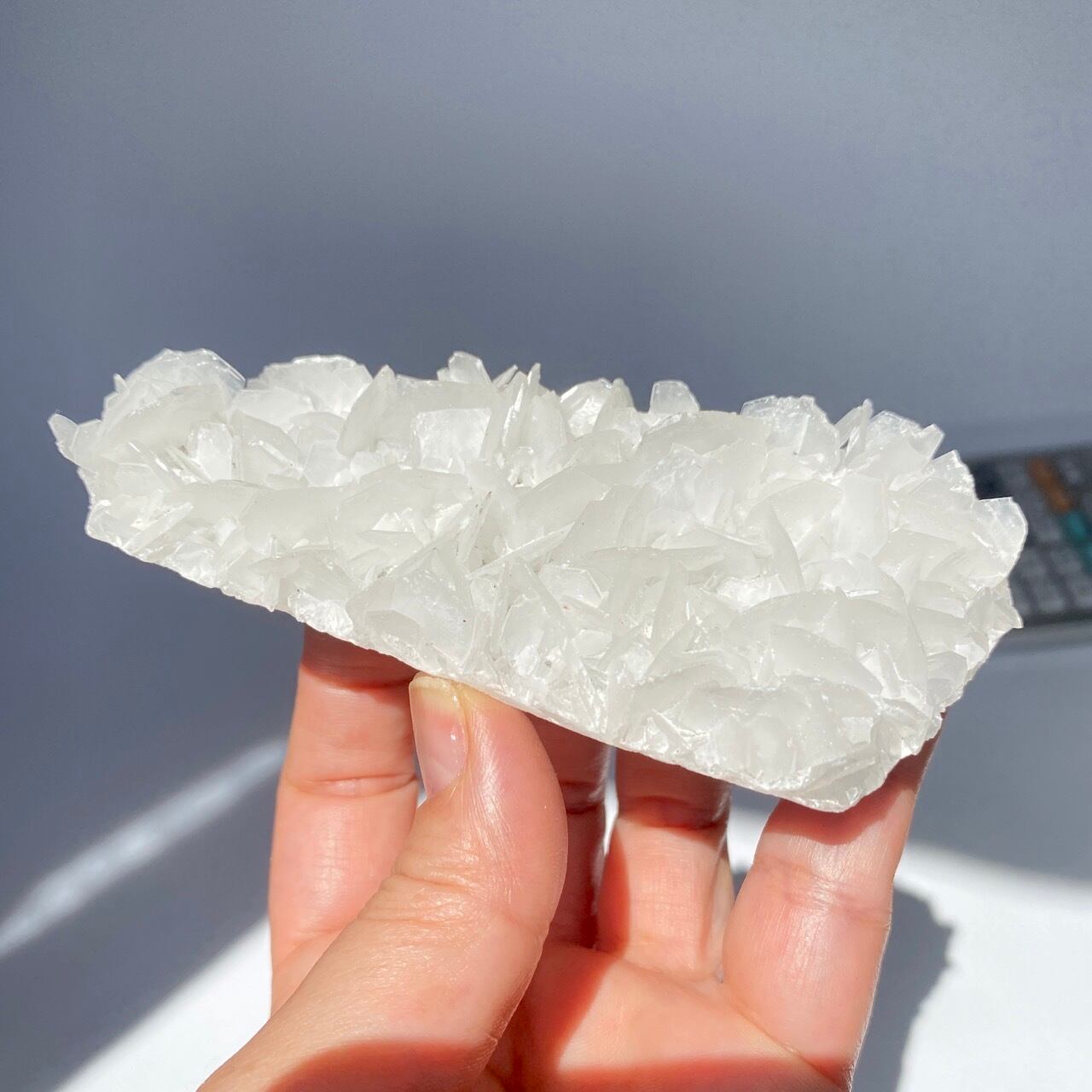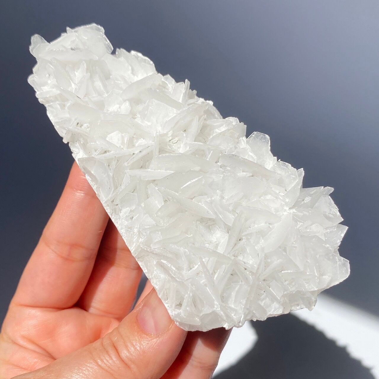 花びらような結晶が交差して形成されており、デザートローズとは異なる純白の美しさがあります。