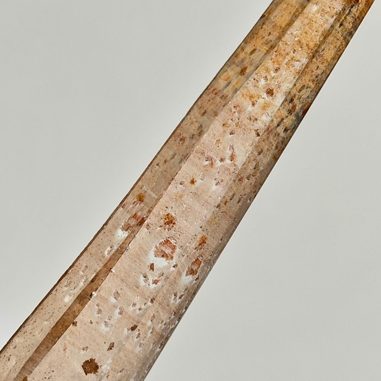 すらっと伸びたワンドを握る部分には、店主が大好物の剥離痕が2箇所有り、ワンドのシャープな形状は剣のような雰囲気を醸し出していて、エーテルコードのカットやオーラの修復など、色々な目的にご利用頂けます。